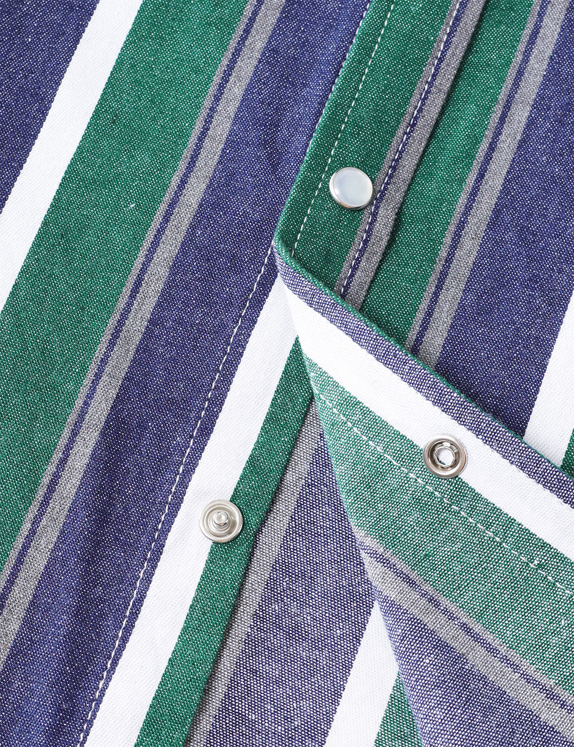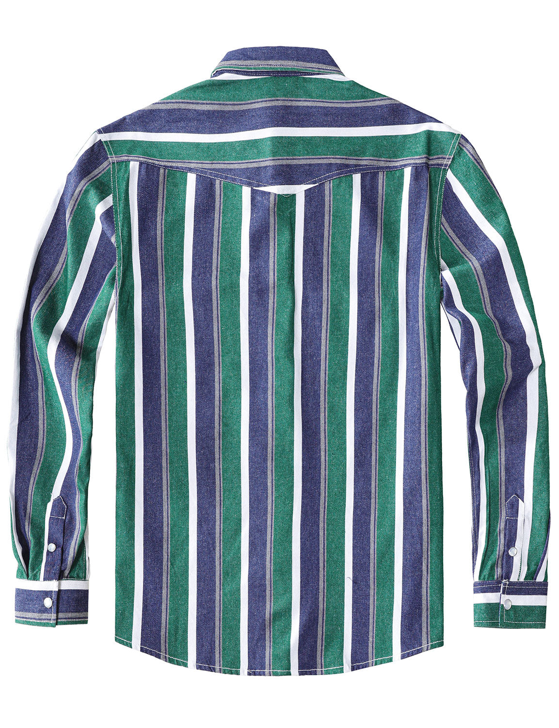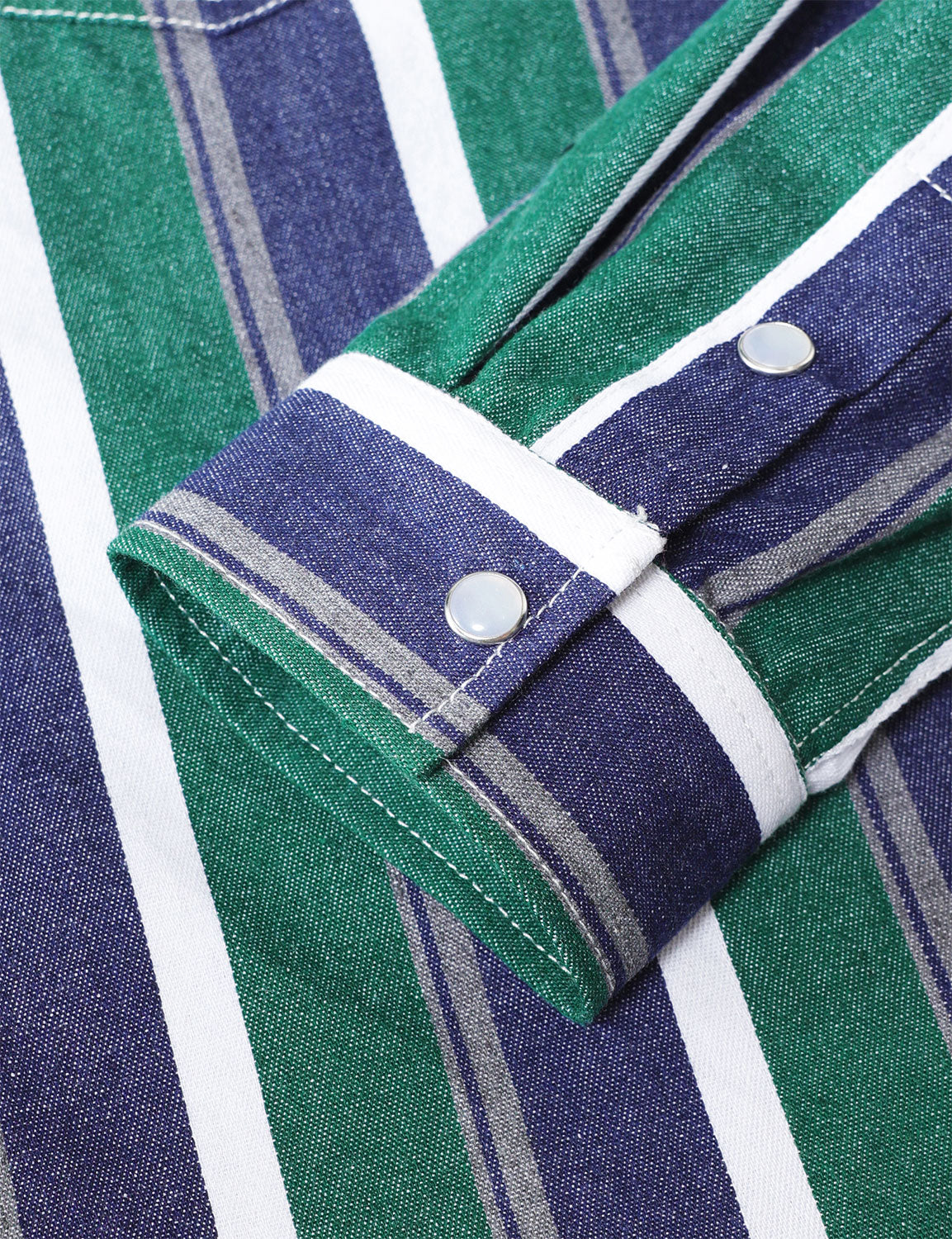 Herren Grünen Streifen Langen Ärmeln Jeanshemd
