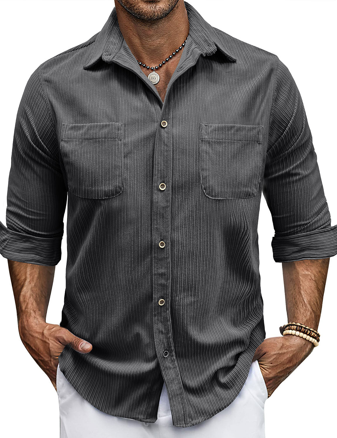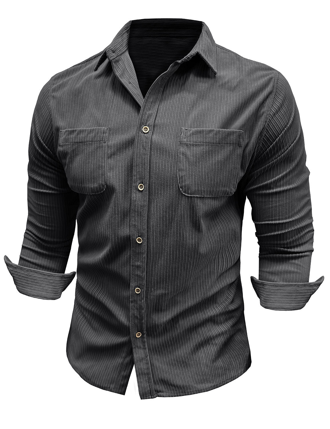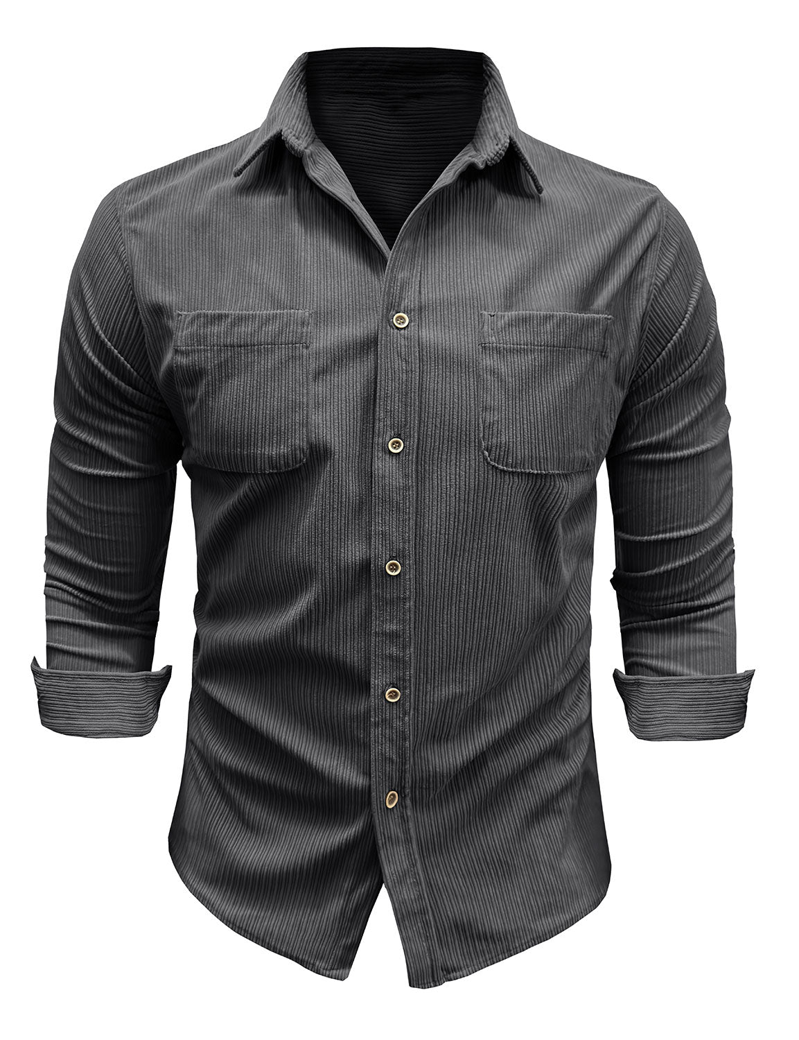Herren Lässiges graues Langarmhemd mit Knöpfen