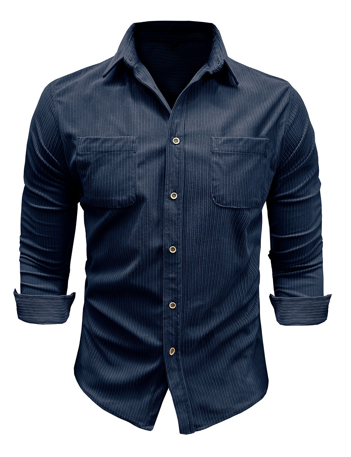 Herren Casual Langarmhemd Marineblau