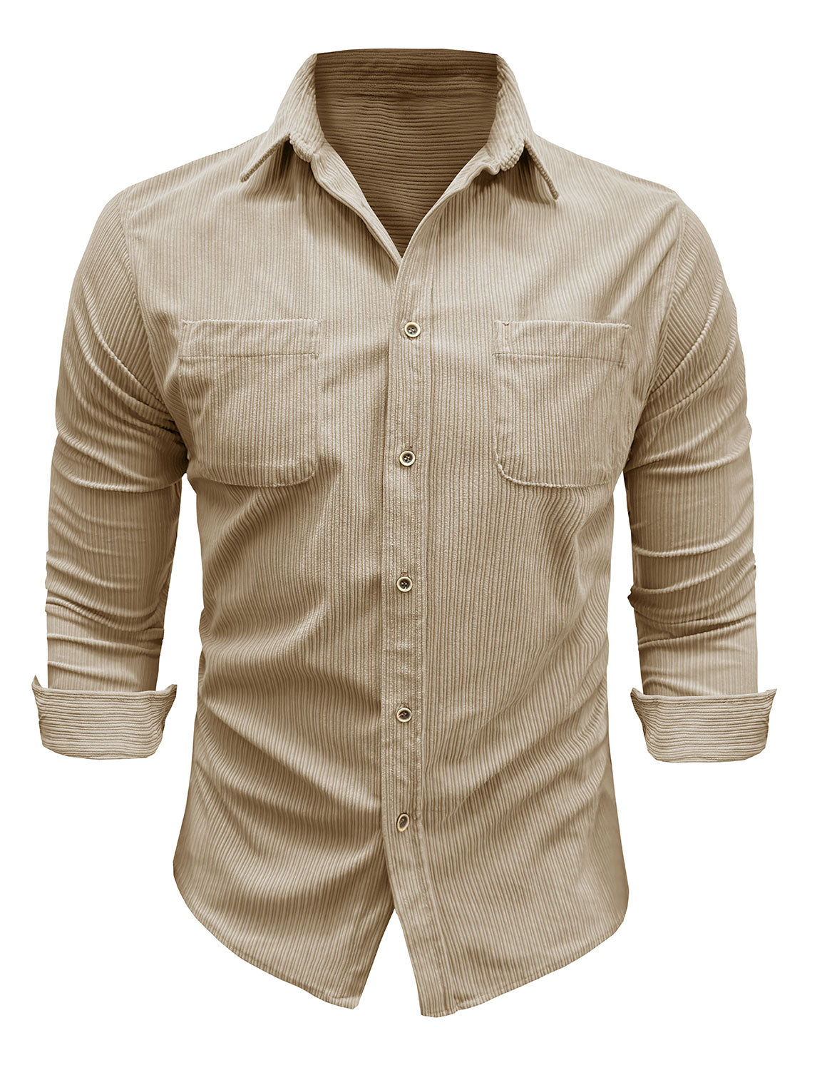 Herren Lässiges beiges Langarmhemd