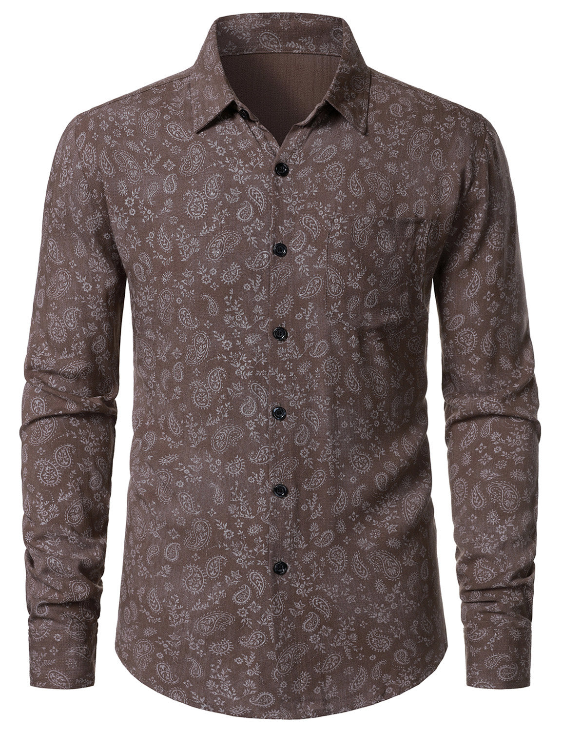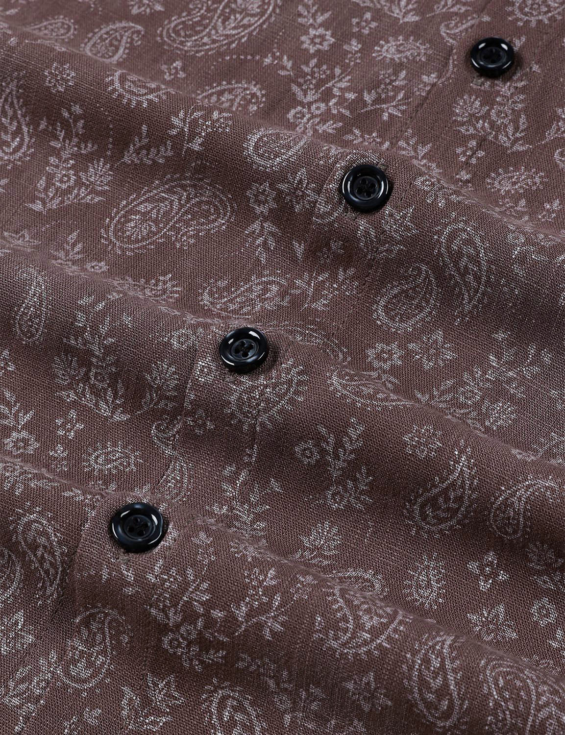 Herren Braun Paisley Geblümt Langarm Hemd