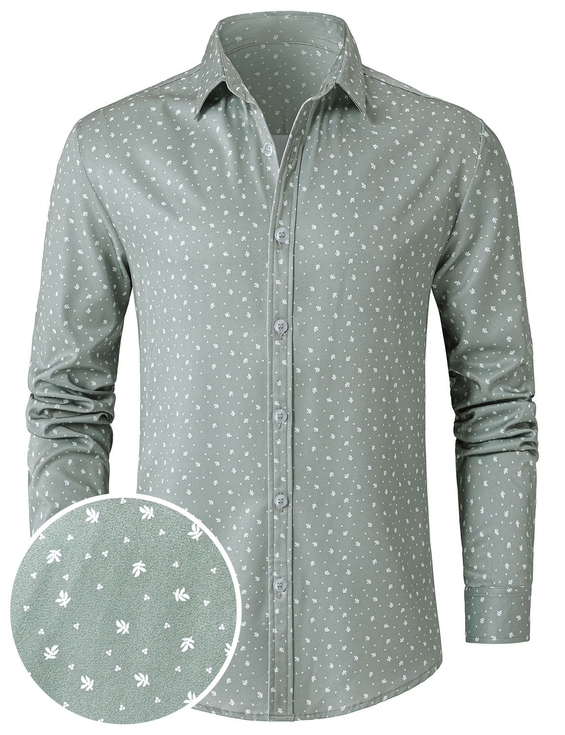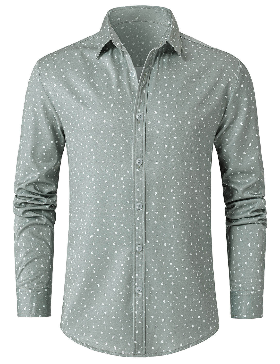 Herren Hellgrünes lässiges bedrucktes Langarmhemd