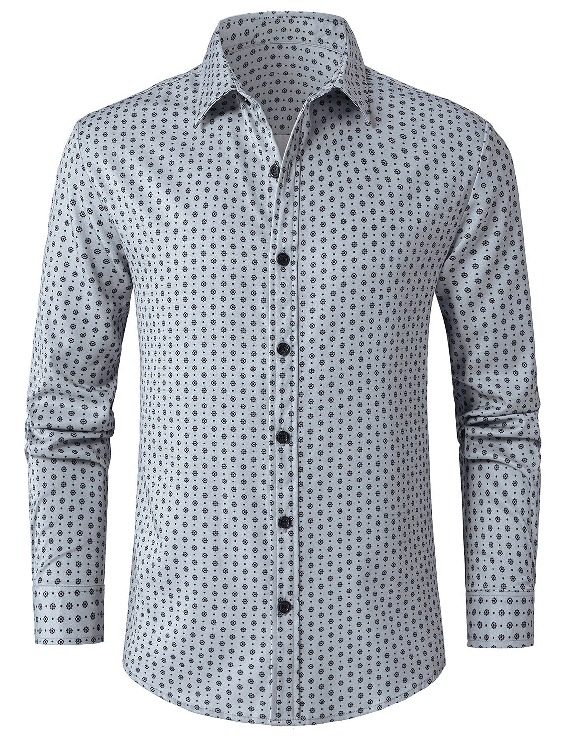 Herren Graues Langarmhemd mit lässigem Print