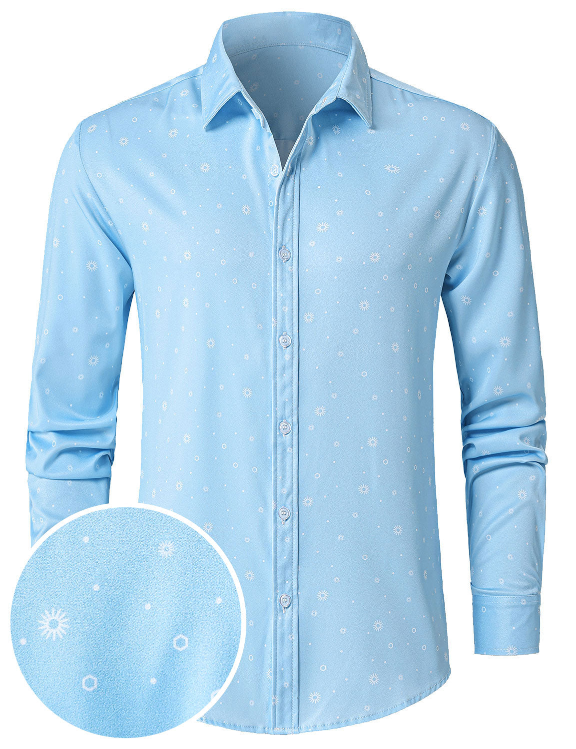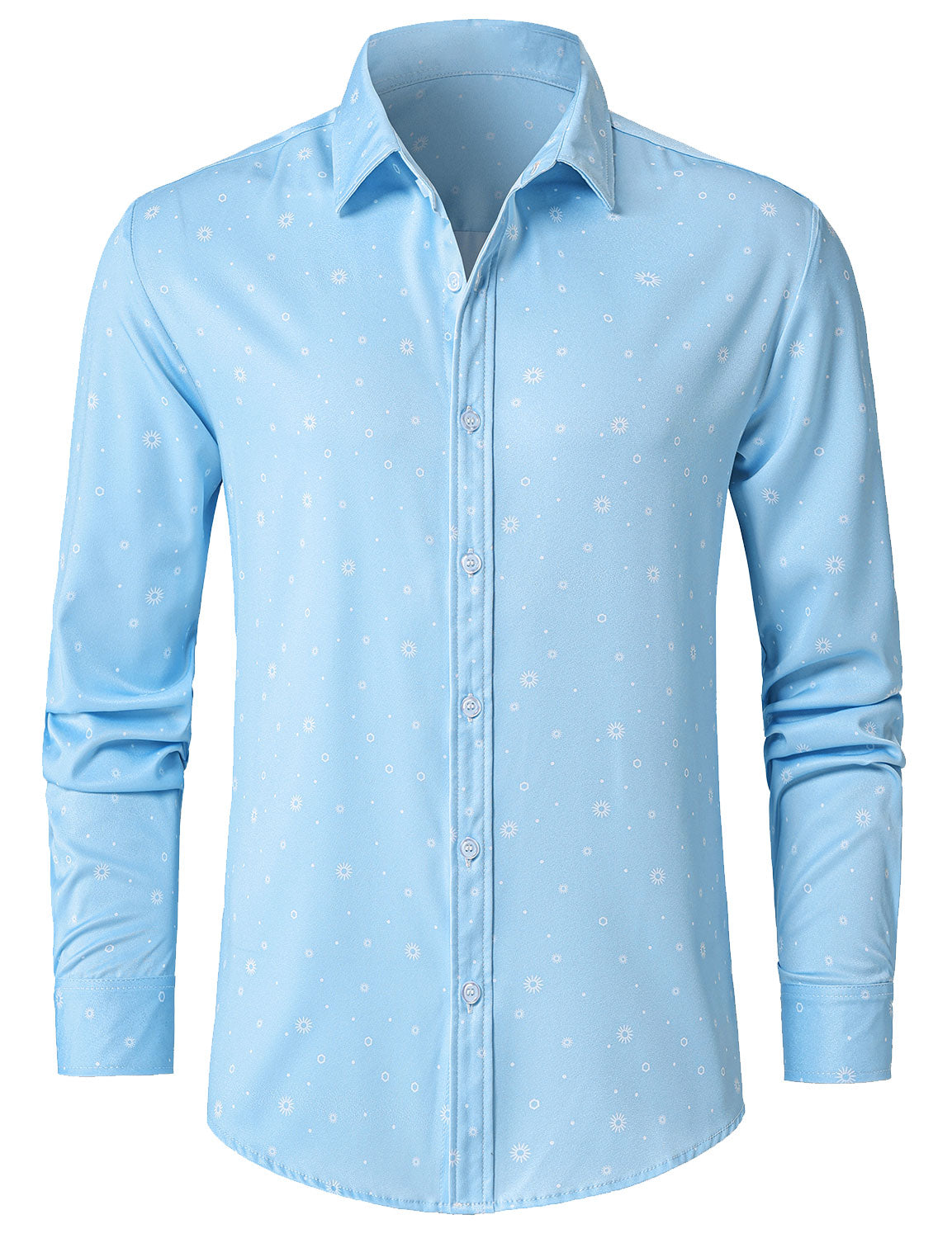 Herren Paisley-Blumenmuster Langarmhemd Blau