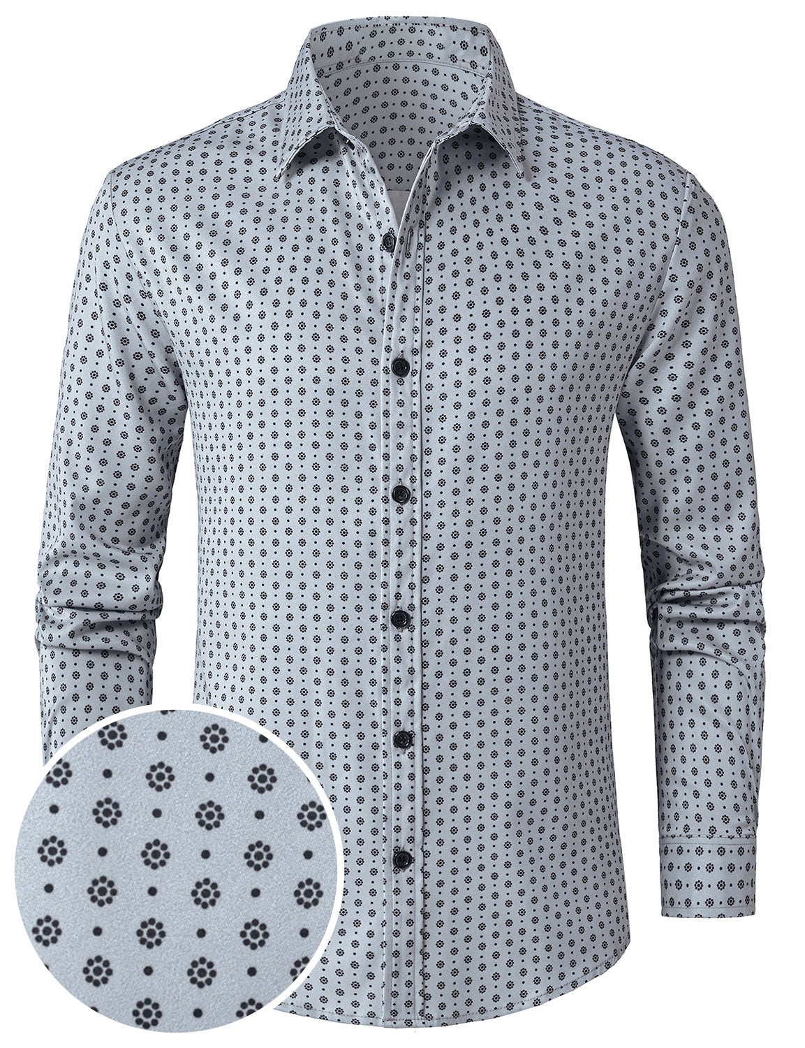 Herren Schwarz Jacquard-Langarmhemd mit Blumenmuster