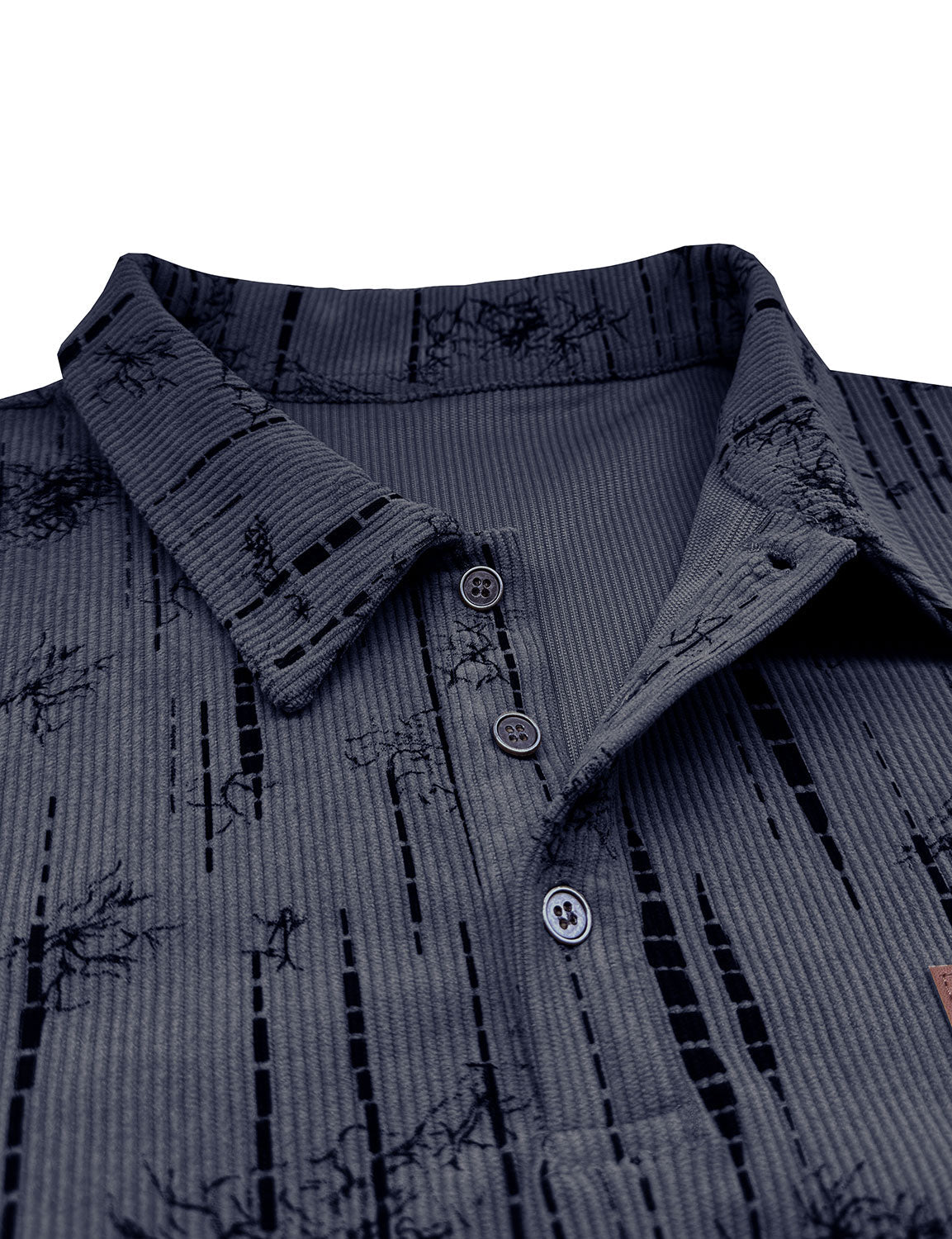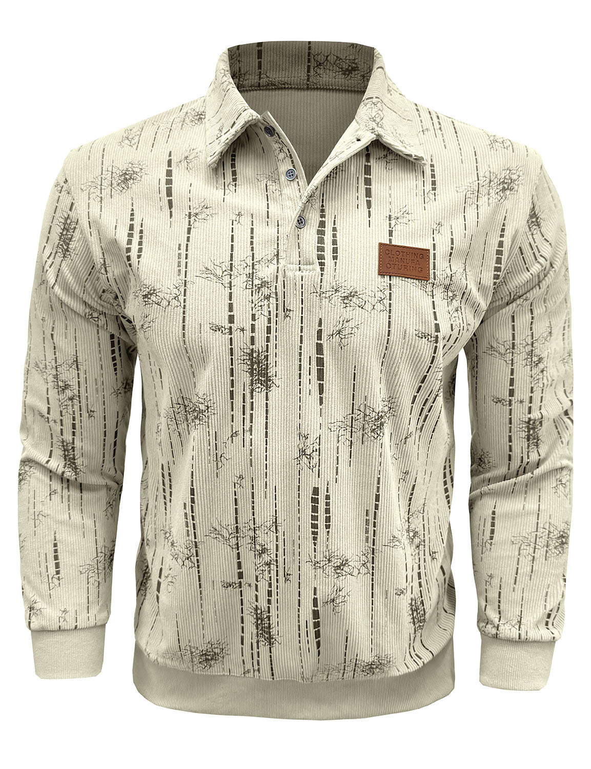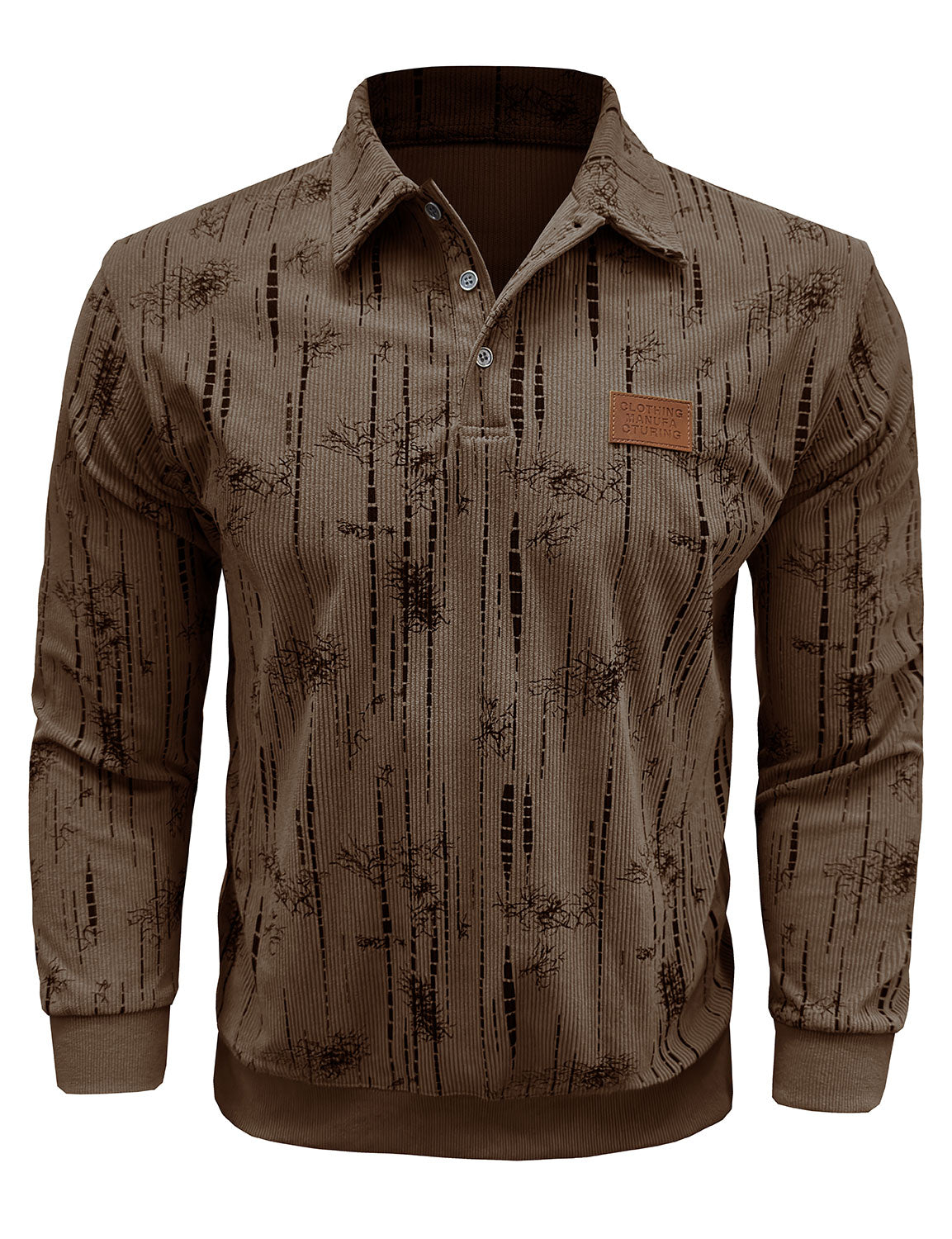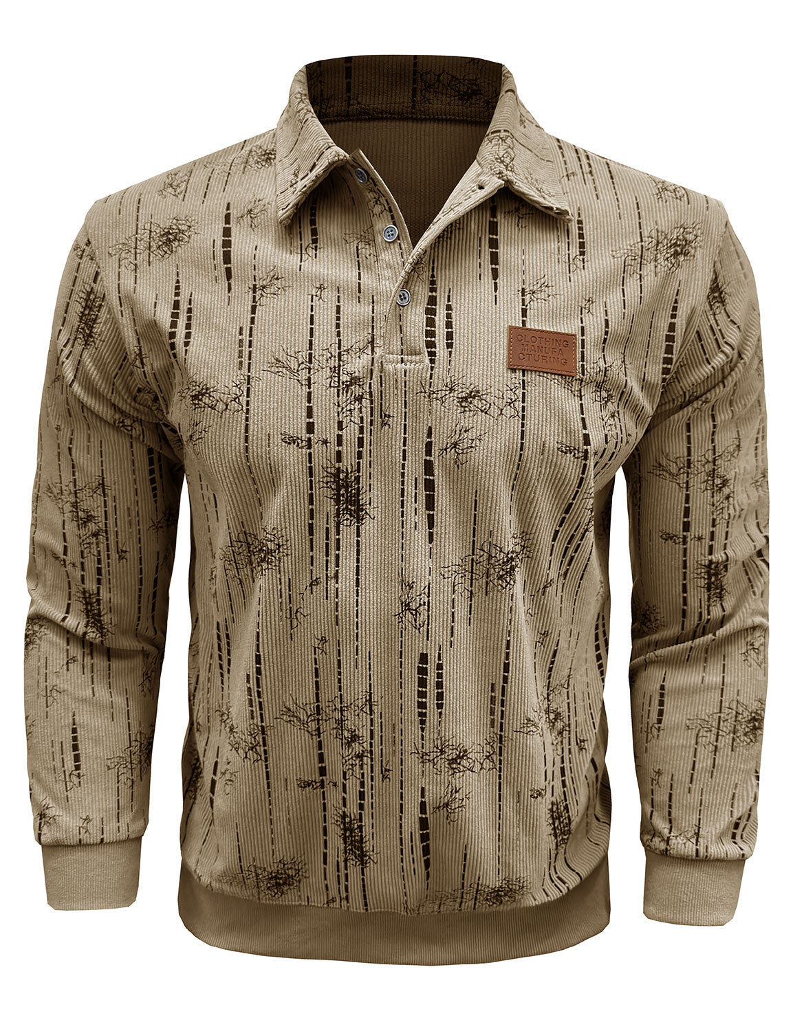 Herren Khakifarbenes Jacquard-Langarmhemd mit Blumenmuster