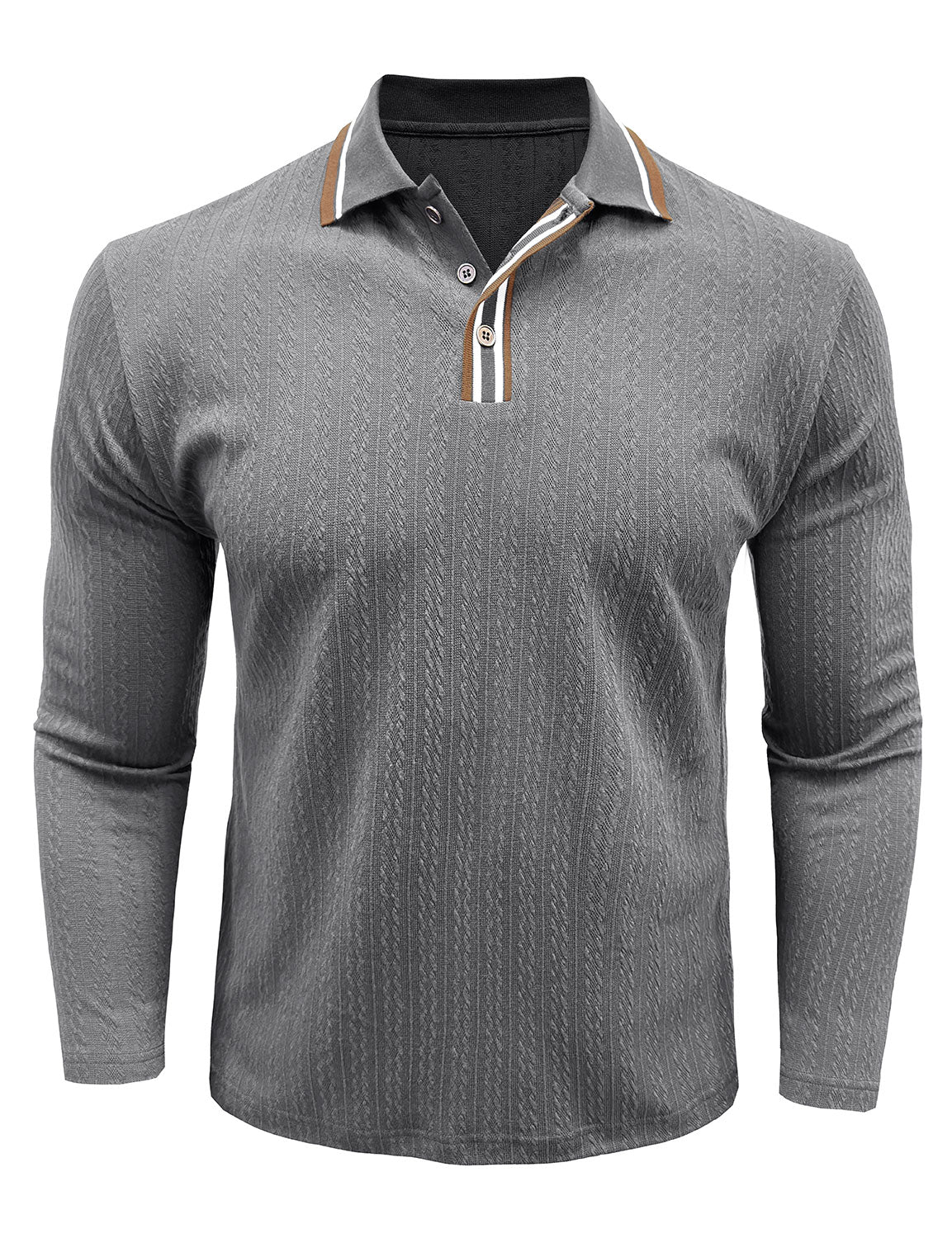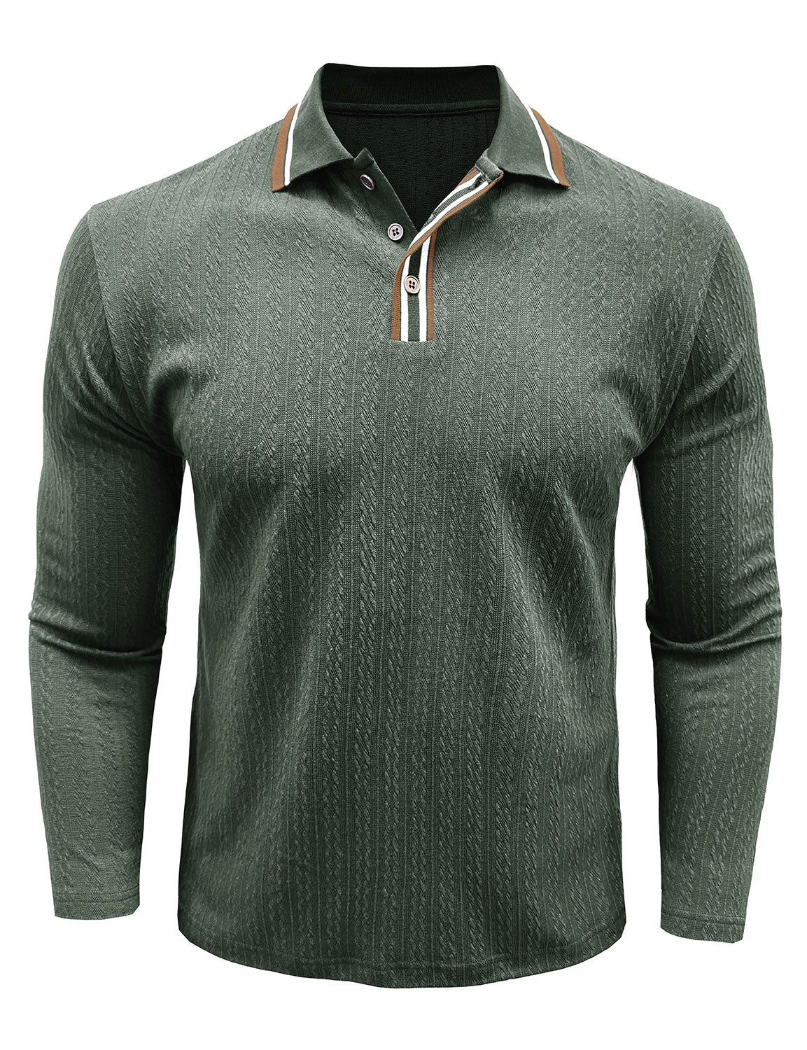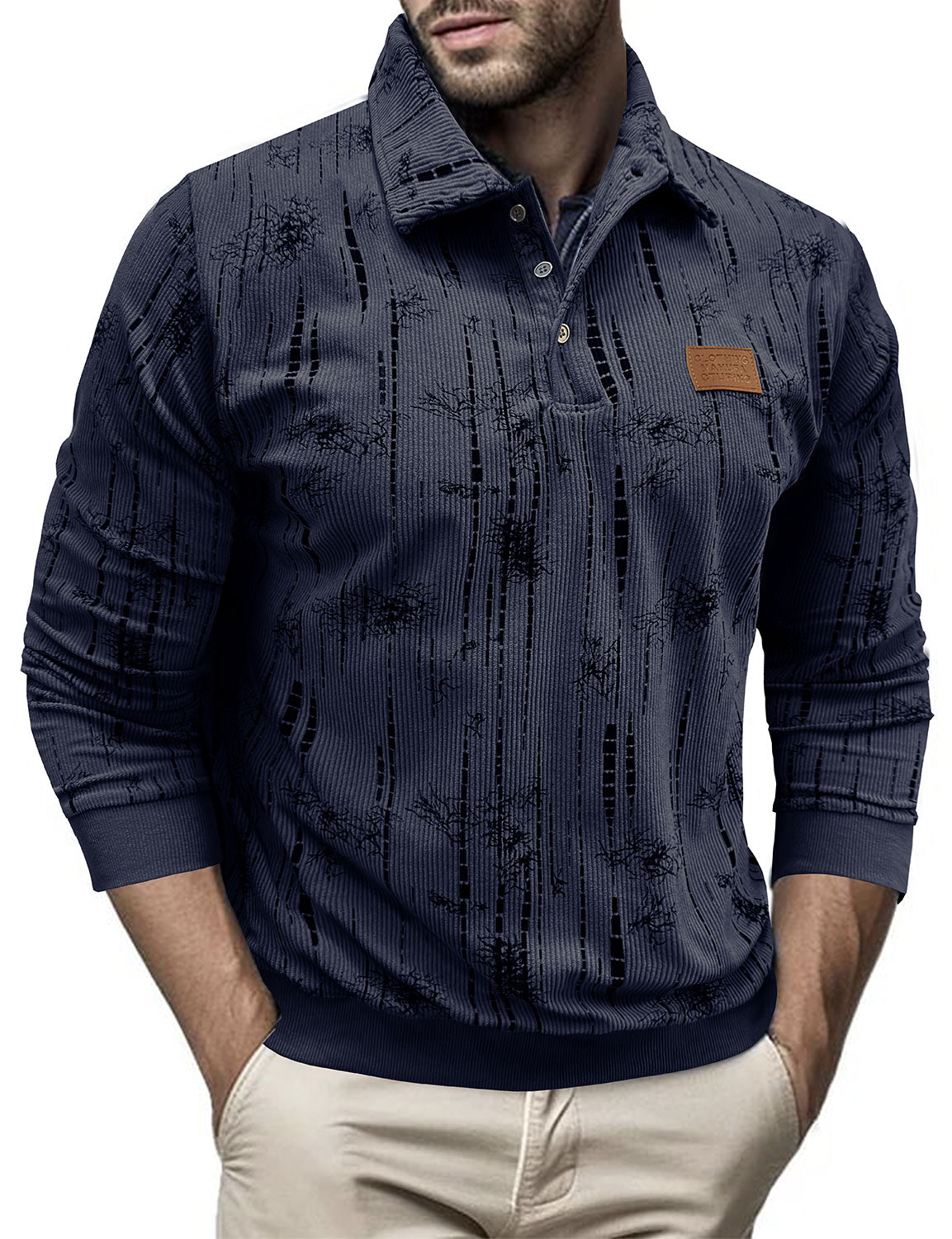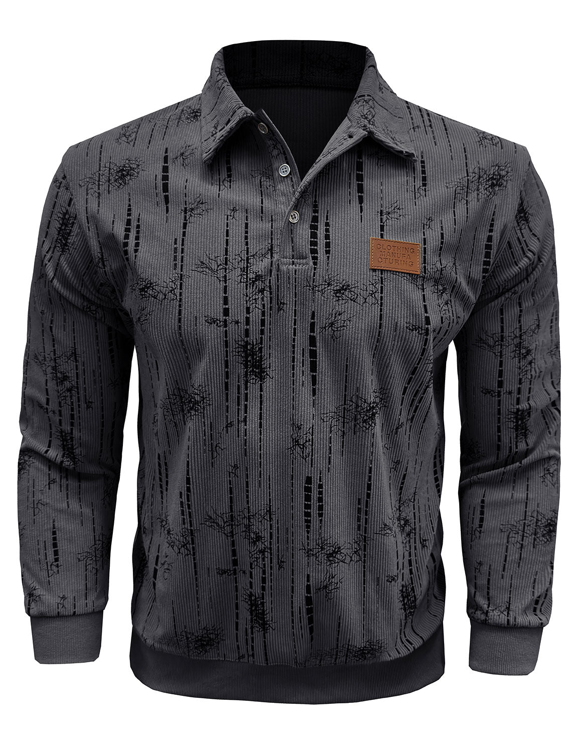 Herren Khakifarbenes Jacquard-Langarmhemd mit Blumenmuster