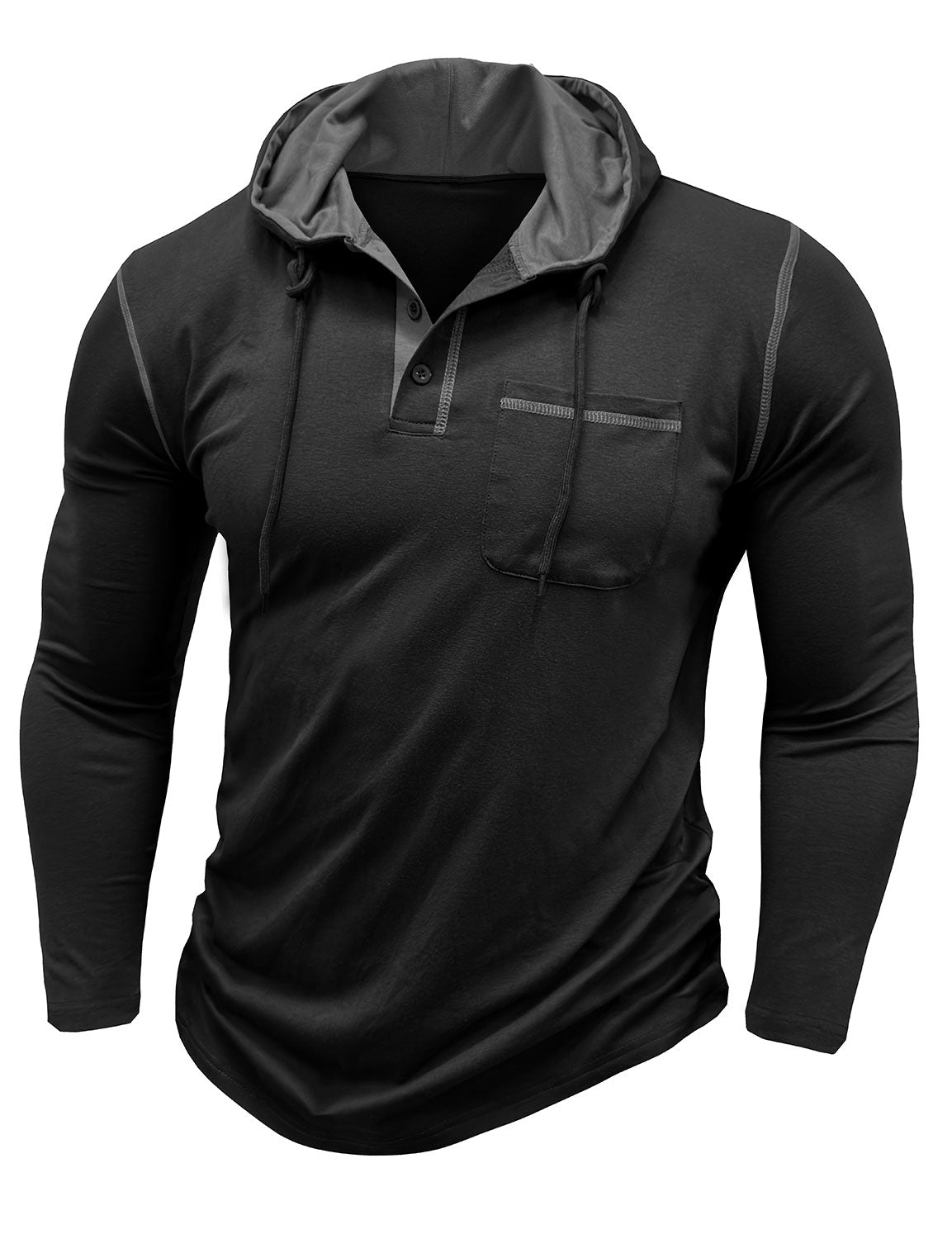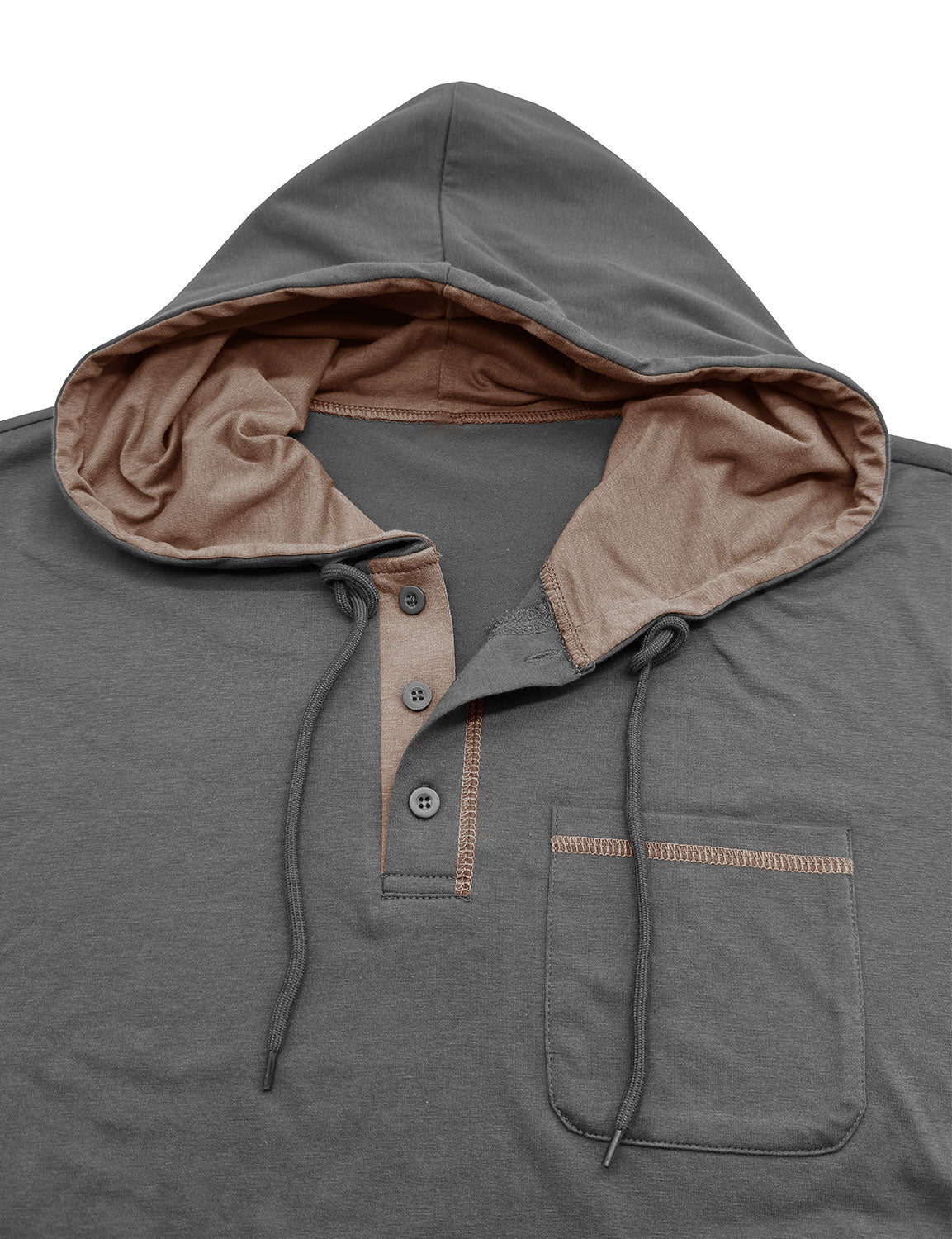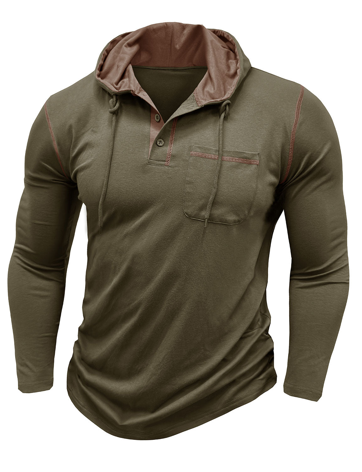 Herren Lässiges Henley-Langarmhemd mit Kapuze