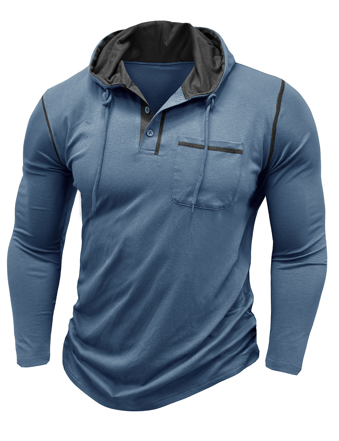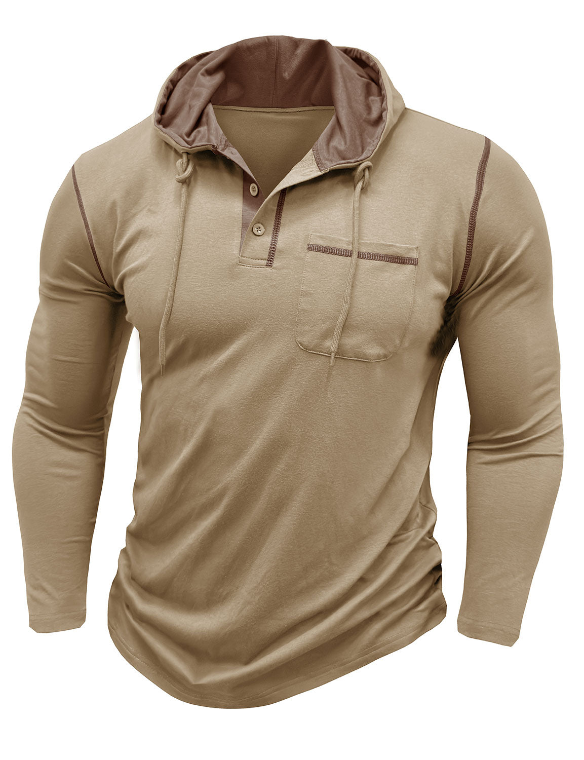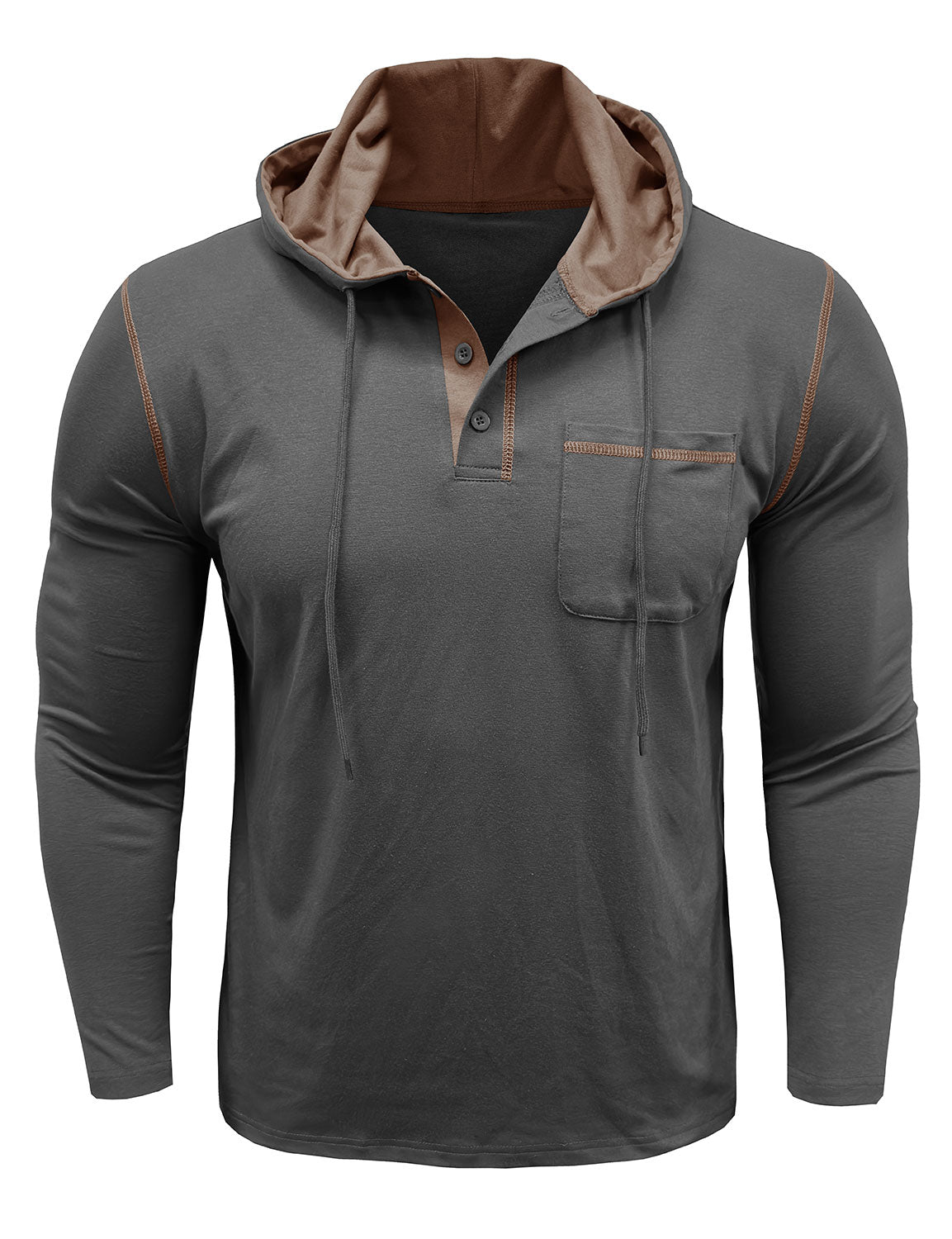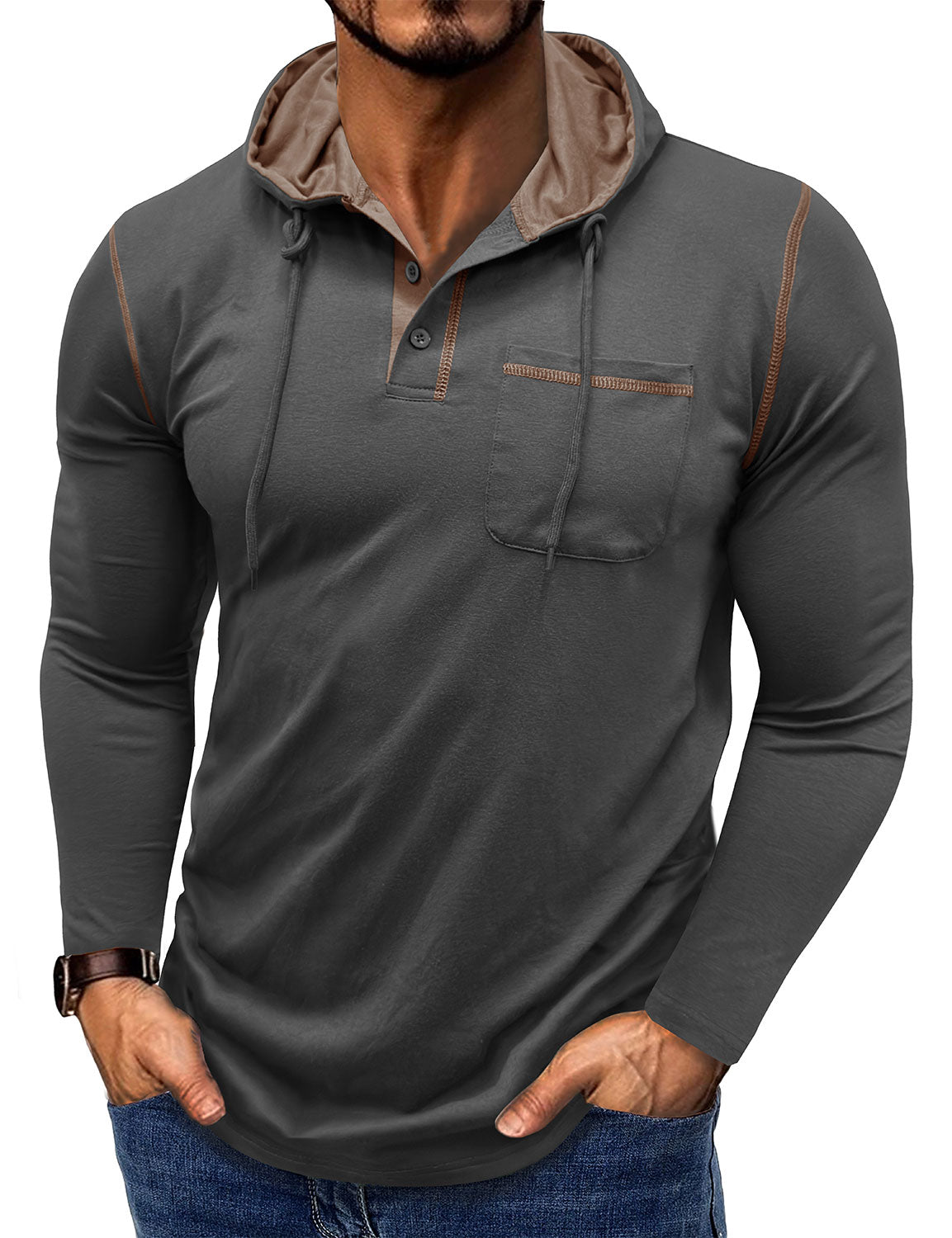 Herren Lässiges Henley-Langarmhemd mit Kapuze