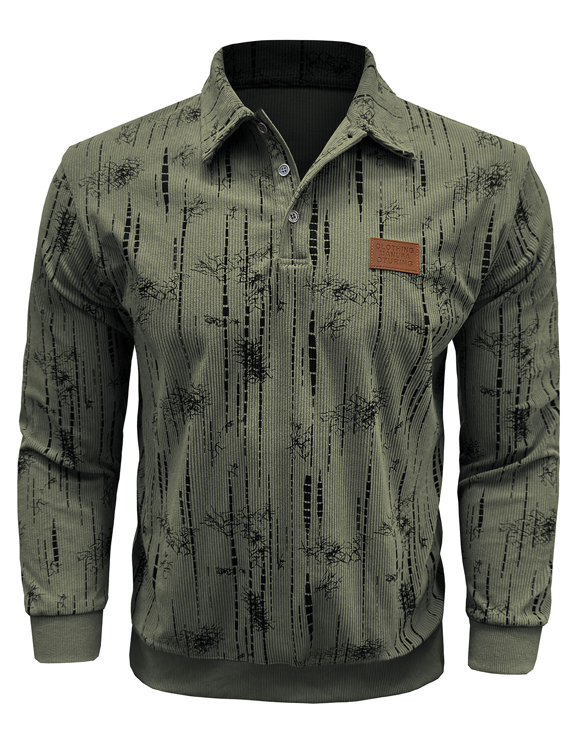 Herren Baumwolle Grün Blumenmuster Langarmhemd