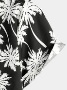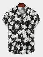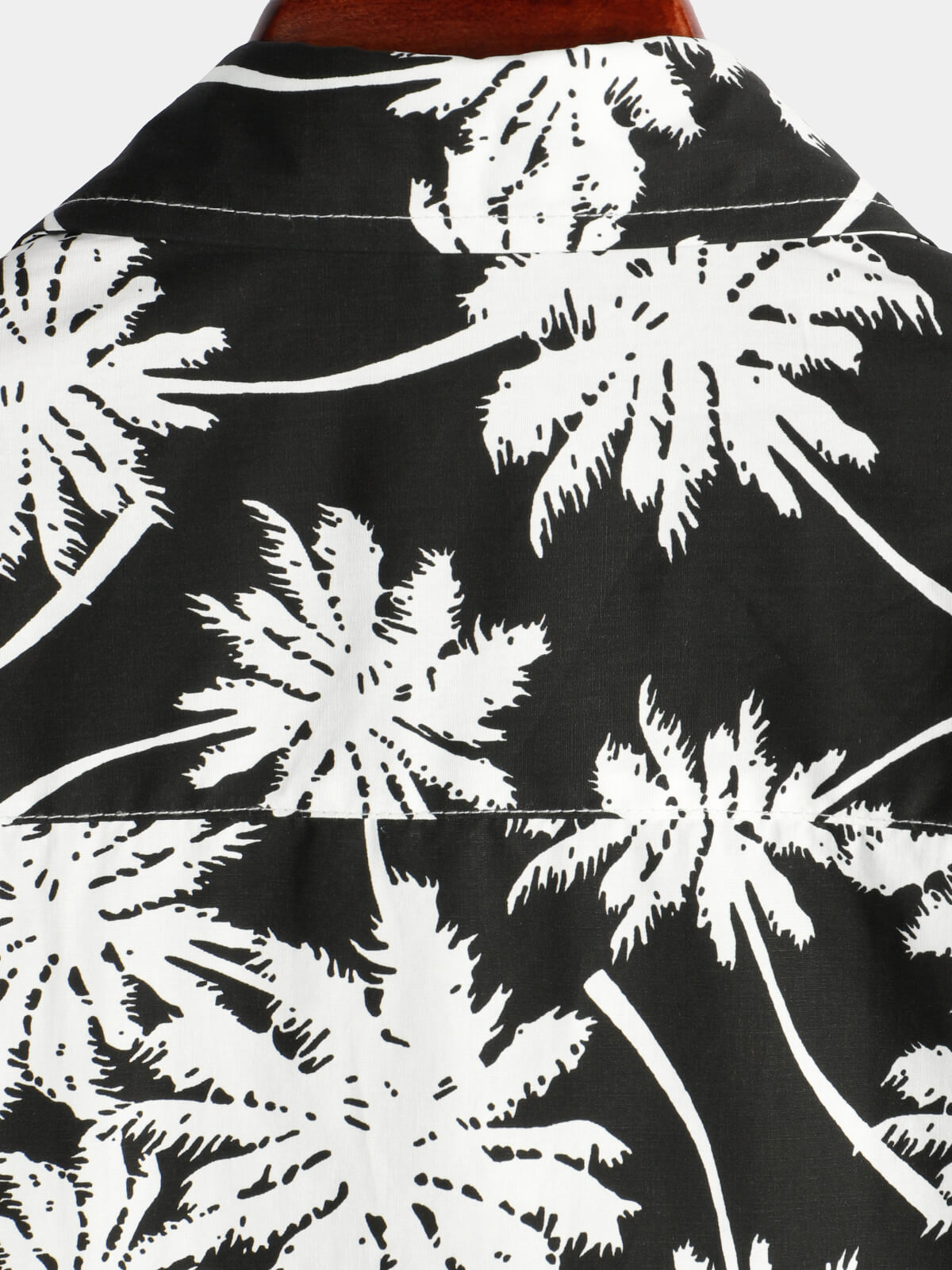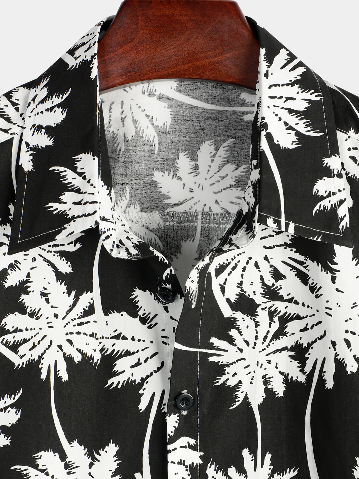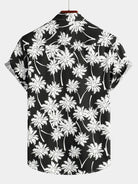 Herren Blumendruck Baumwolle Kurzarmhemd Schwarz