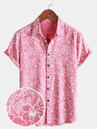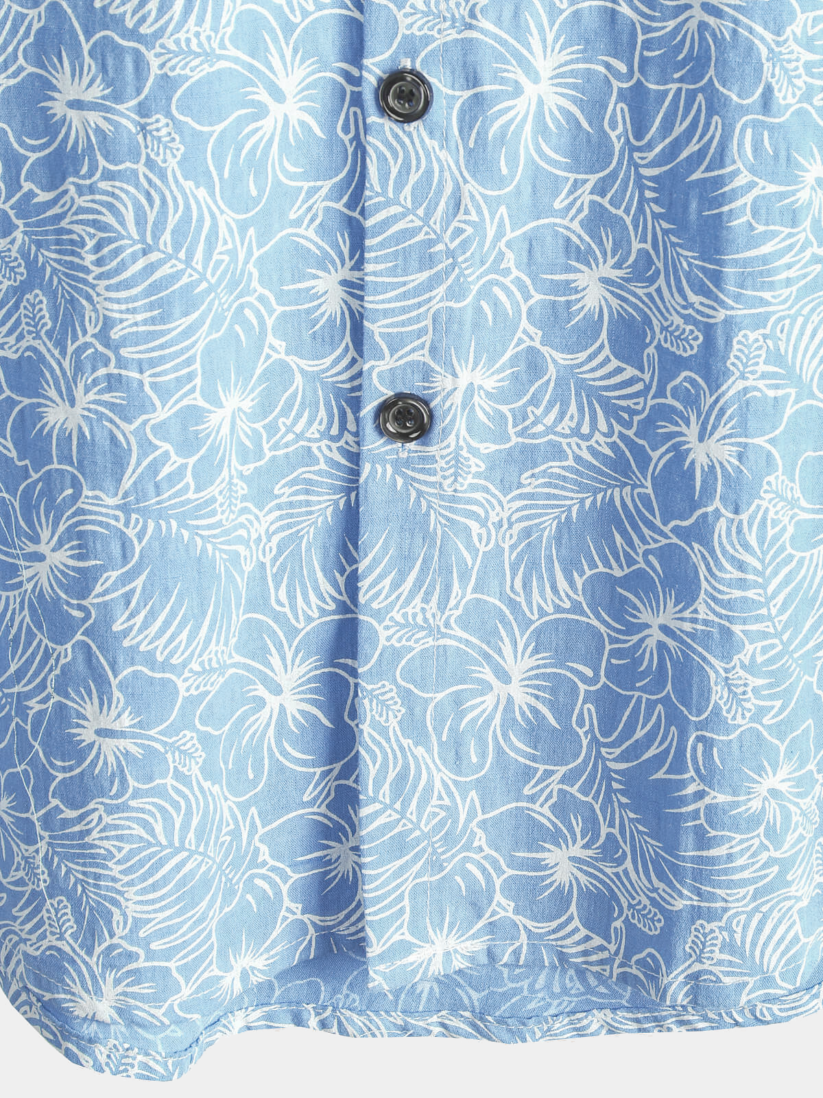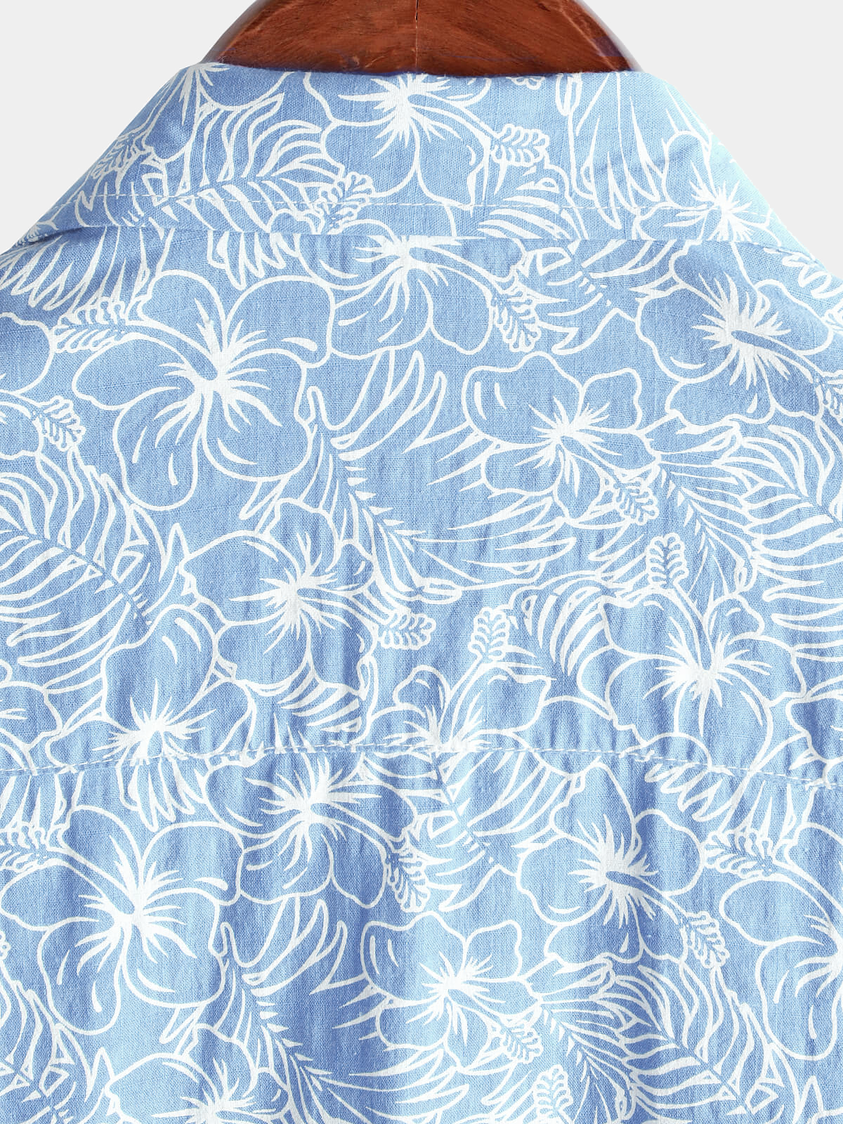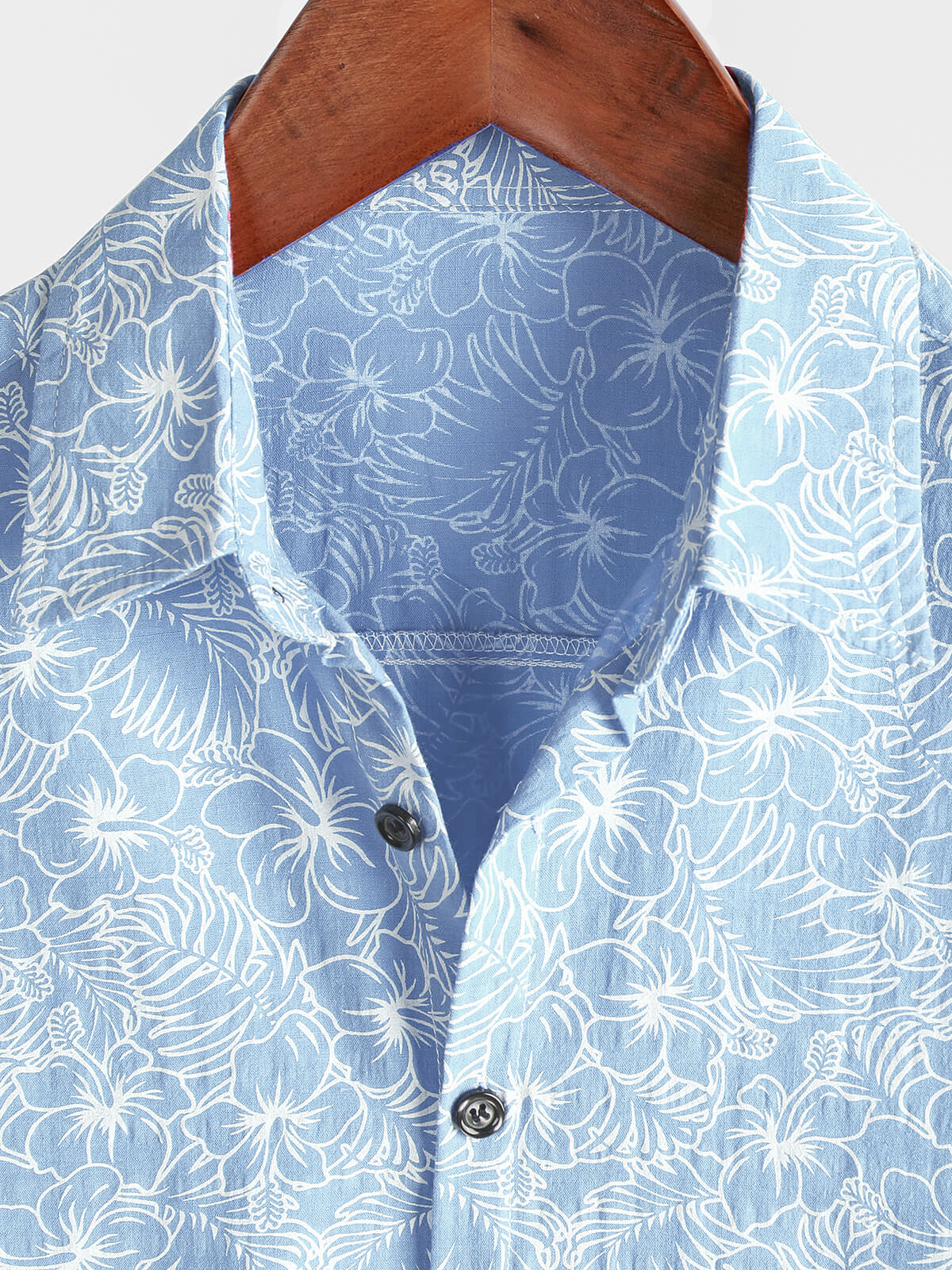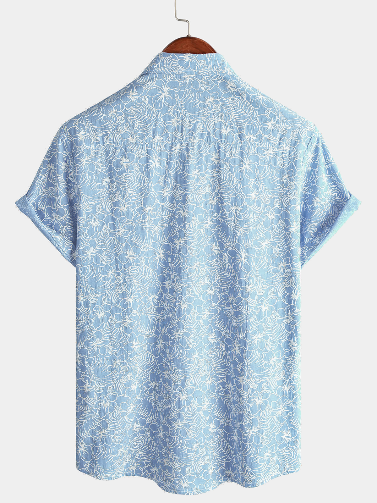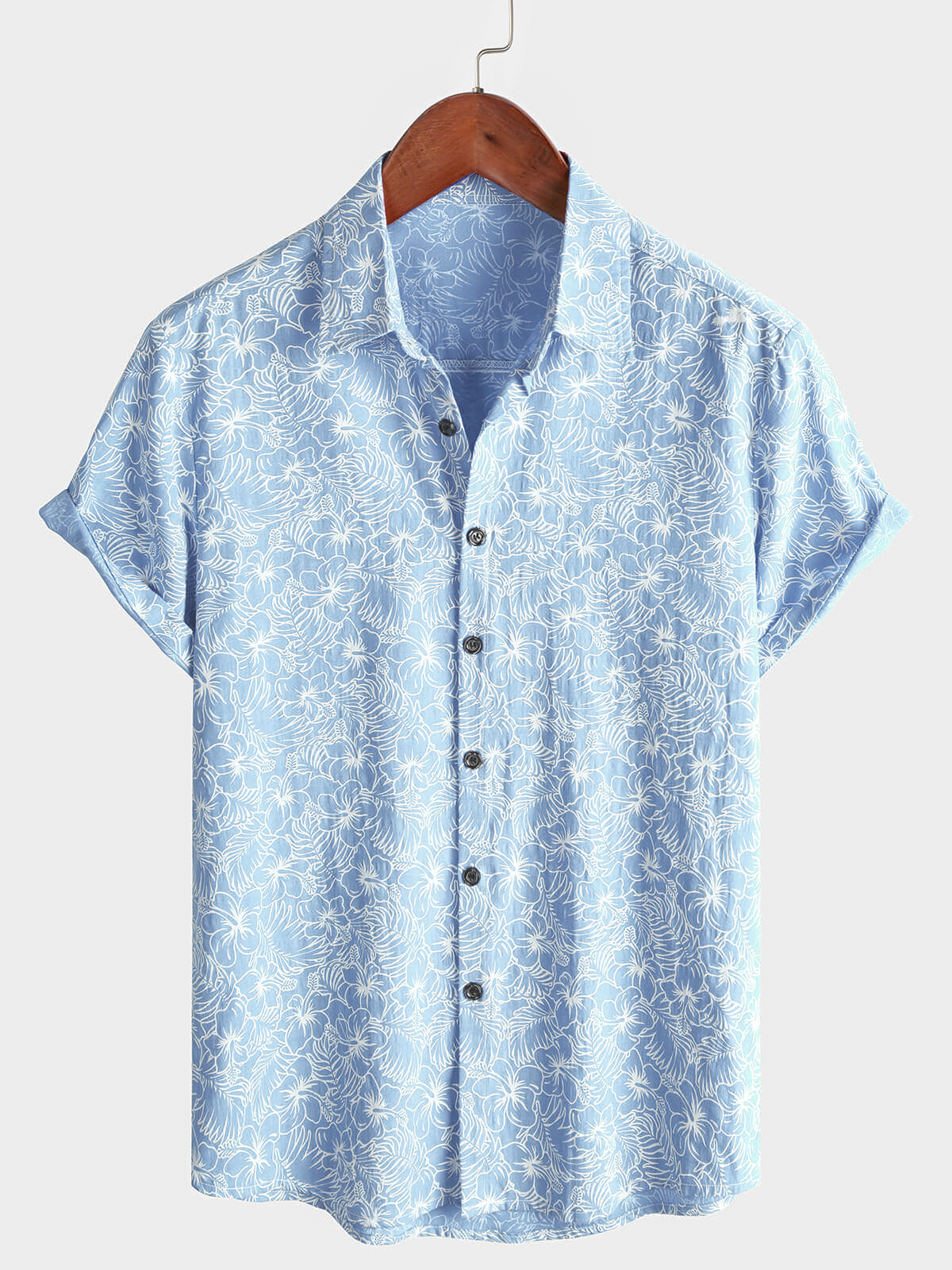 Herren Freizeit Blau Blumenmuster Sommer Kurzarmhemd
