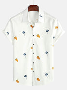 Herren Kurzarm Blumendruck Baumwolle Hemd