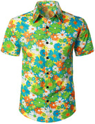 Herren Kurzarm Blumendruck Baumwolle Hemd