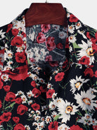Herren Sommer Rose Daisy Blumendruck Lässiges Blumen Kurzarmhemd