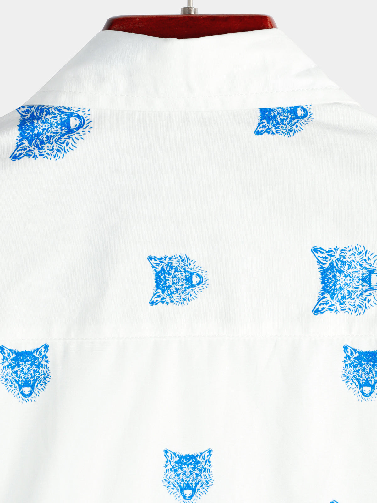 Herren Hemd mit Wolf-Animal-Print Weiss