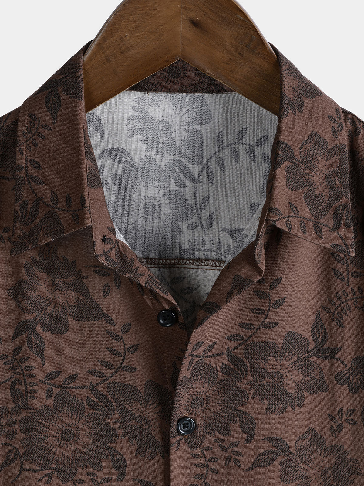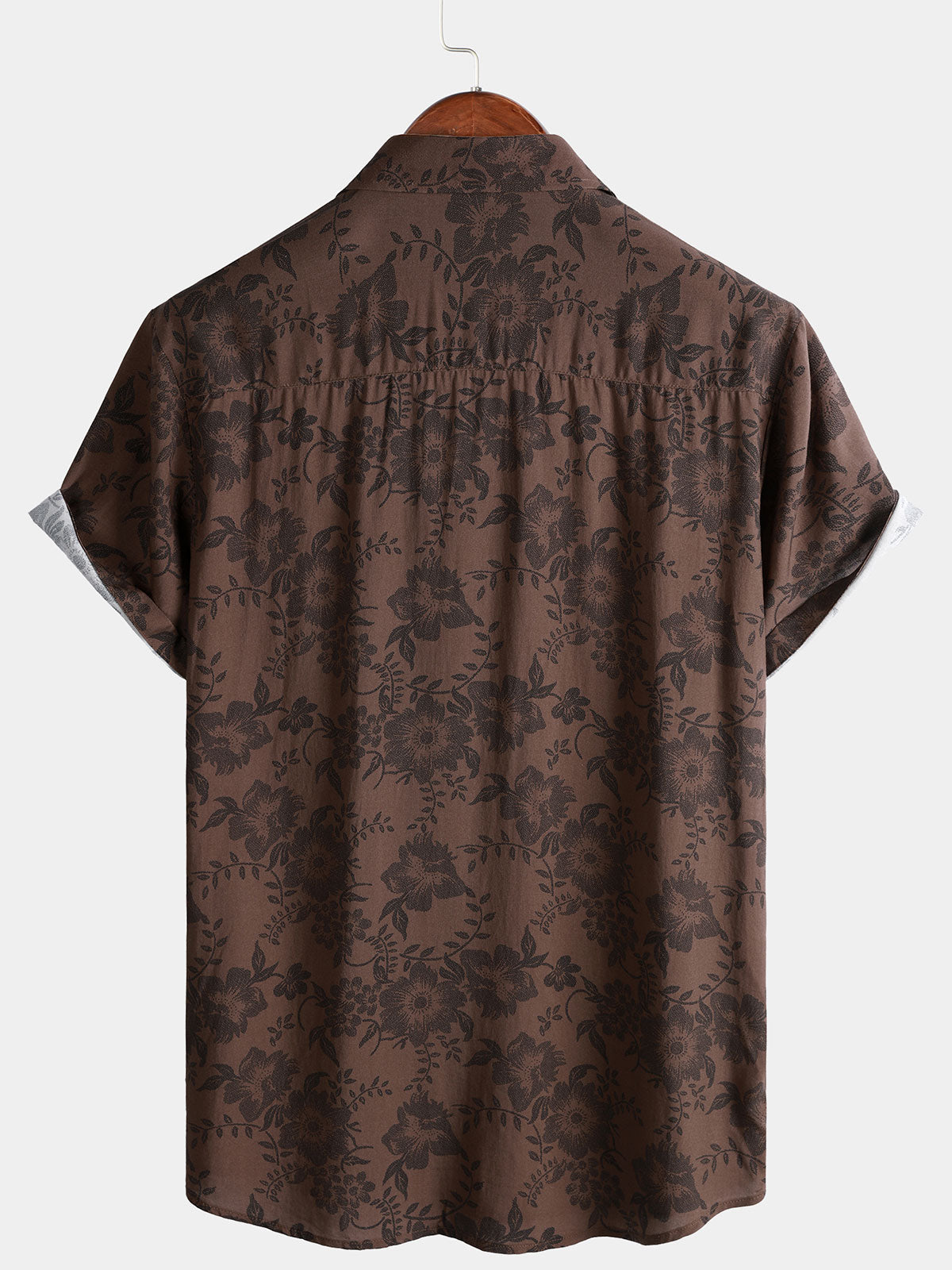 Herren Retro Blumenmuster Braun Hemd