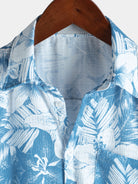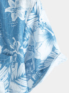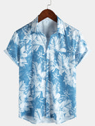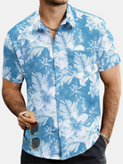 Herren Tropischem Print Sommer Kurzen Ärmeln Blau Hemd