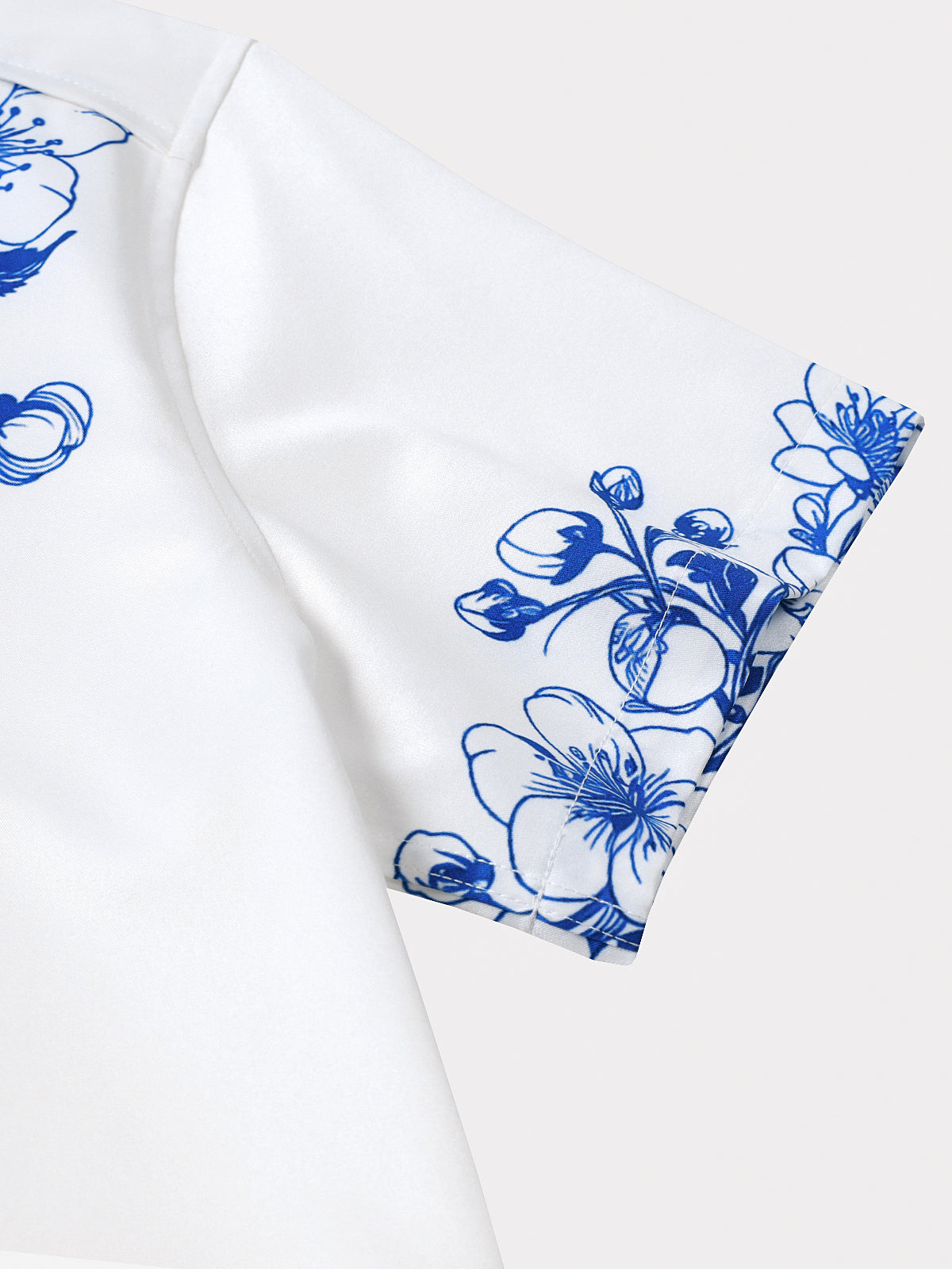 Herren Kurzarm-Strandhemd aus Baumwolle mit Blumenmuster