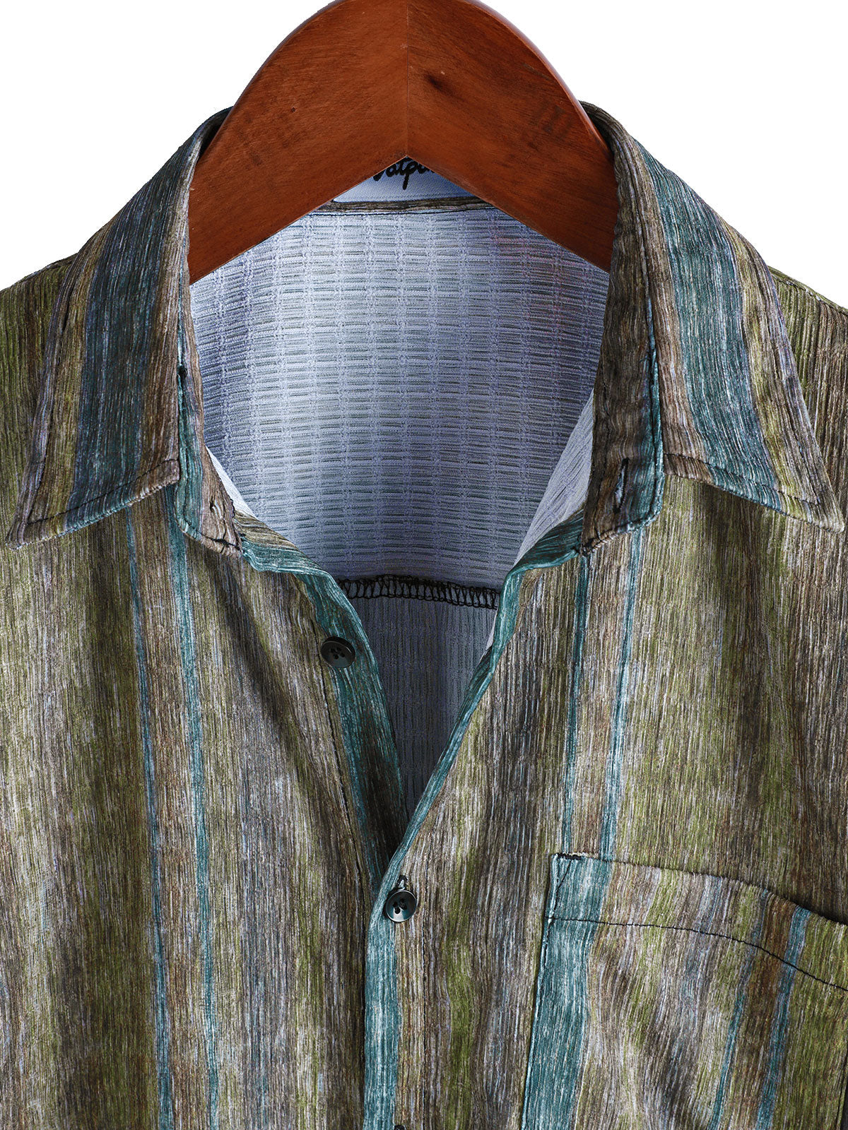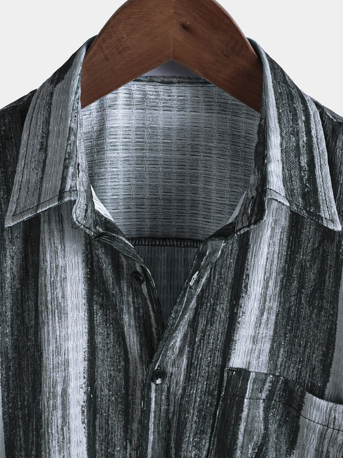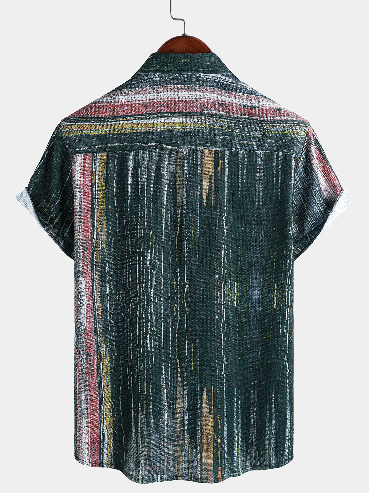 Herren Vintage Streifen Kurzen Ärmeln Hawaiihemd