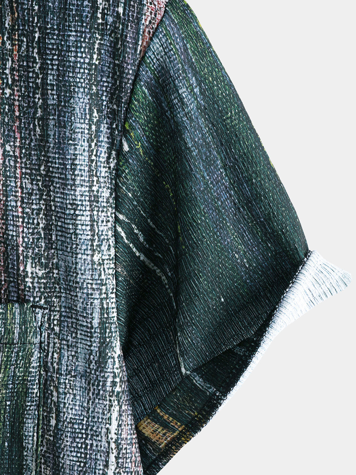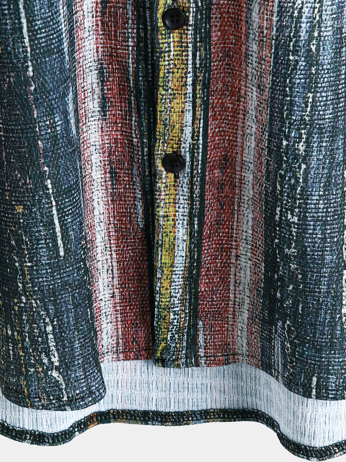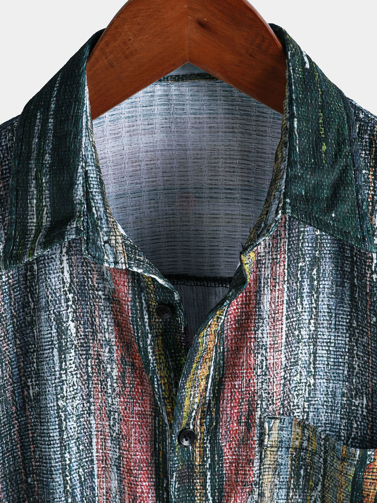 Herren Vintage Streifen Kurzen Ärmeln Hawaiihemd