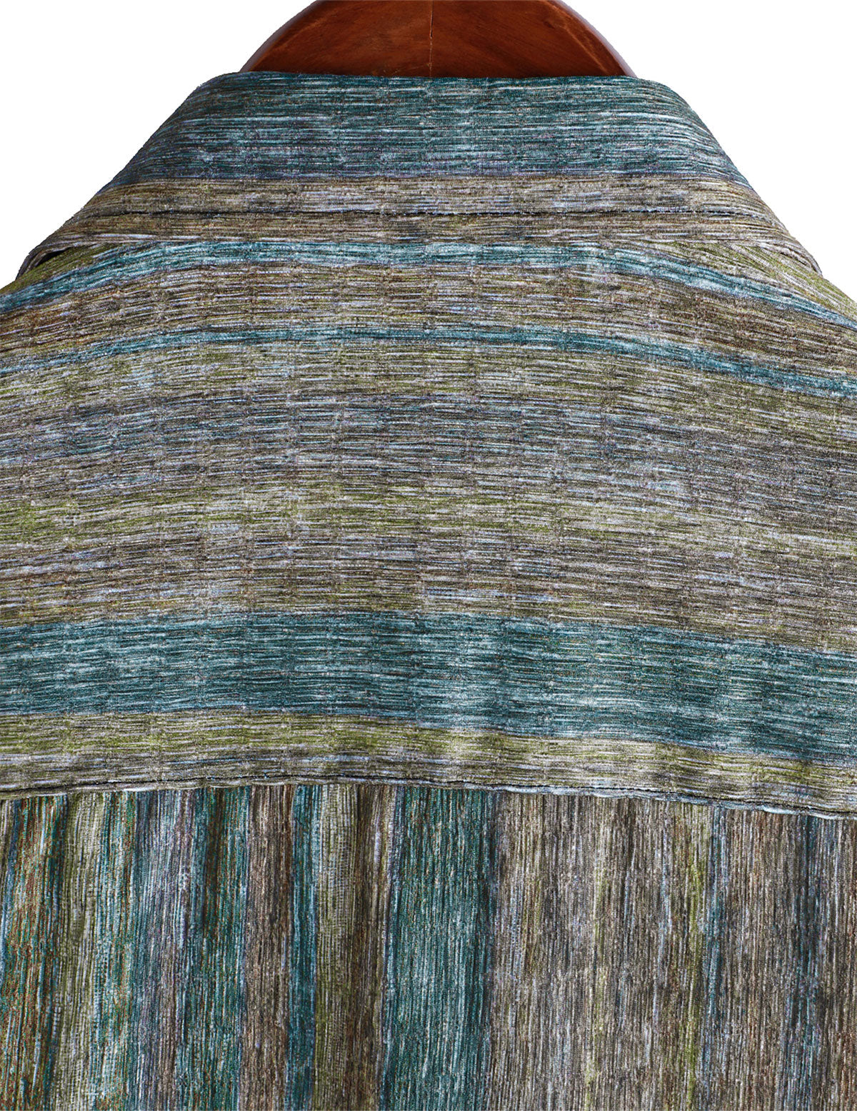 Herren Khakifarbenes Gestreiftes Retro-Kurzarmhemd