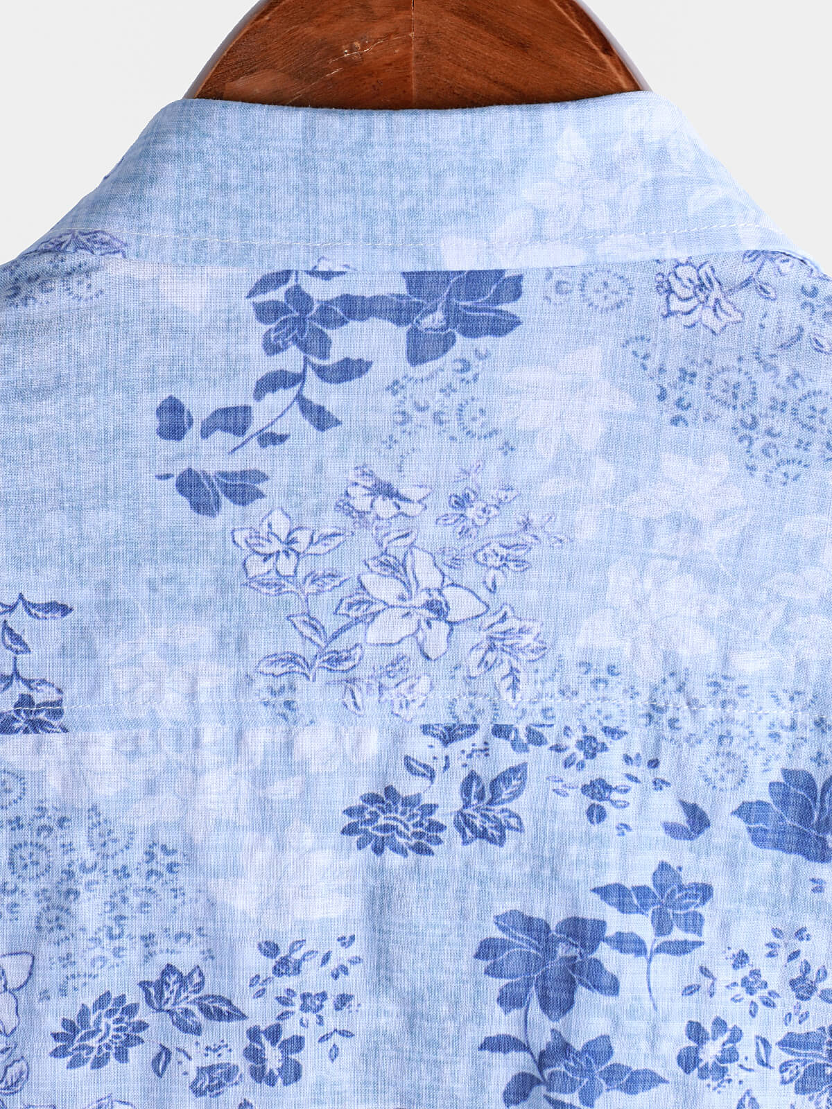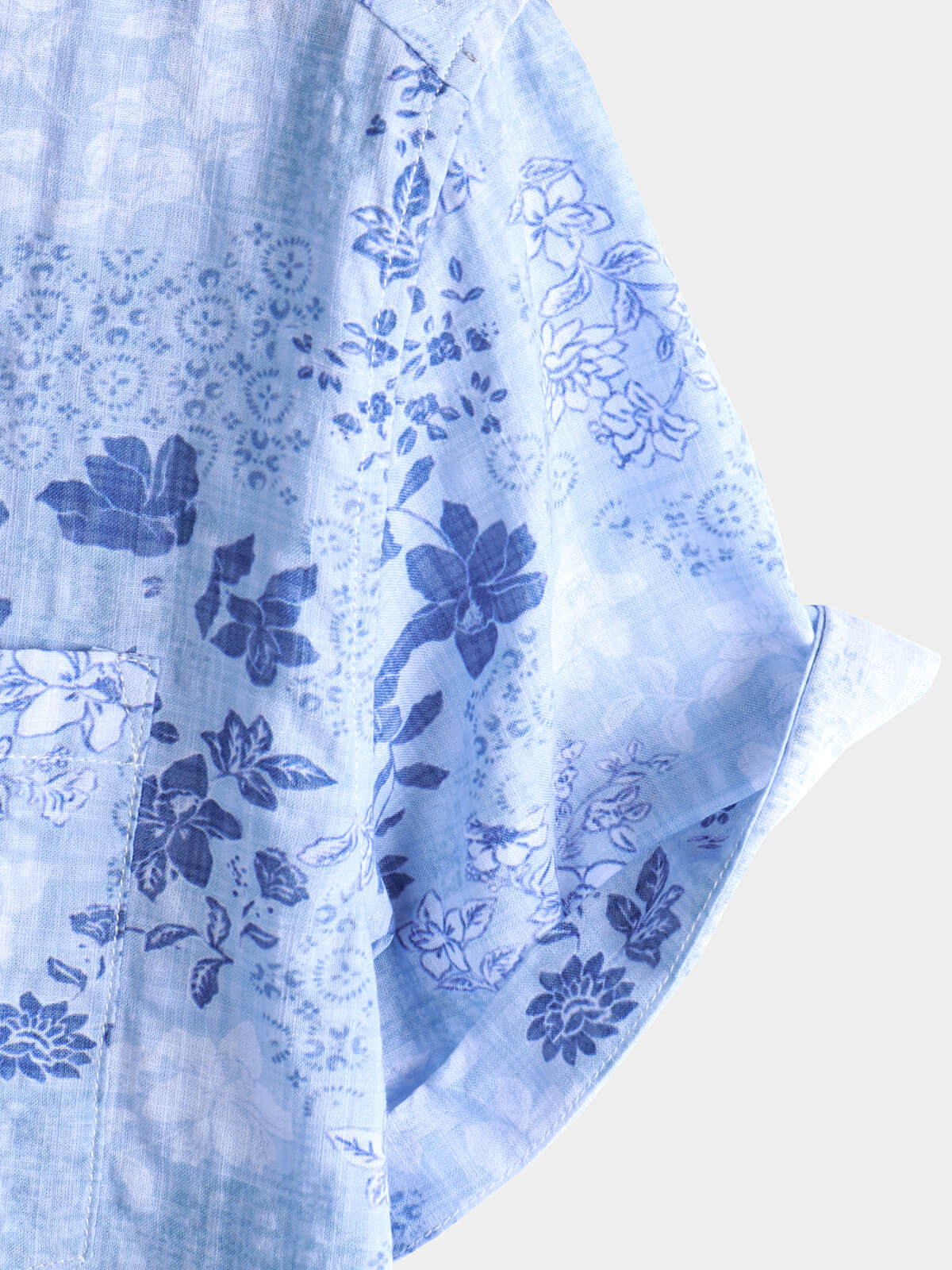 Herren Blaues Retro-Kurzarmhemd mit Blumenmuster