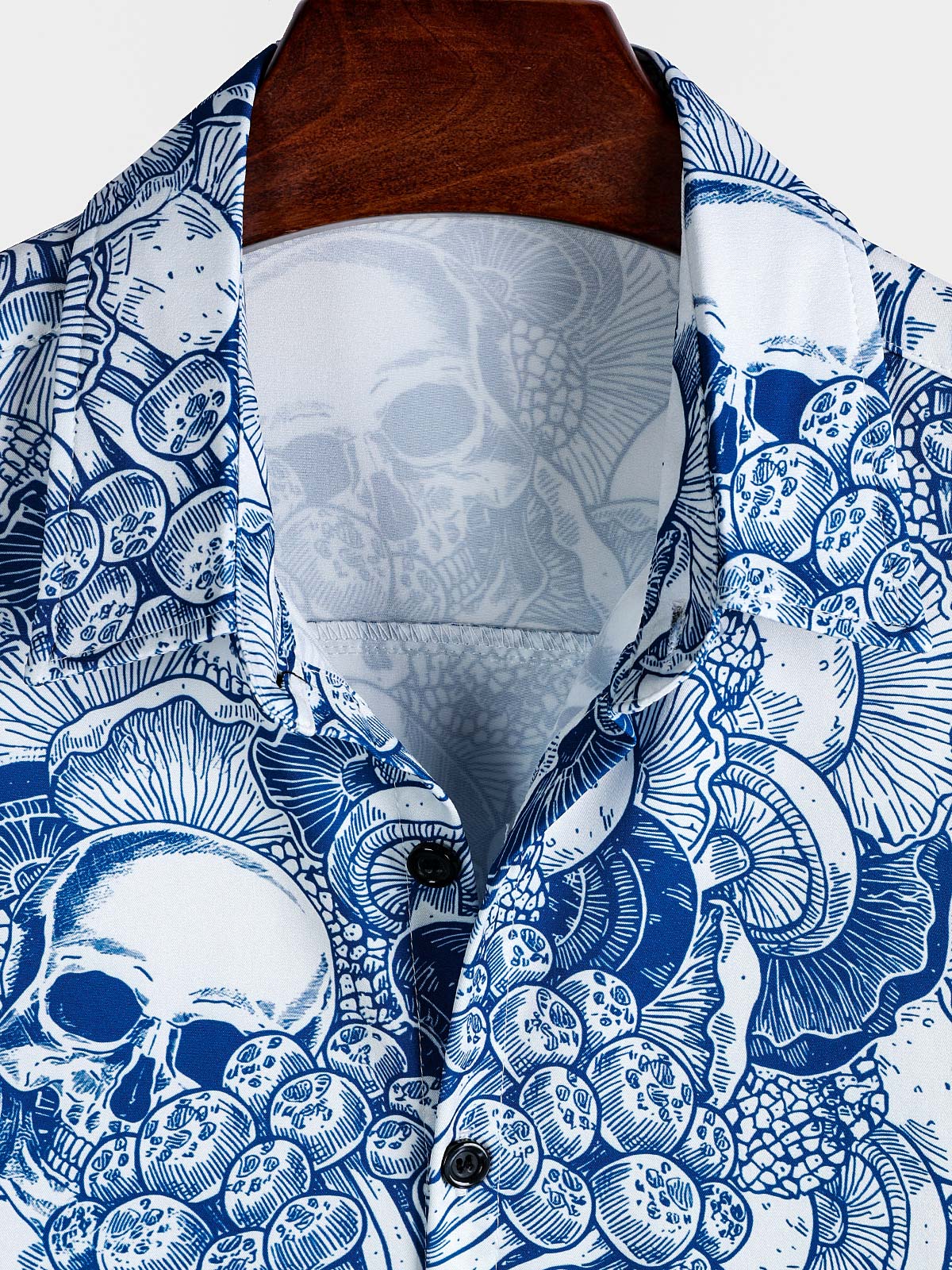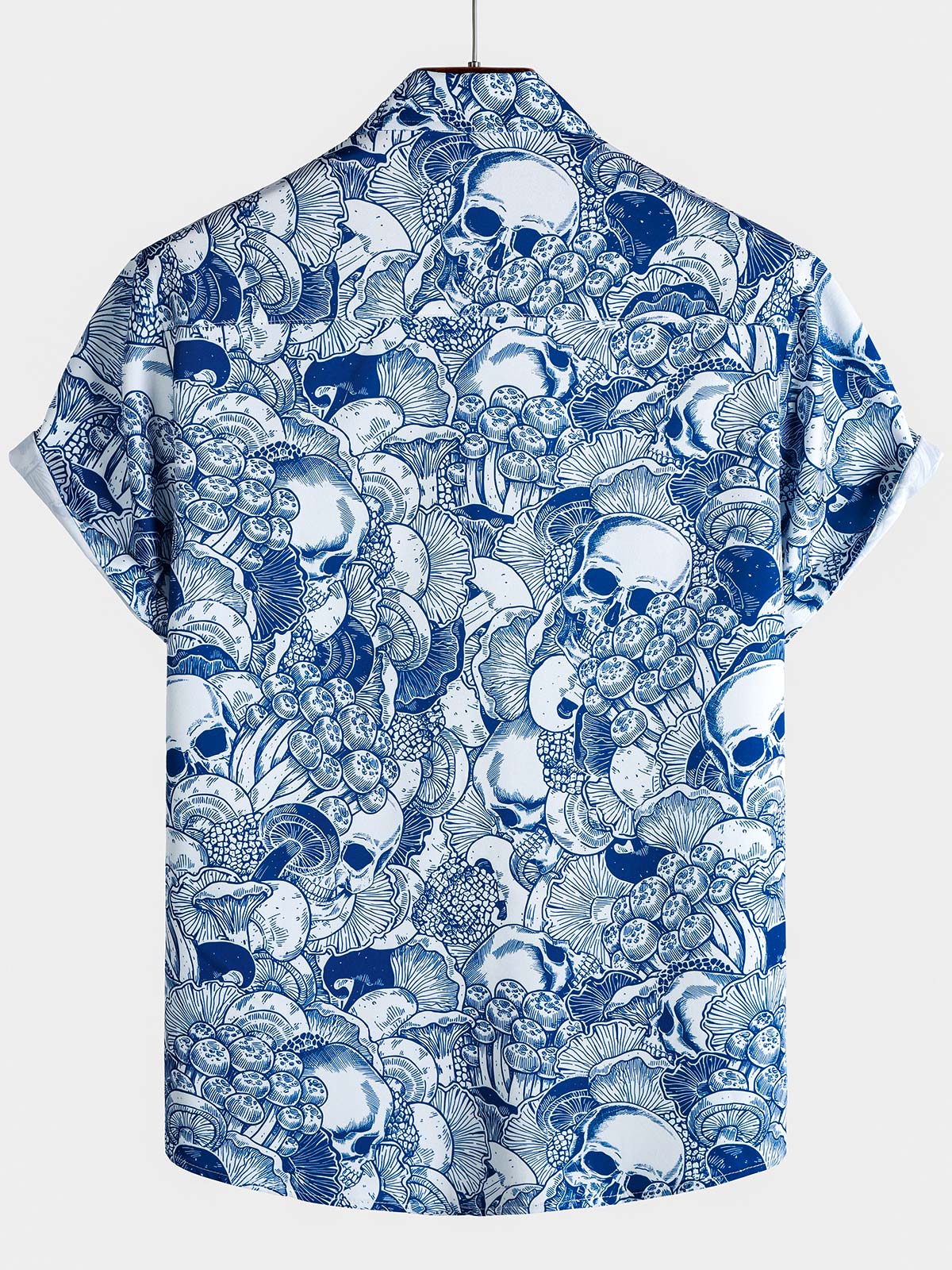 Herren Blaues Kurzarmhemd mit Totenkopf