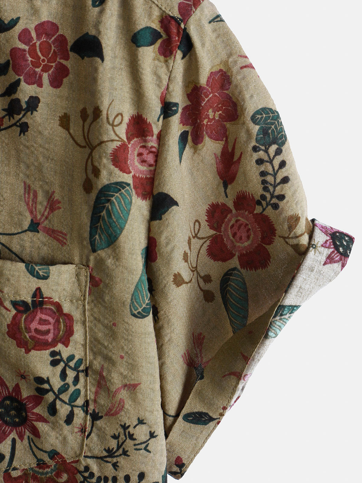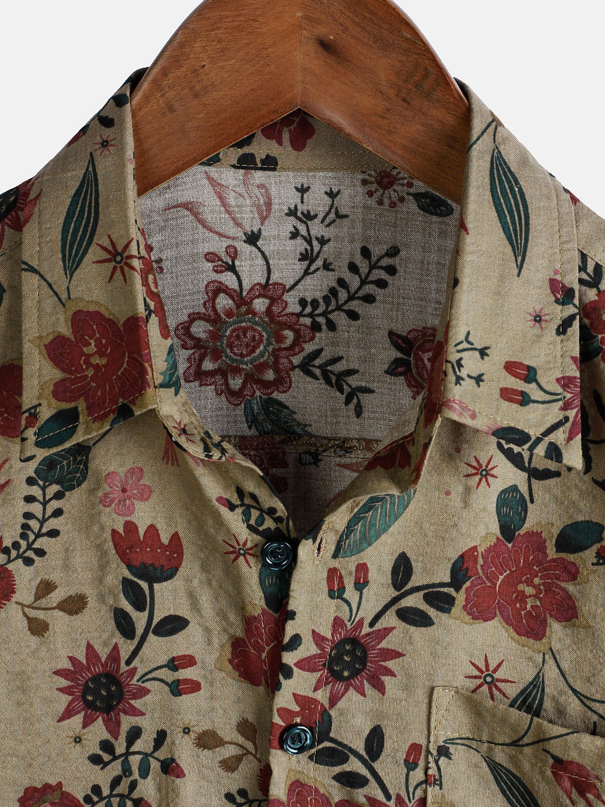 Herren Kurzarmhemd mit Vintage-Blumenmuster