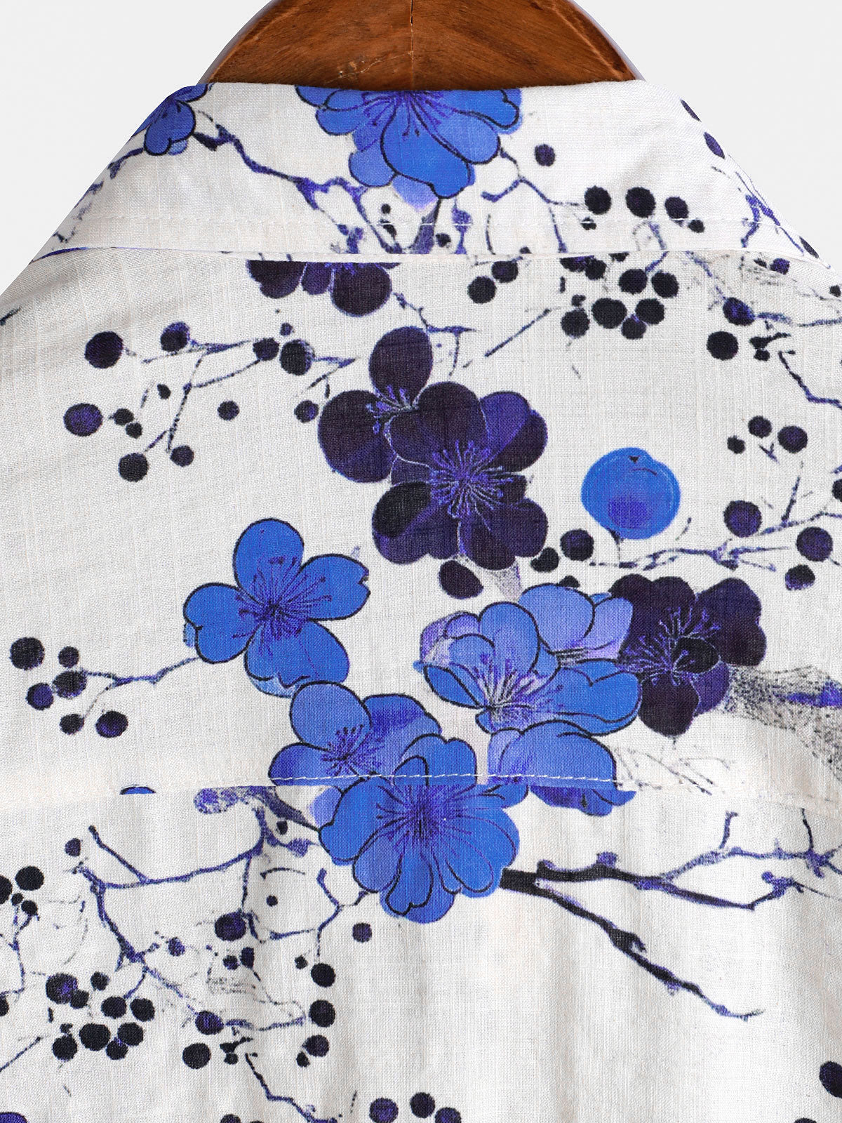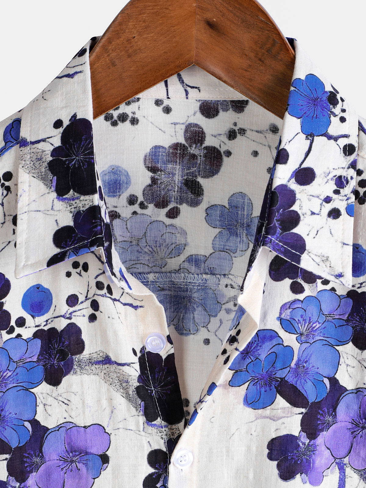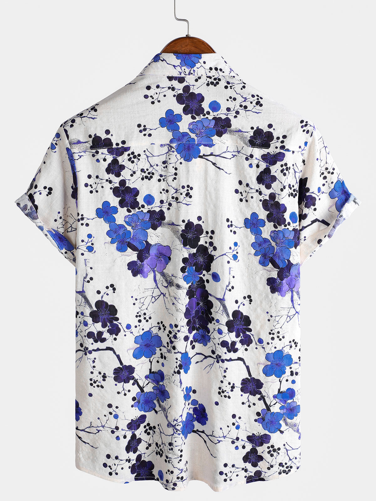 Herren Kurzärmliges Baumwollhemd mit blauem Blumenmotiv