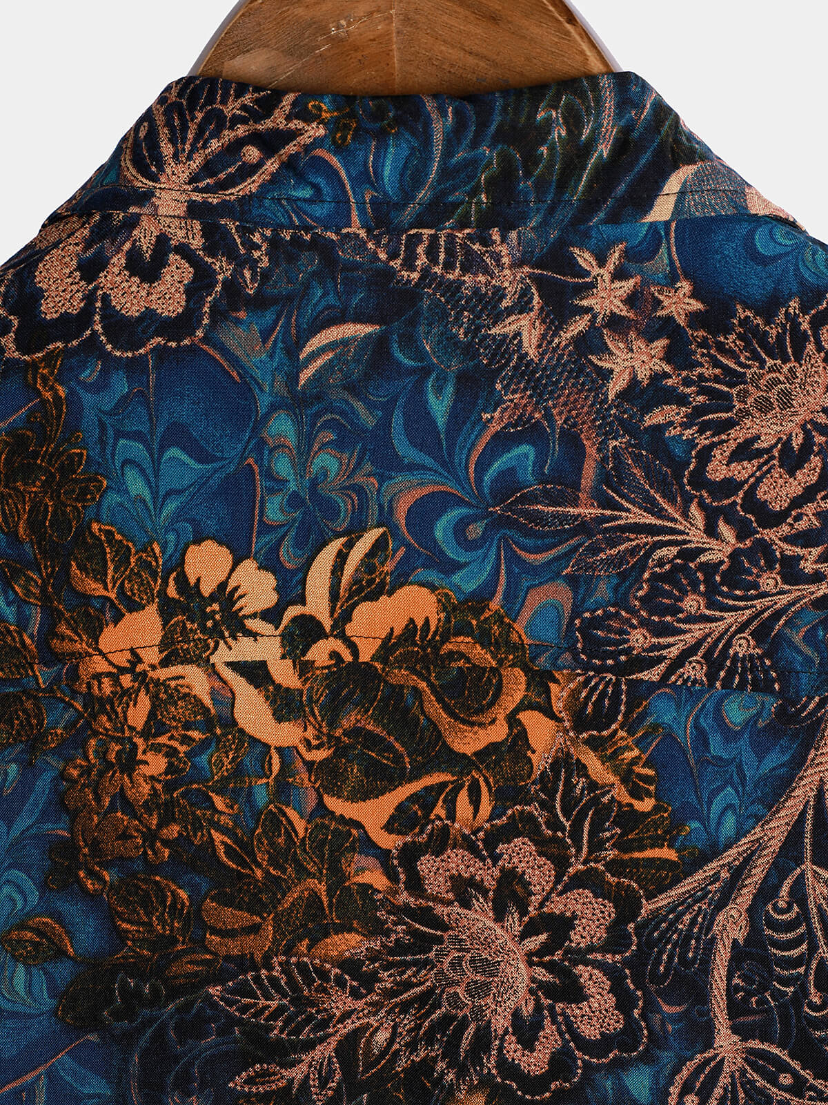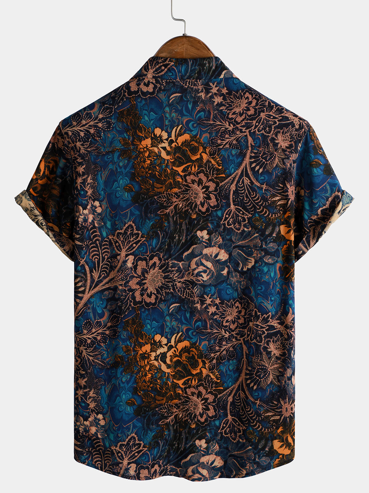 Herren Retro-Blumen-Kurzarm-Resort-Hemd