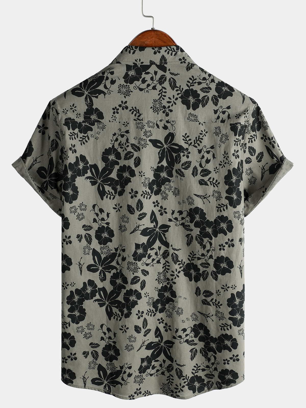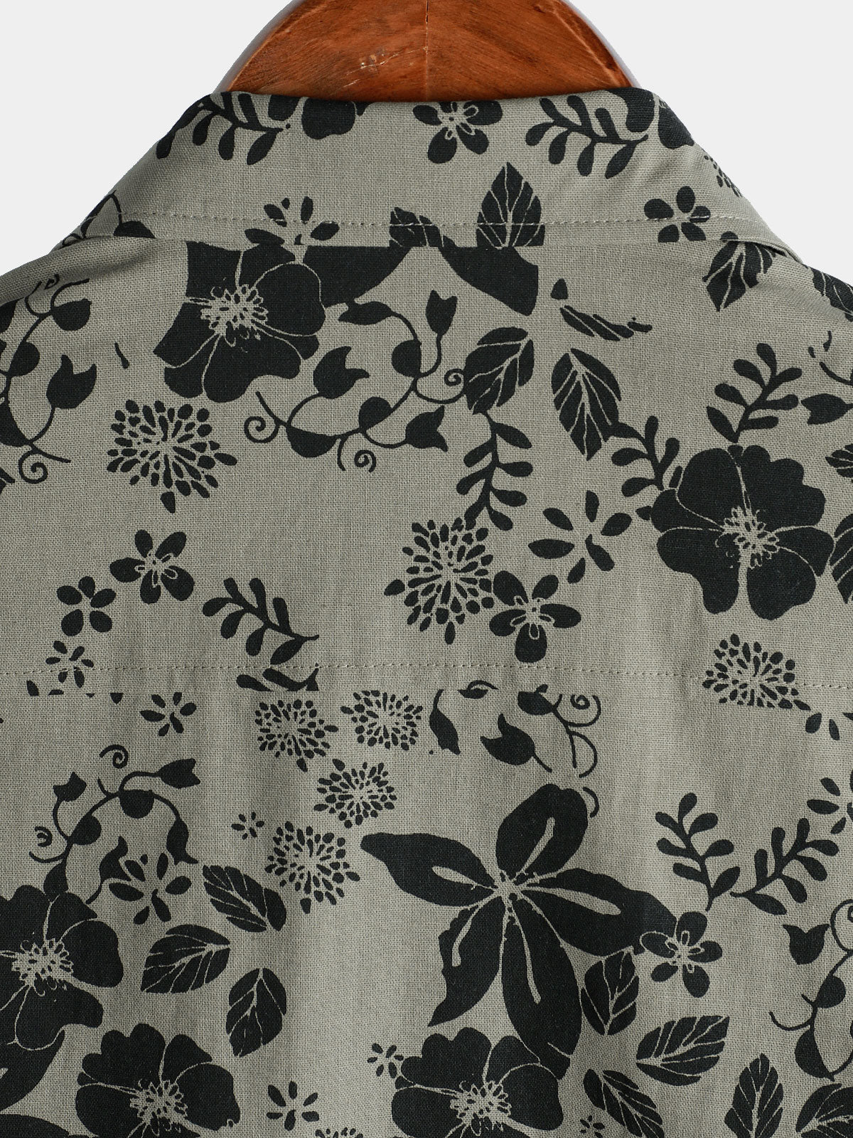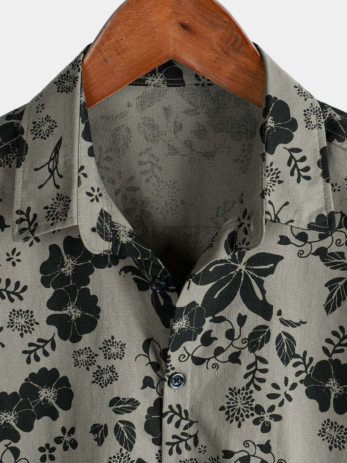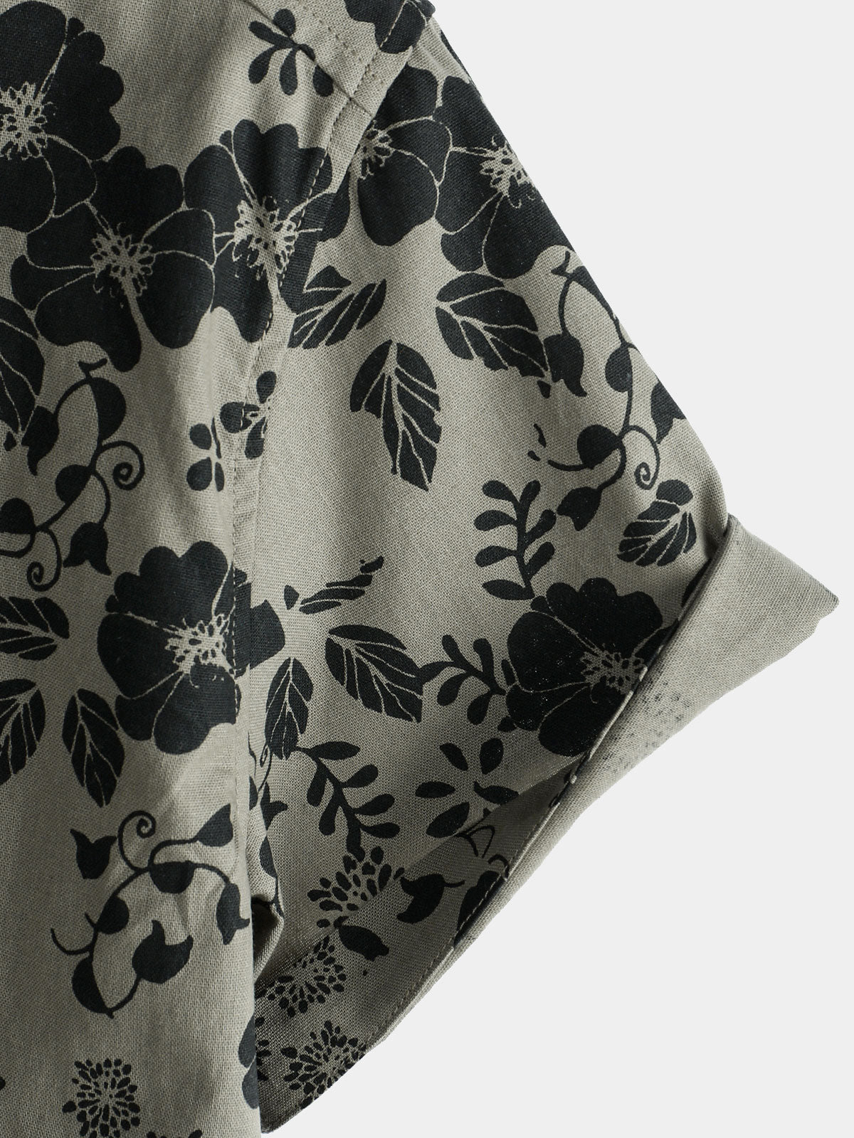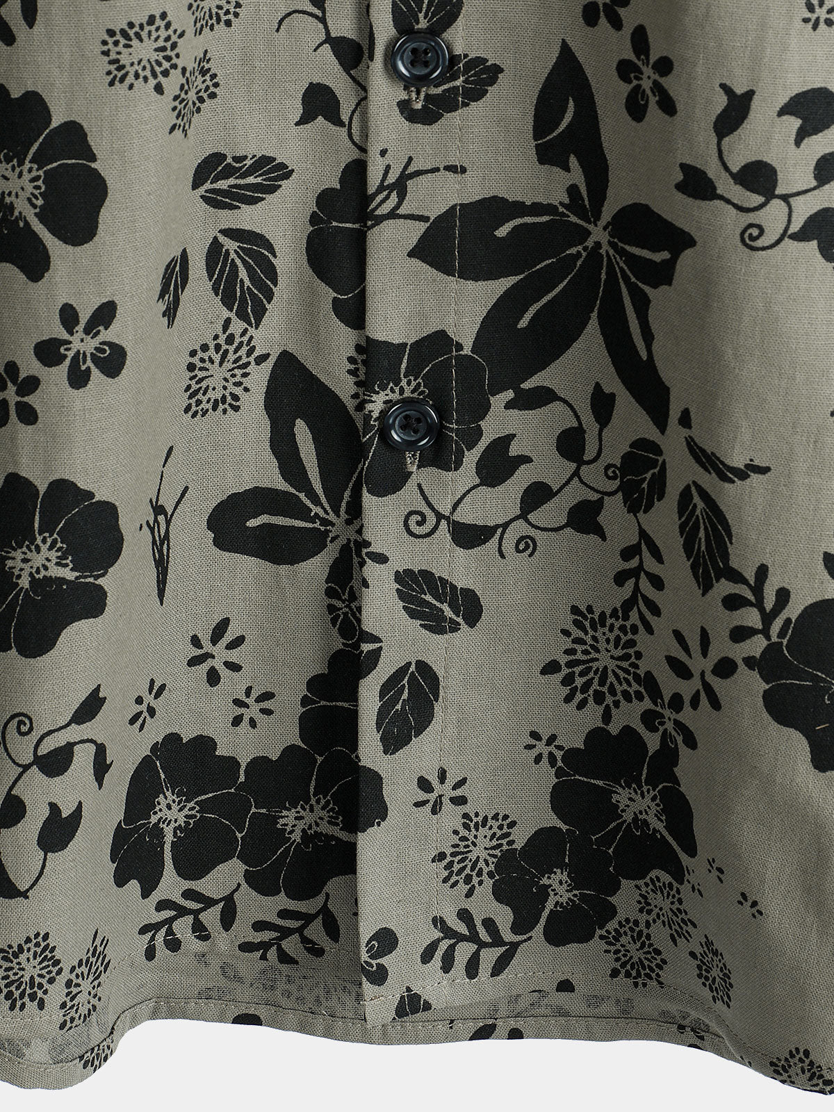 Herren Retro-Blumendruck Baumwolle und Leinen Hemd