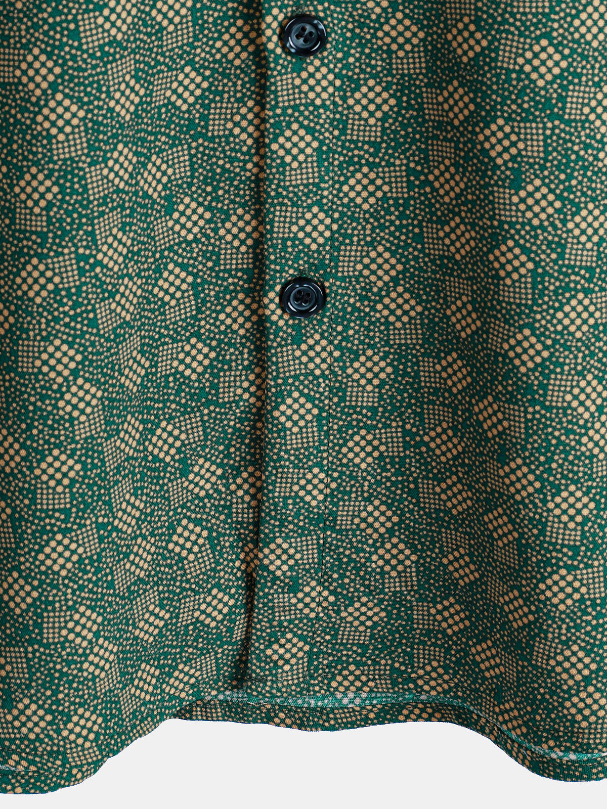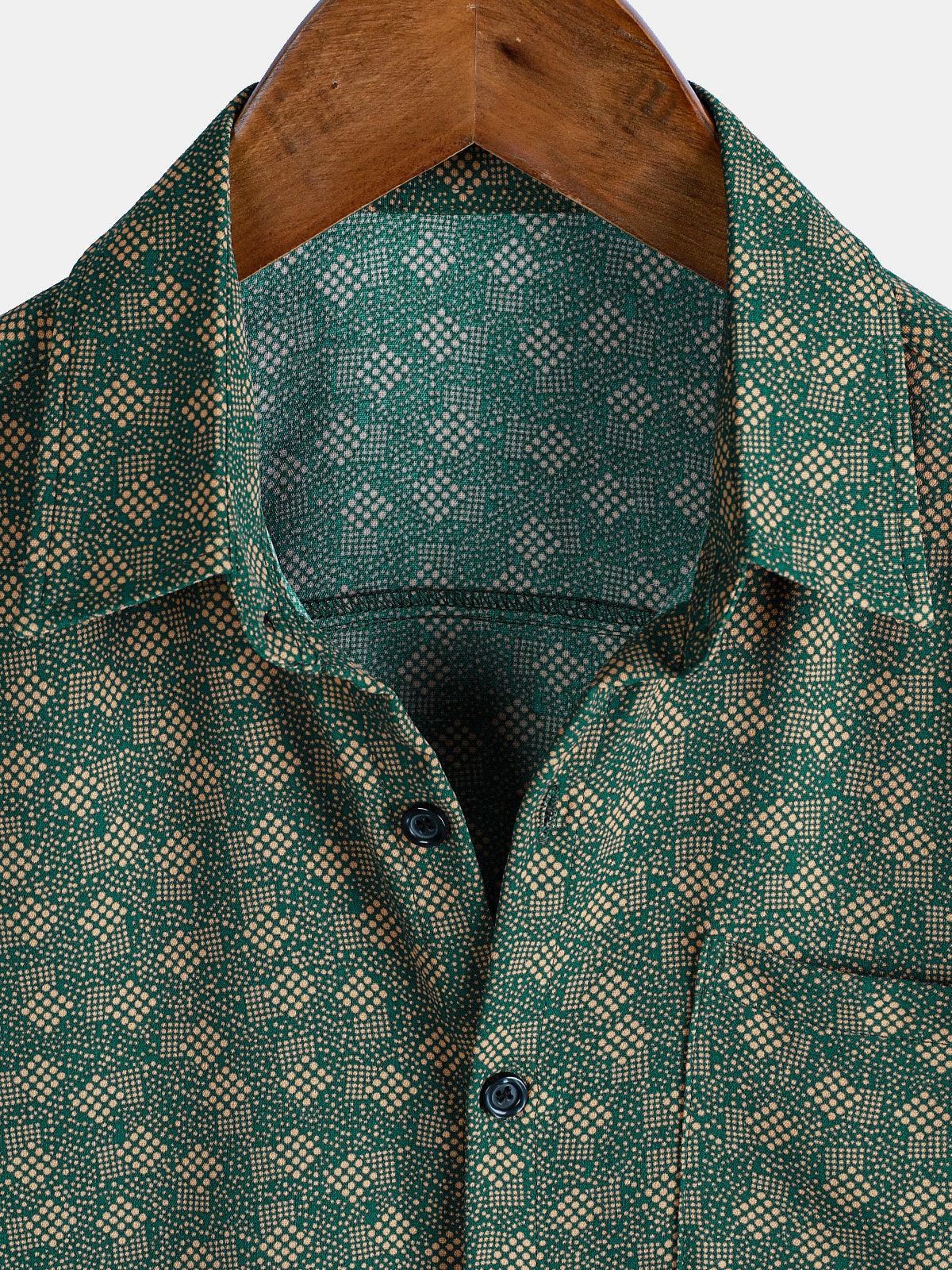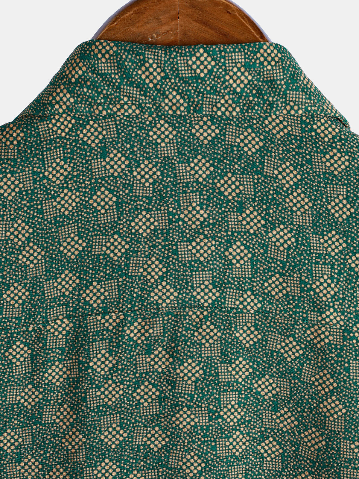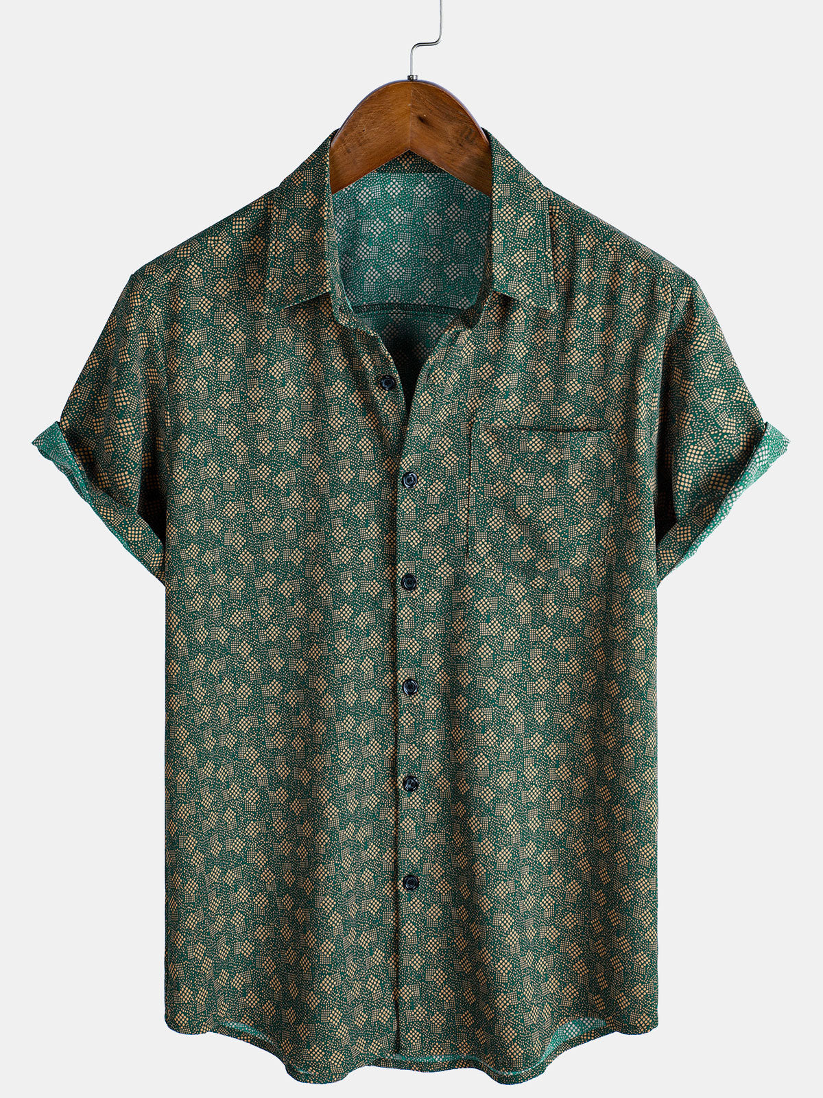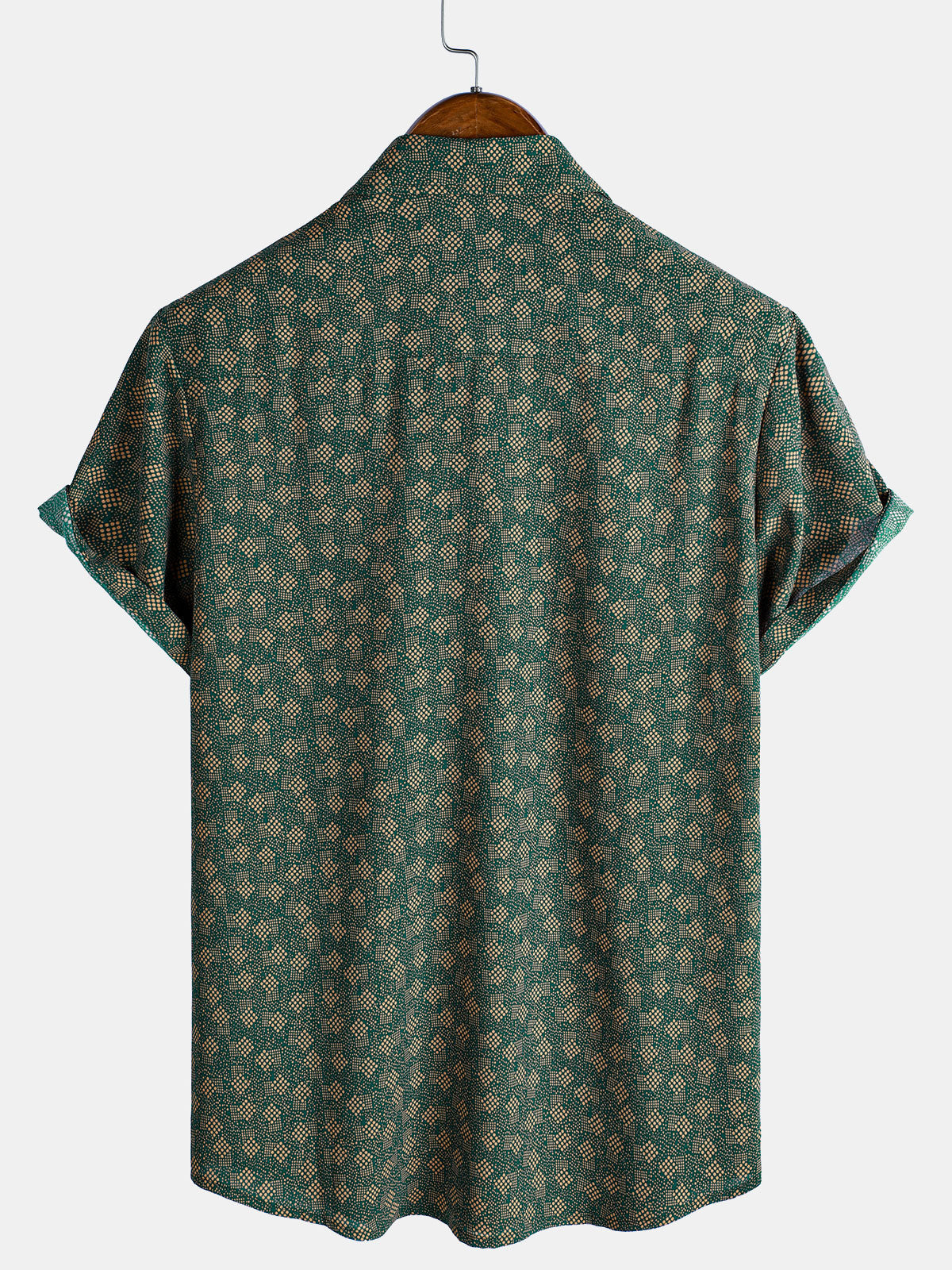 Herren Grünes Kurzarmhemd mit geometrischem Retro-Print