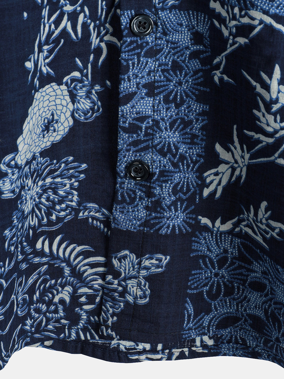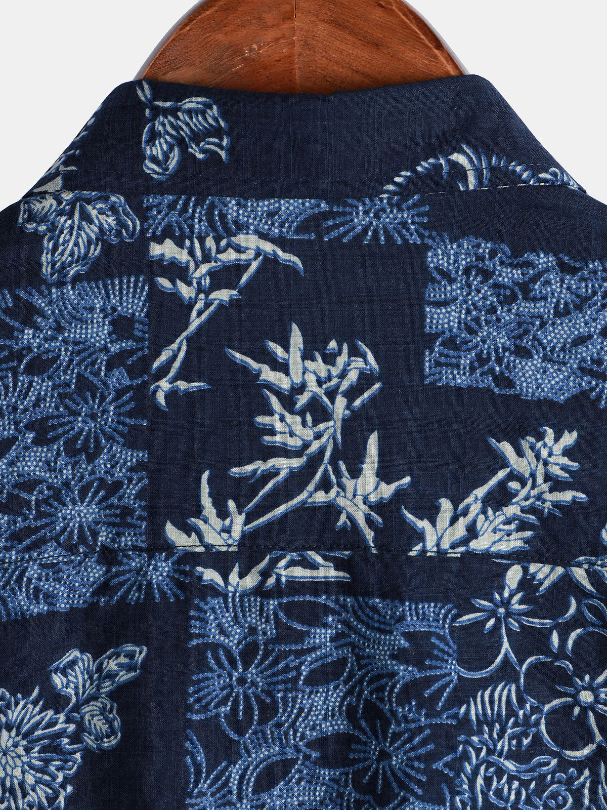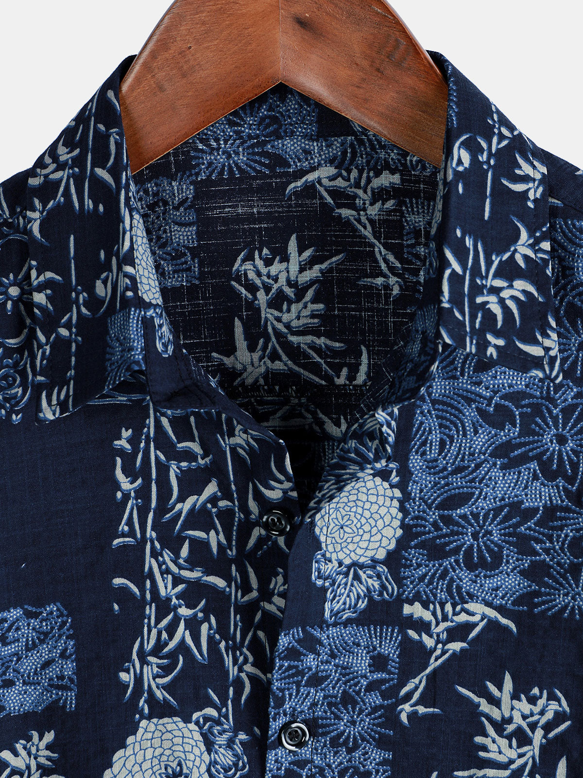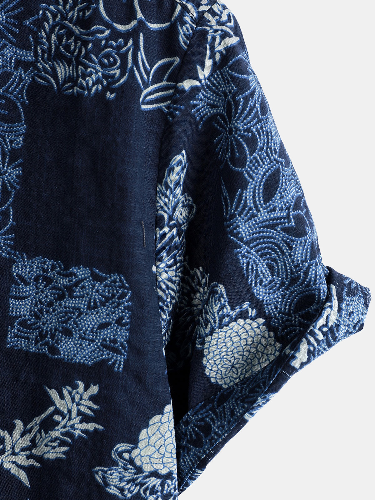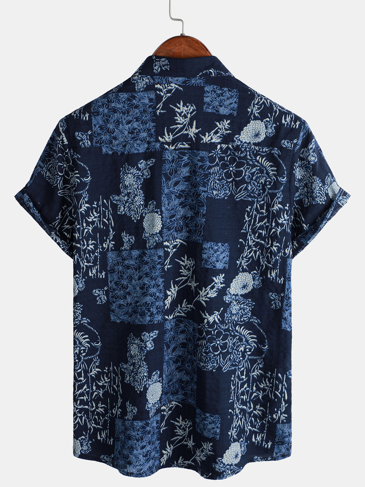 Herren Kurzarmhemd mit Retro-Blumenmuster