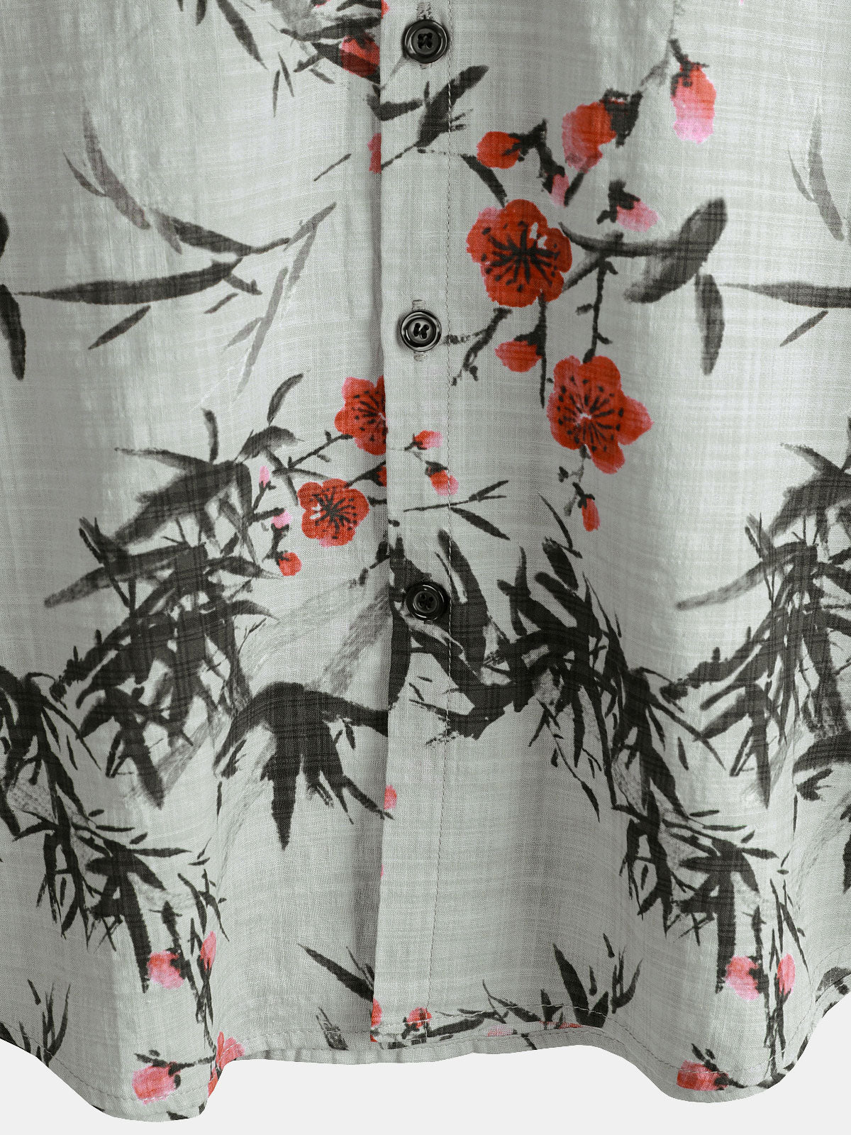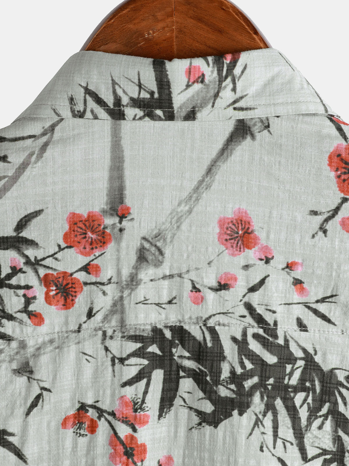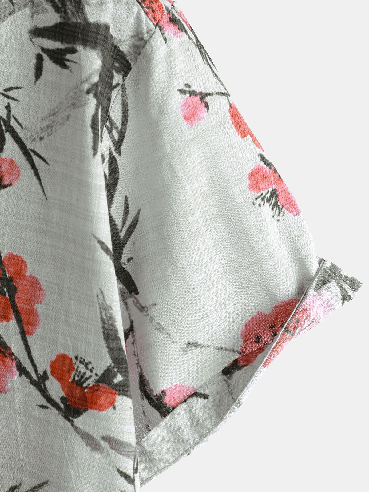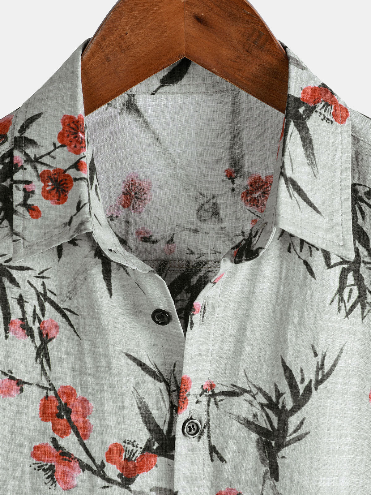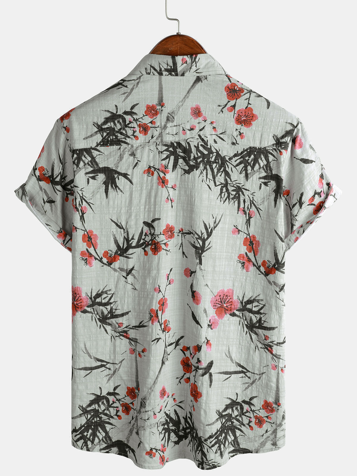 Herren Vintage Sommer Kurzarm Baumwollhemd