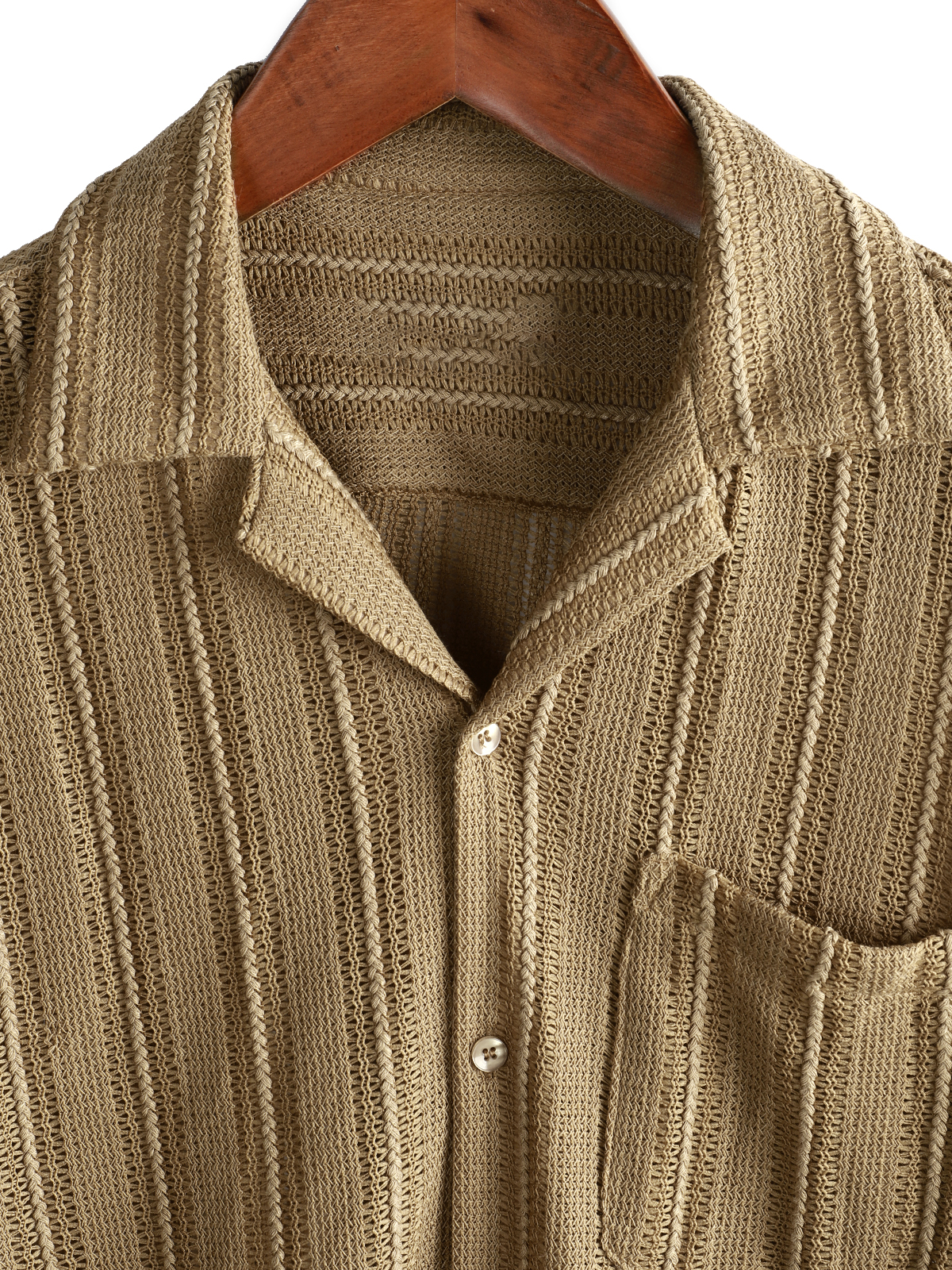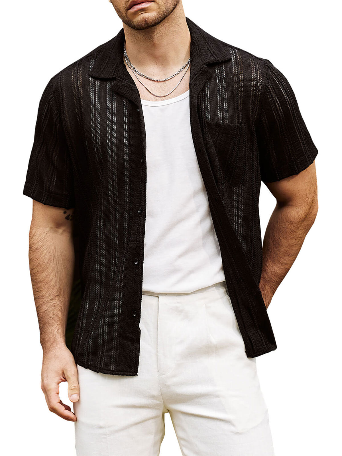 Herren Sommer Spitzen-Kurzarm-Casual-Hemd mit Knopfleiste für den Strand
