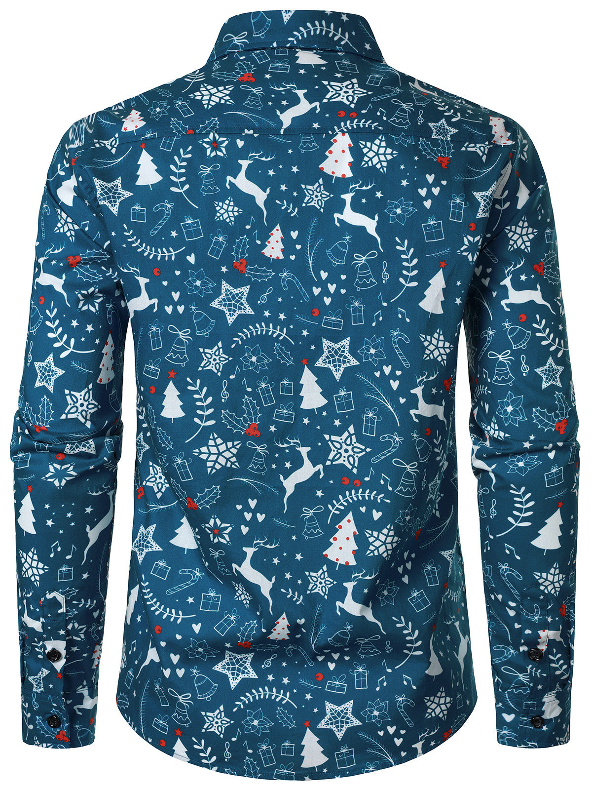 Herren Rentiermotiv Langen Ärmeln Baumwolle Weihnachtshemd