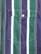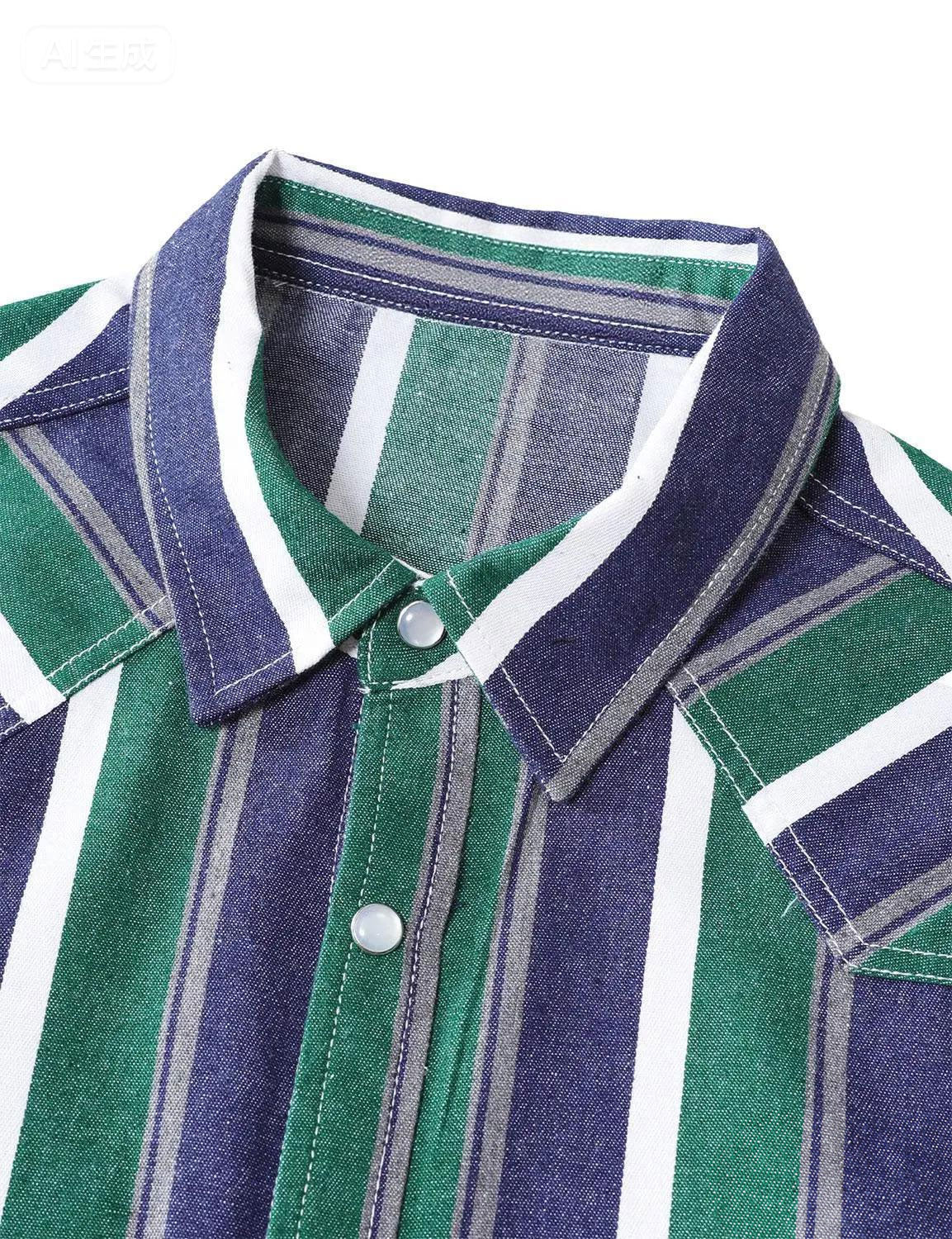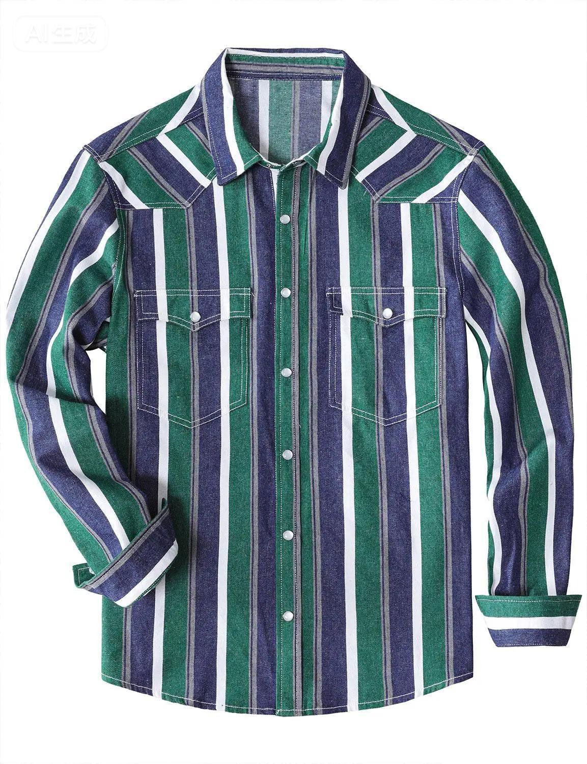 Herren Grünen Streifen Langen Ärmeln Jeanshemd