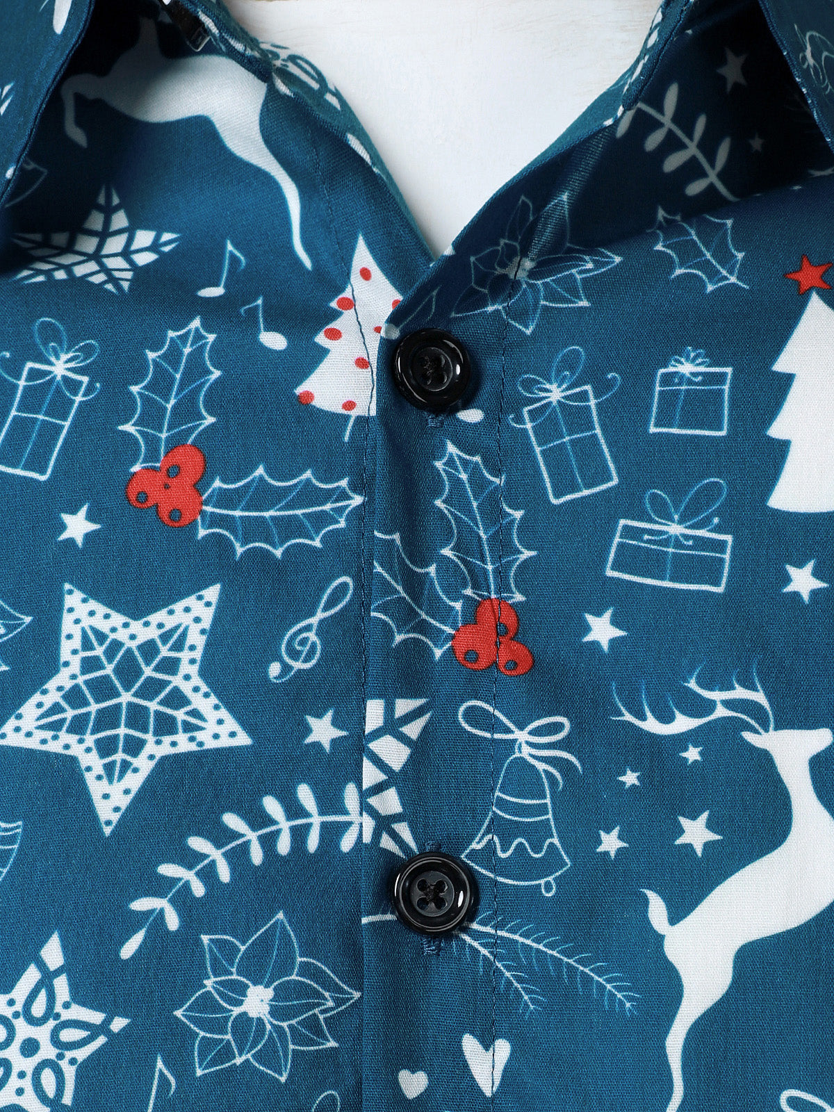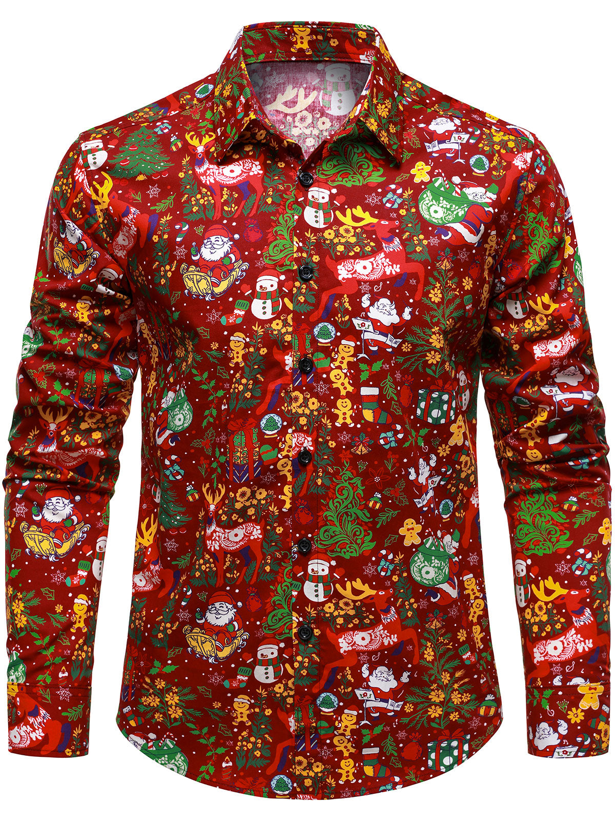 Herren Festlichem Weihnachtsaufdruck Baumwollhemd