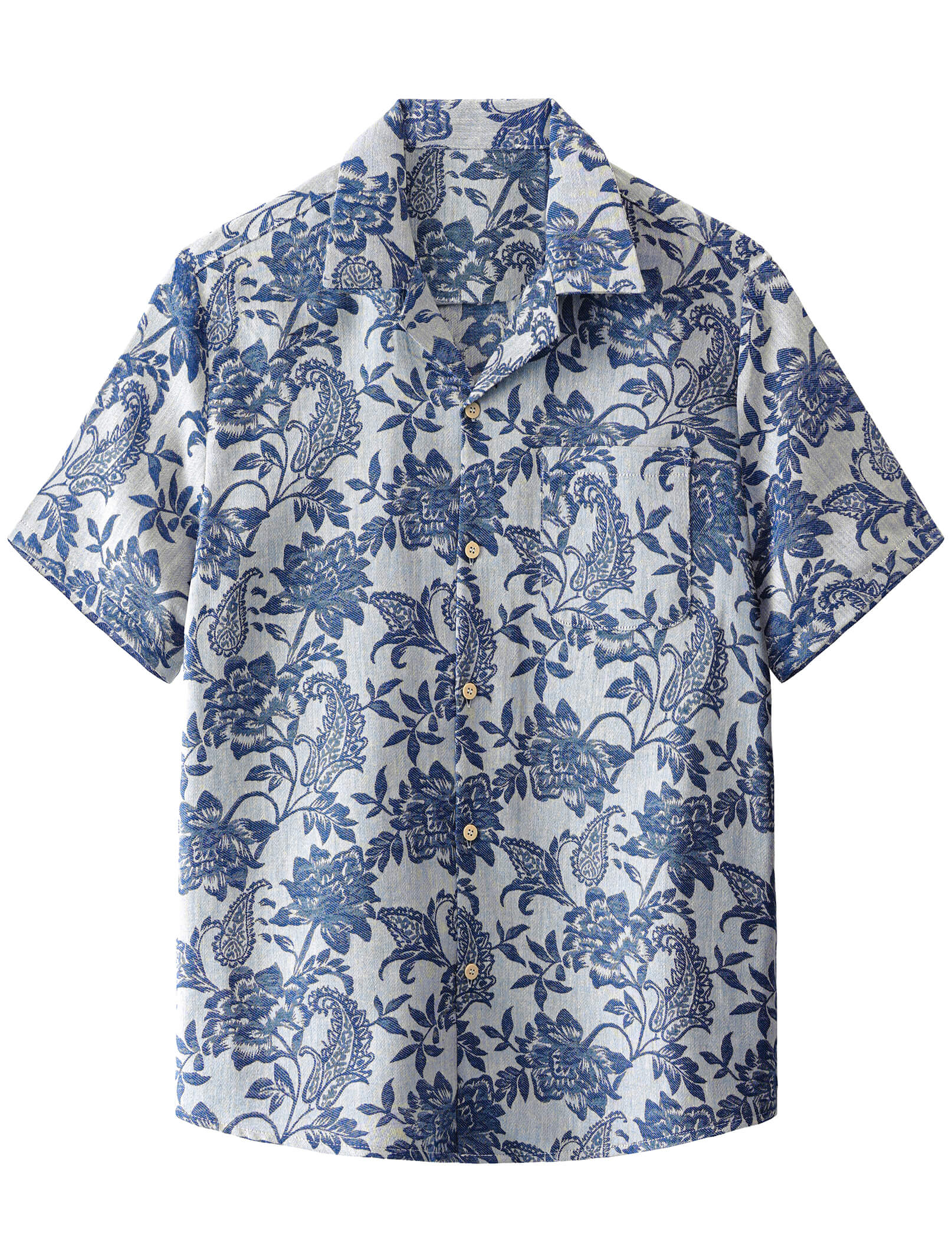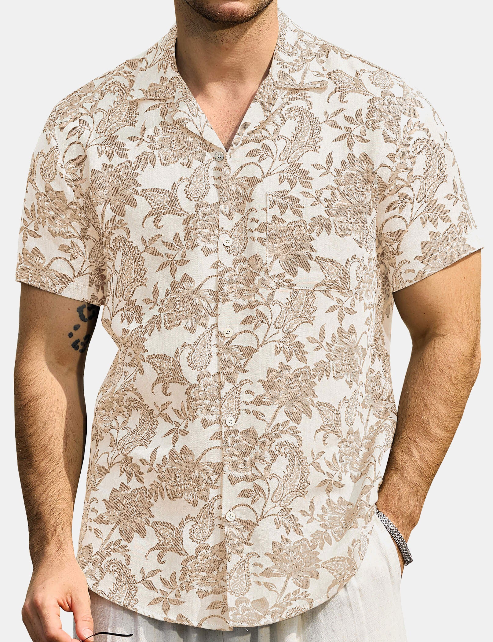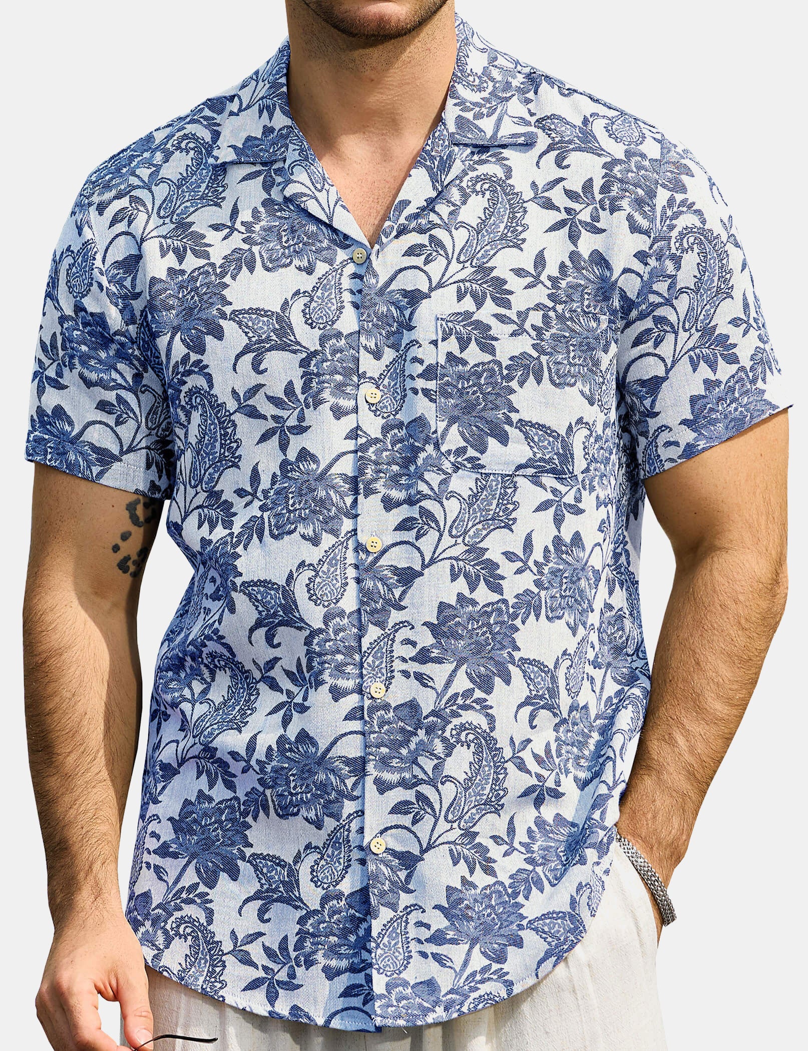 Herren Vintage-Baumwoll-Kurzarmhemd mit Blumenmuster