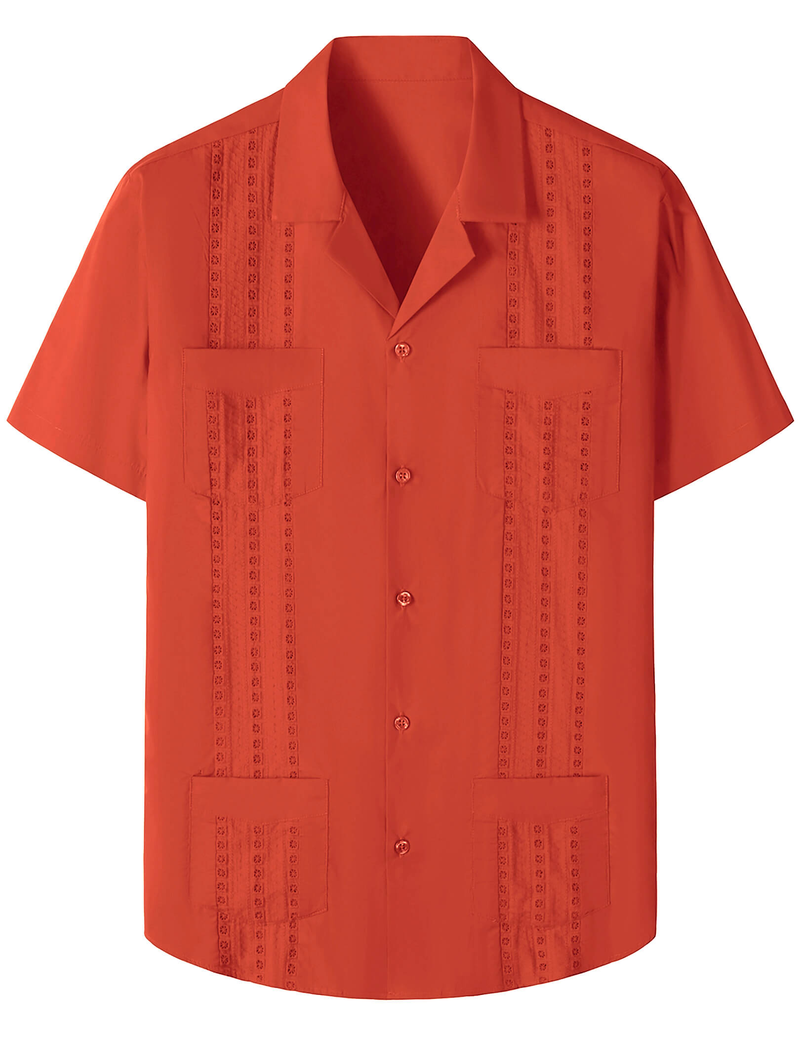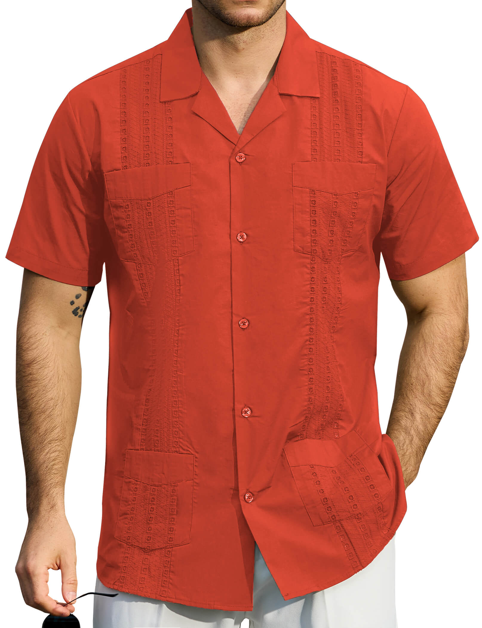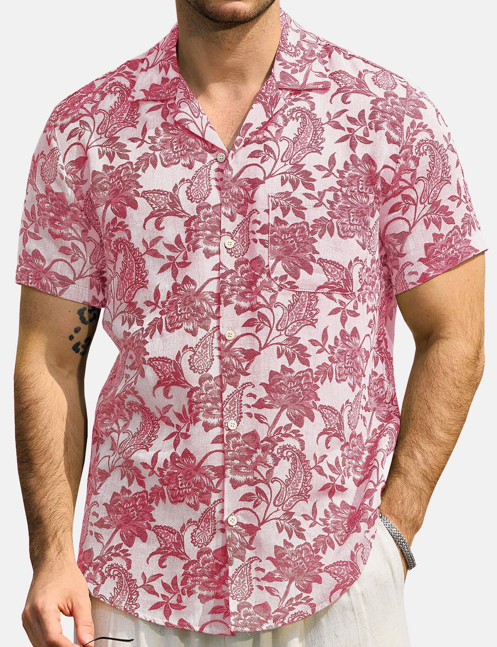 Herren Kurzarmhemd aus roter Baumwolle mit Blumenmuster