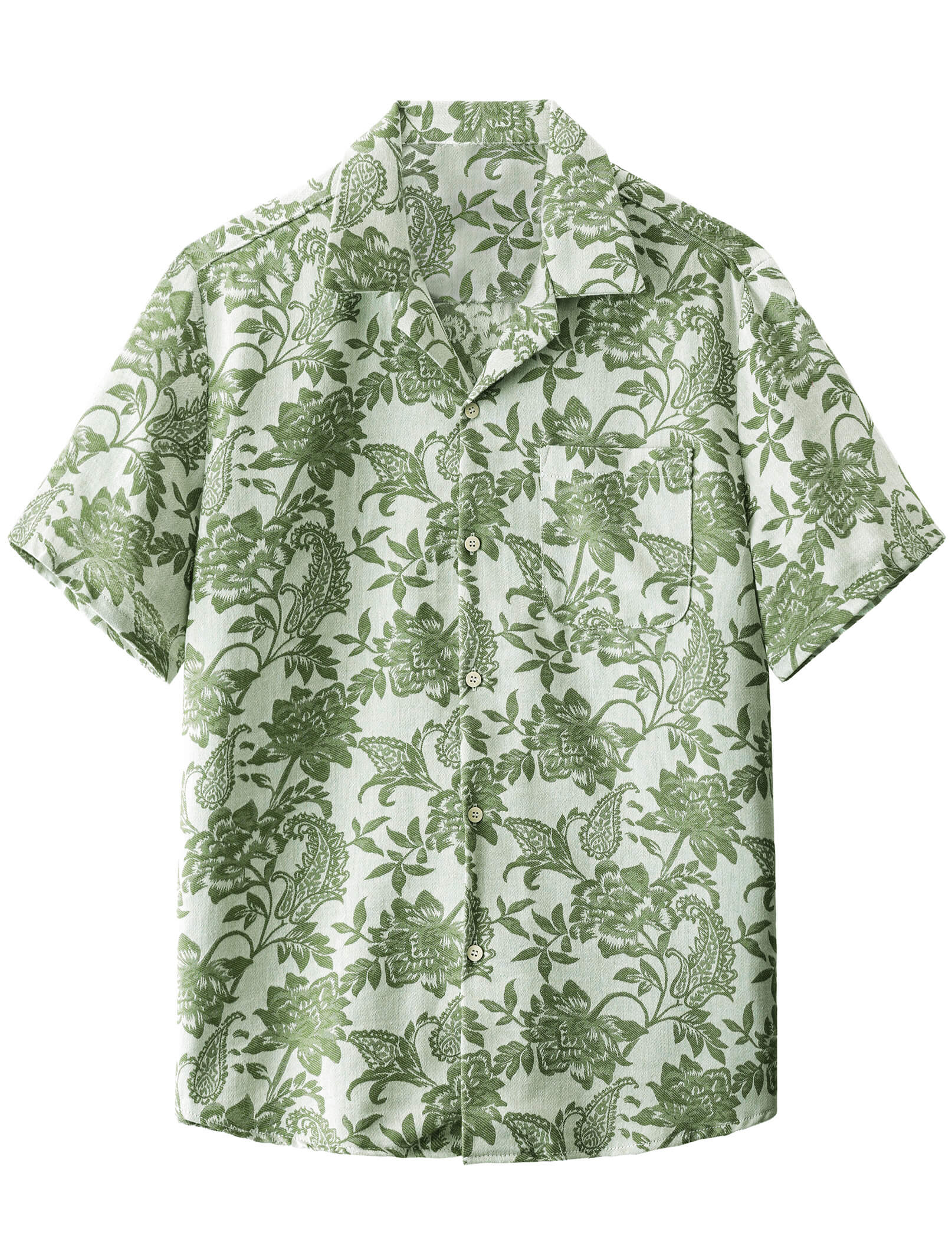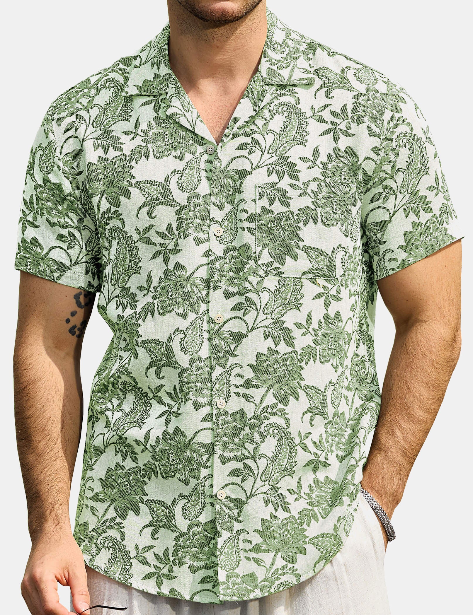 Herren Grünes Kurzarmhemd aus Baumwolle mit Blumenmuster