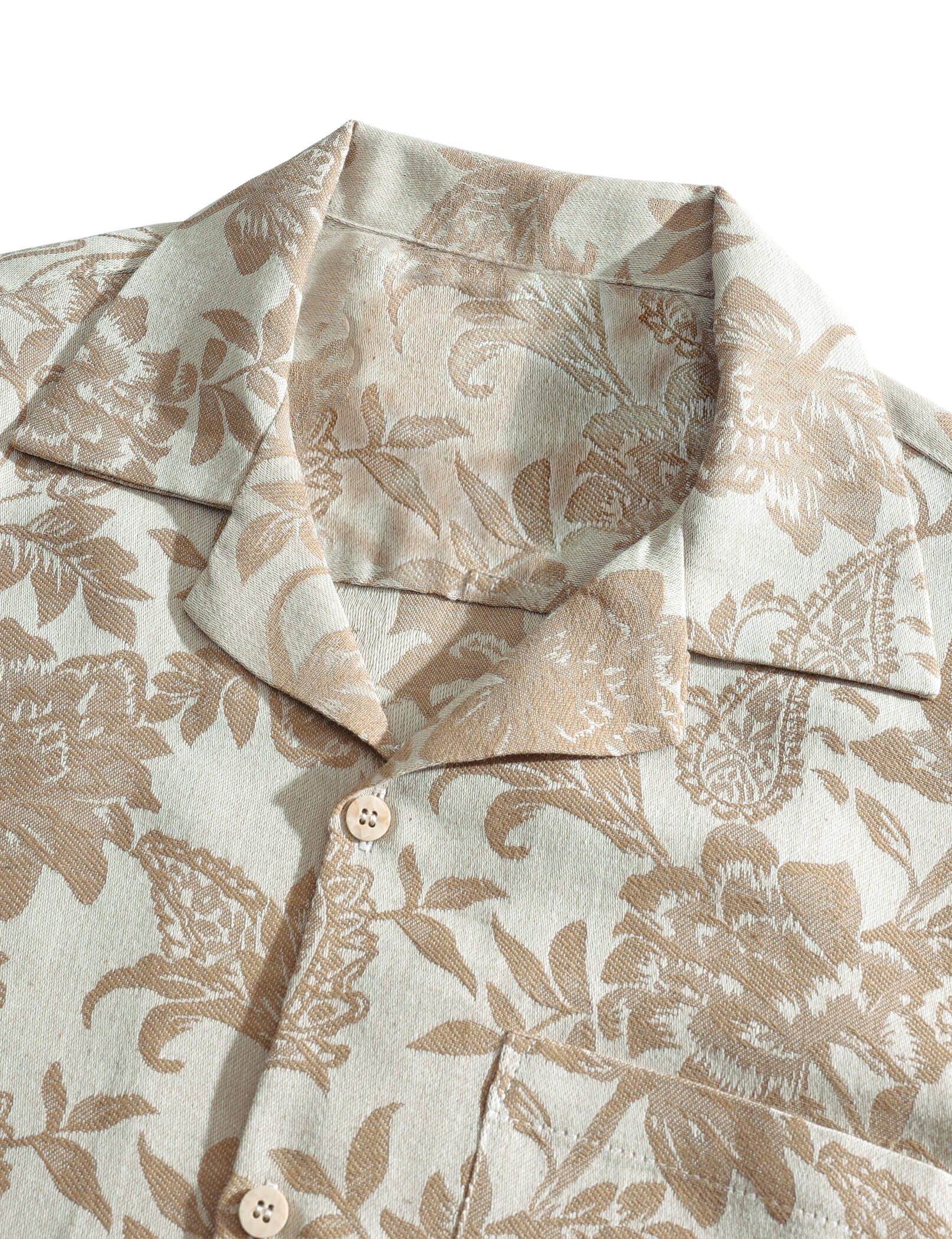 Herren Kurzarm-Jacquard Hemd mit Blumenmuster