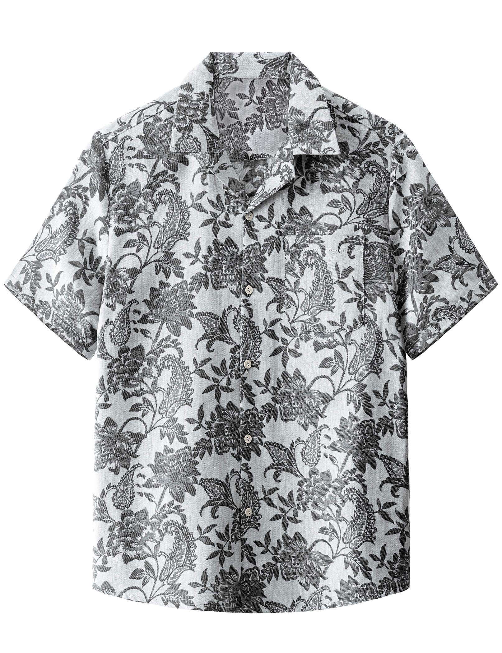 Herren Baumwolle Blumenmuster Kurzarm-Hawaiihemd