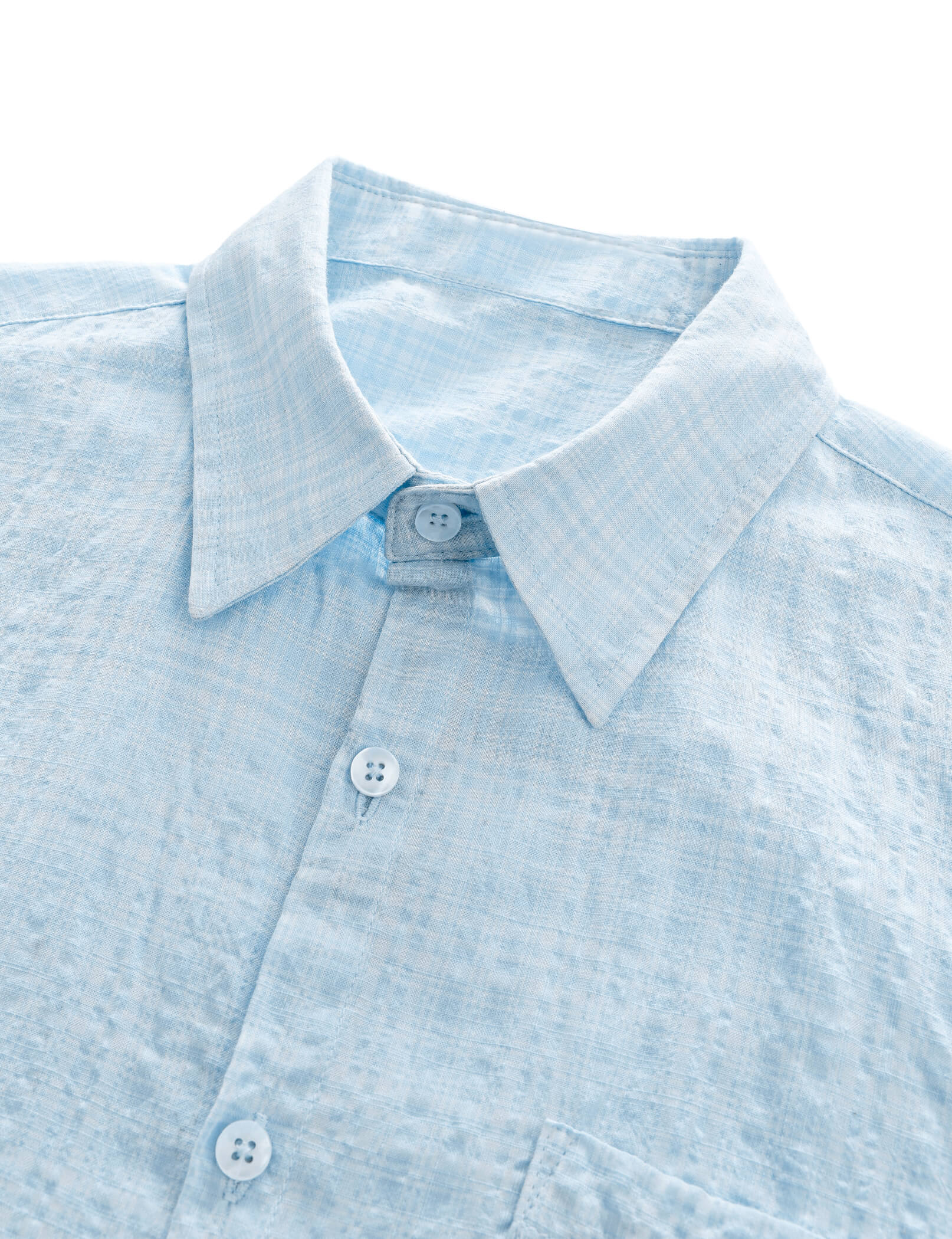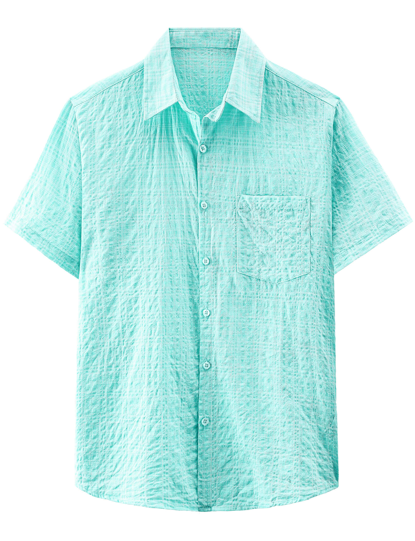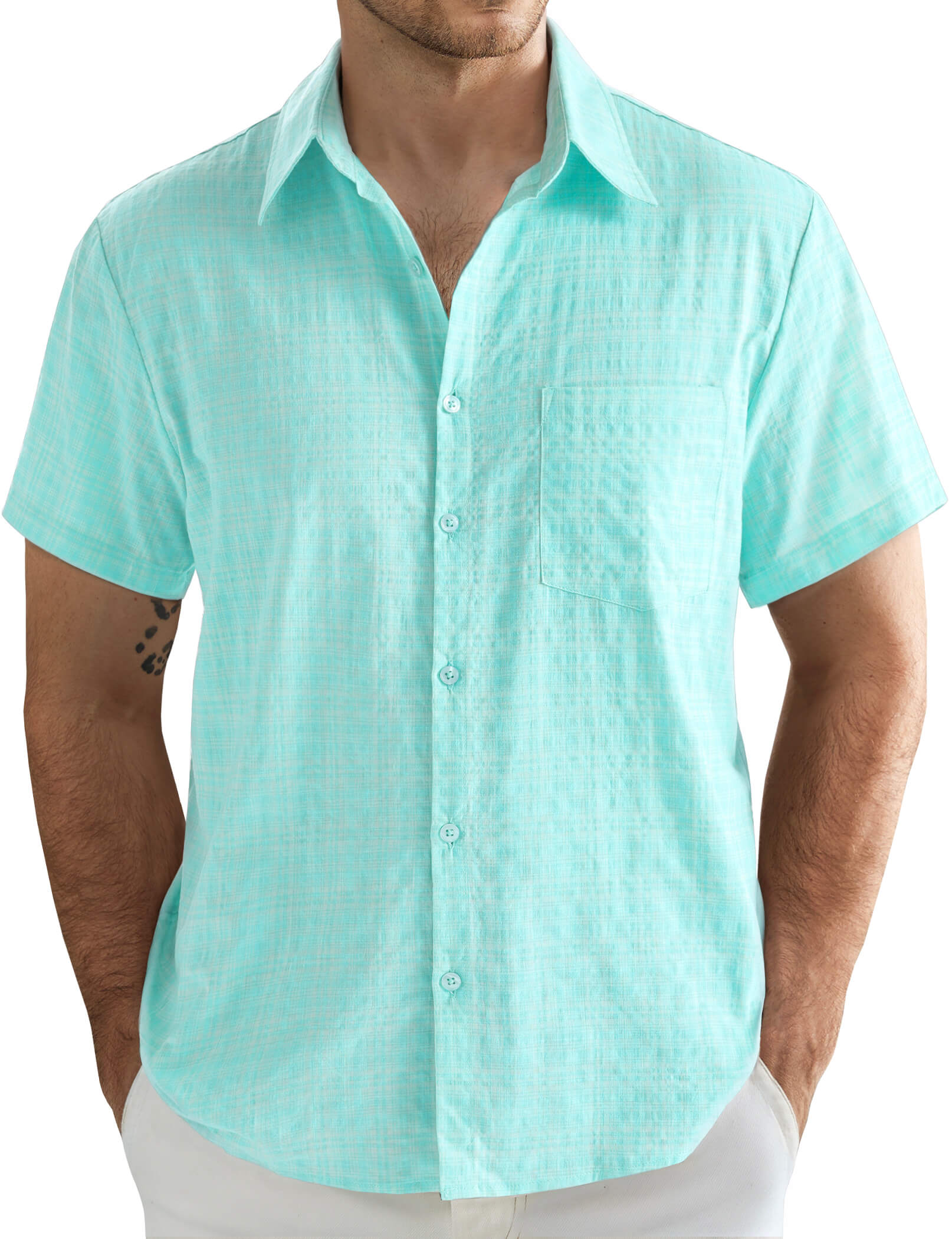 Herren Lässiges Sommer Baumwolle Kurzarmhemd Blau