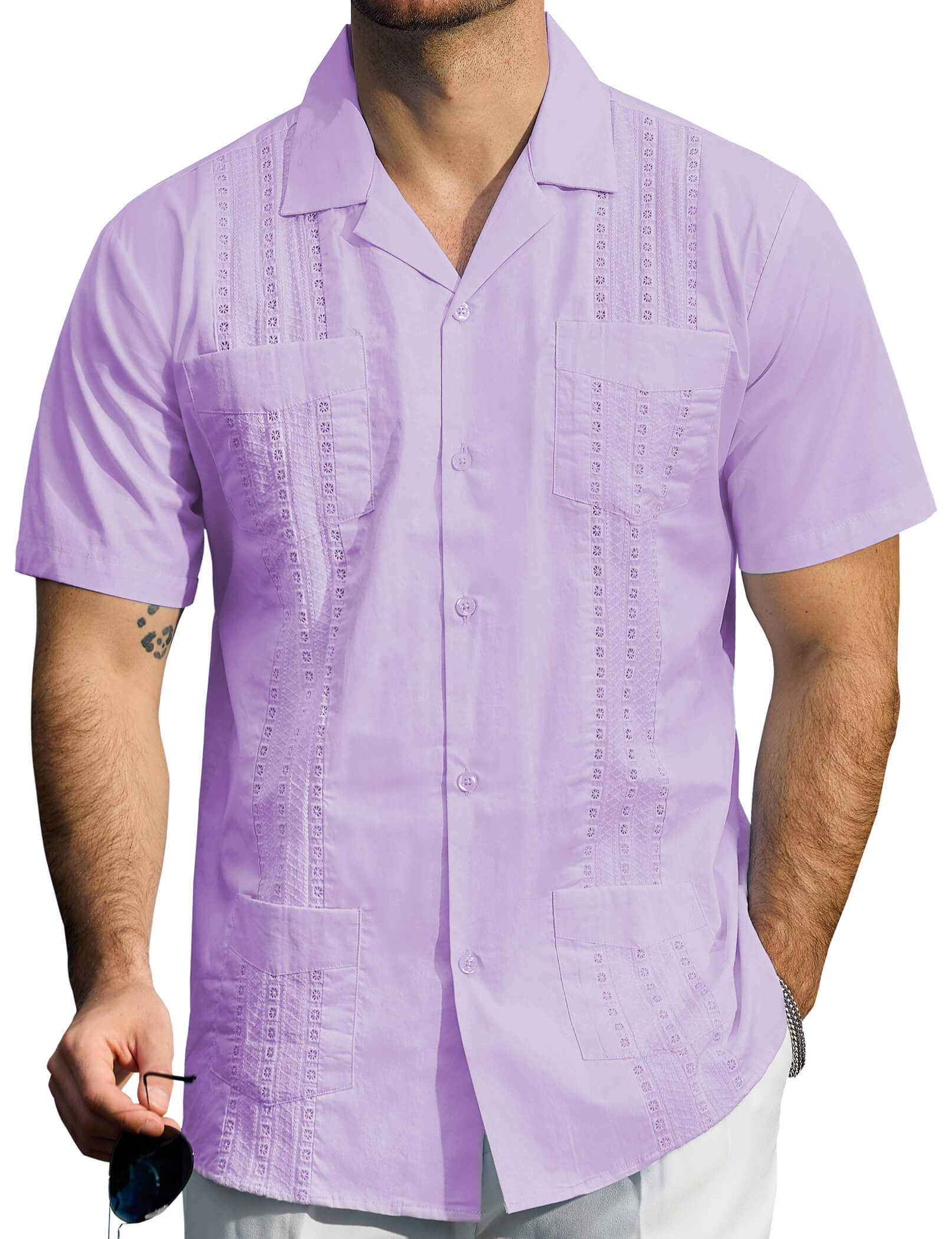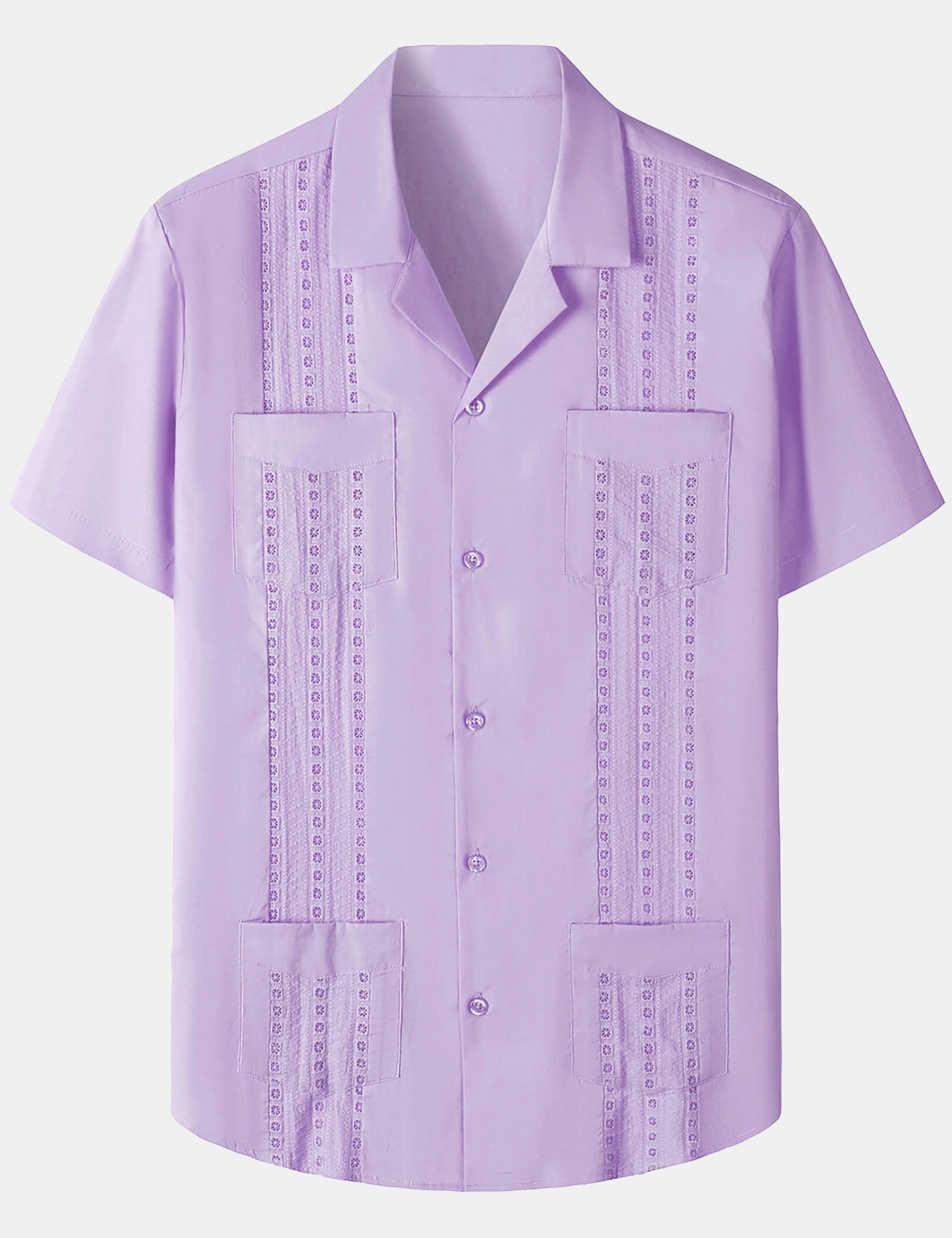 Herren Kurzarmhemd im Vintage-Stil Lila