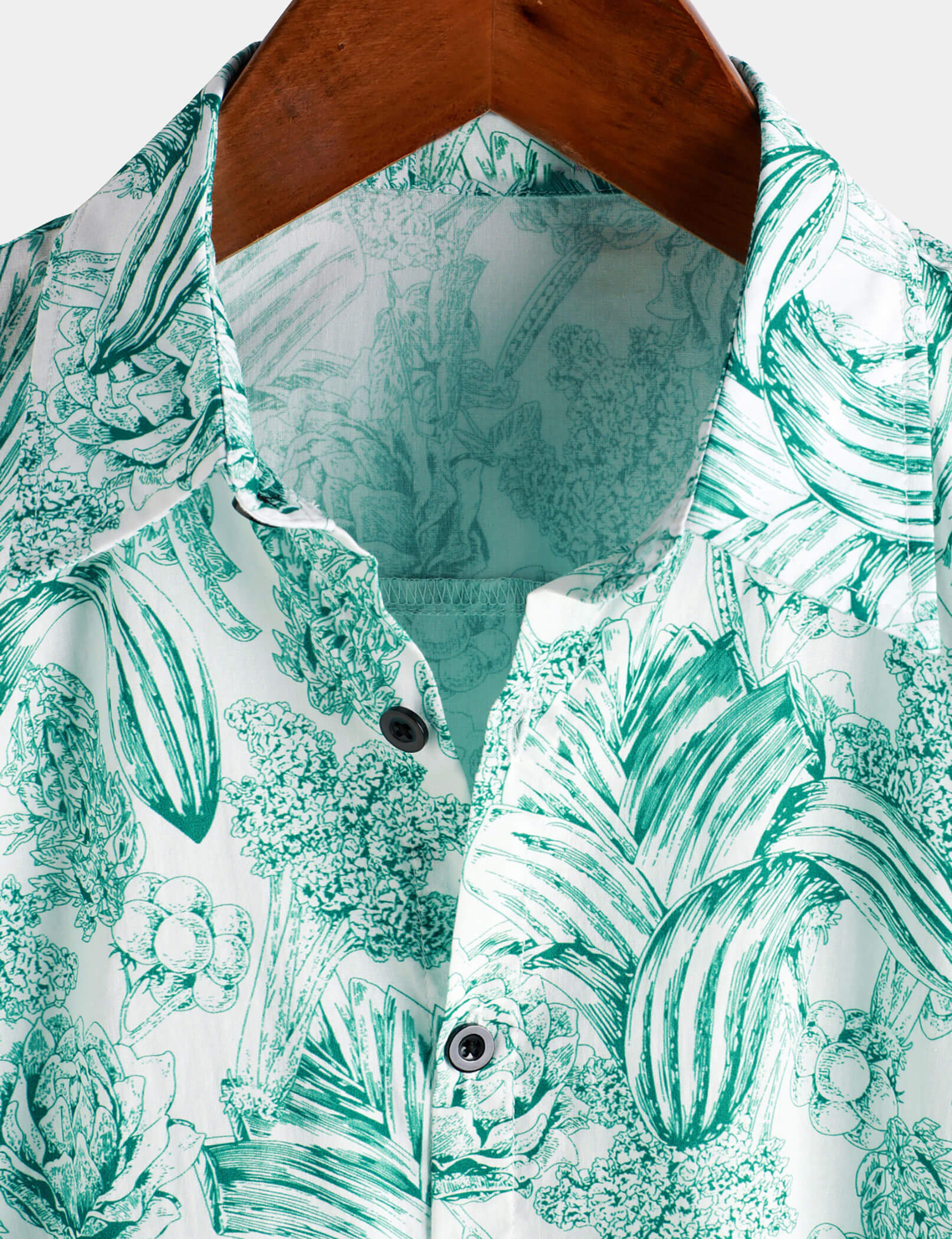 Herren Grünes Hawaii-Kurzarmhemd aus Baumwolle mit Blumenmuster