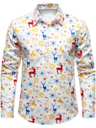Herren Baumwolle Rentier Schneeflockenmotiv Weihnachts-Langarmhemd