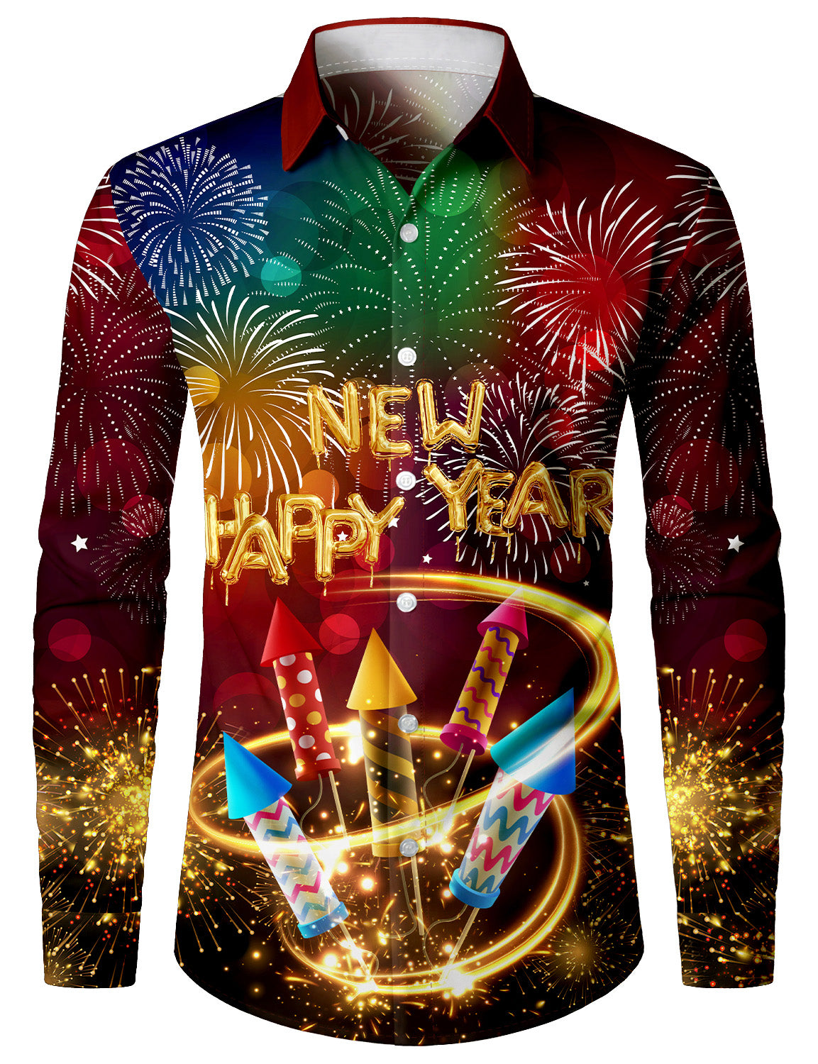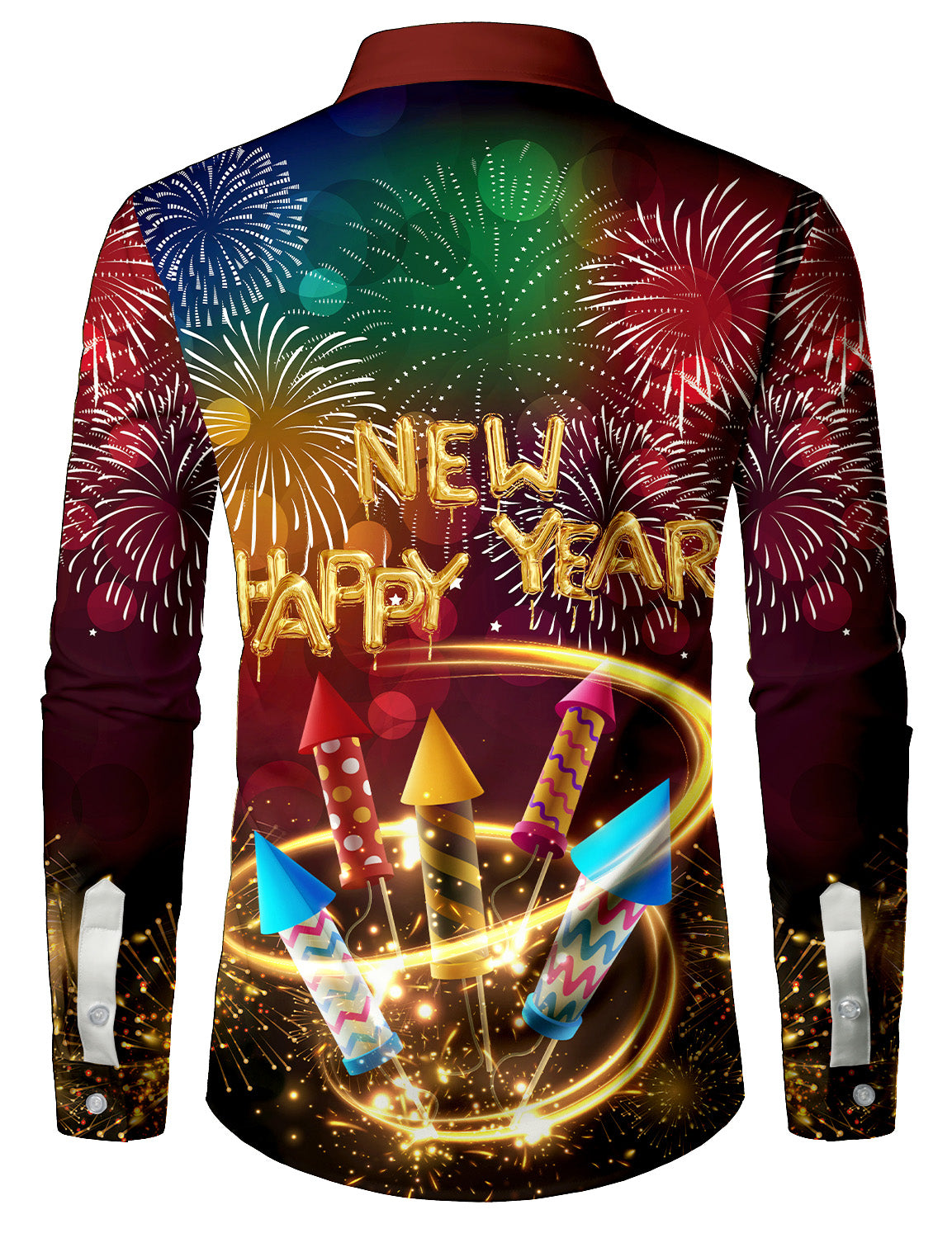 Herren Langärmliges Hemd mit Neujahrs-Print