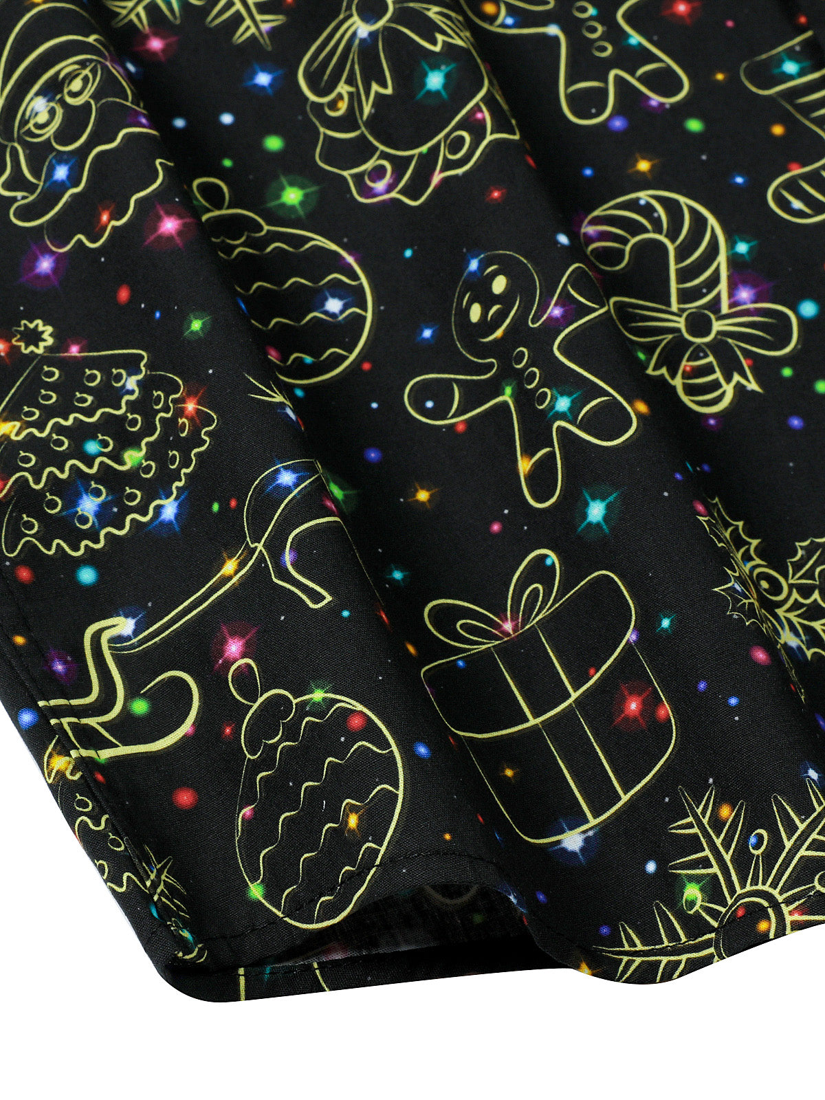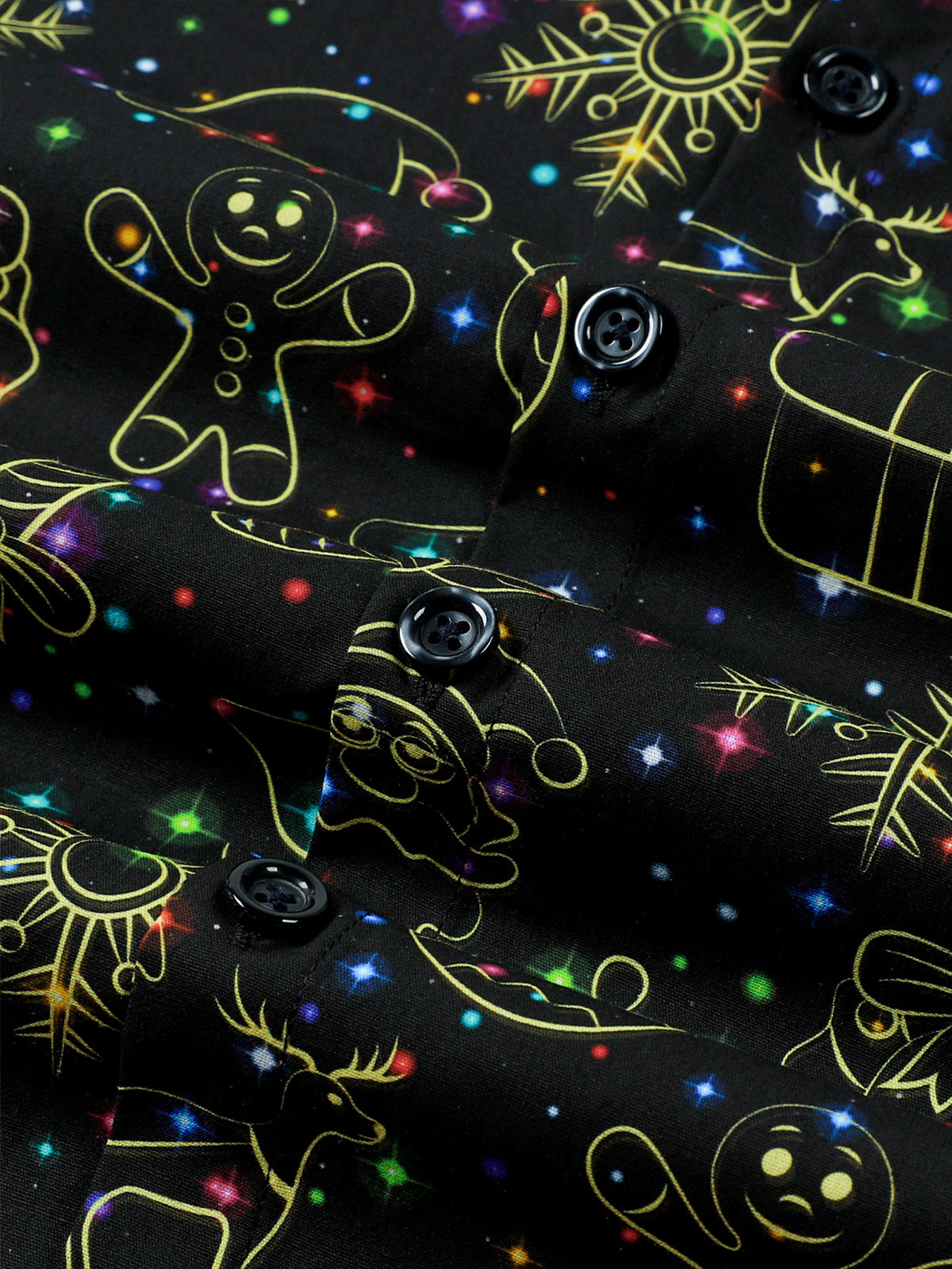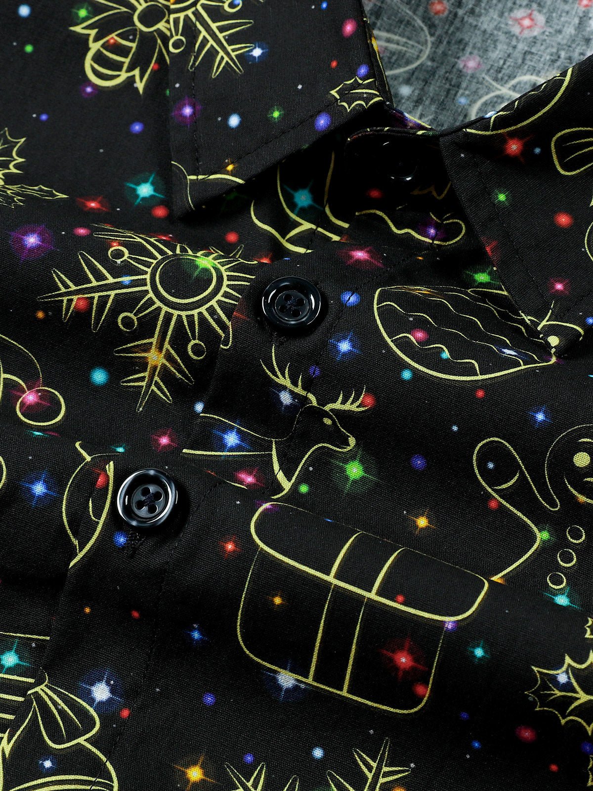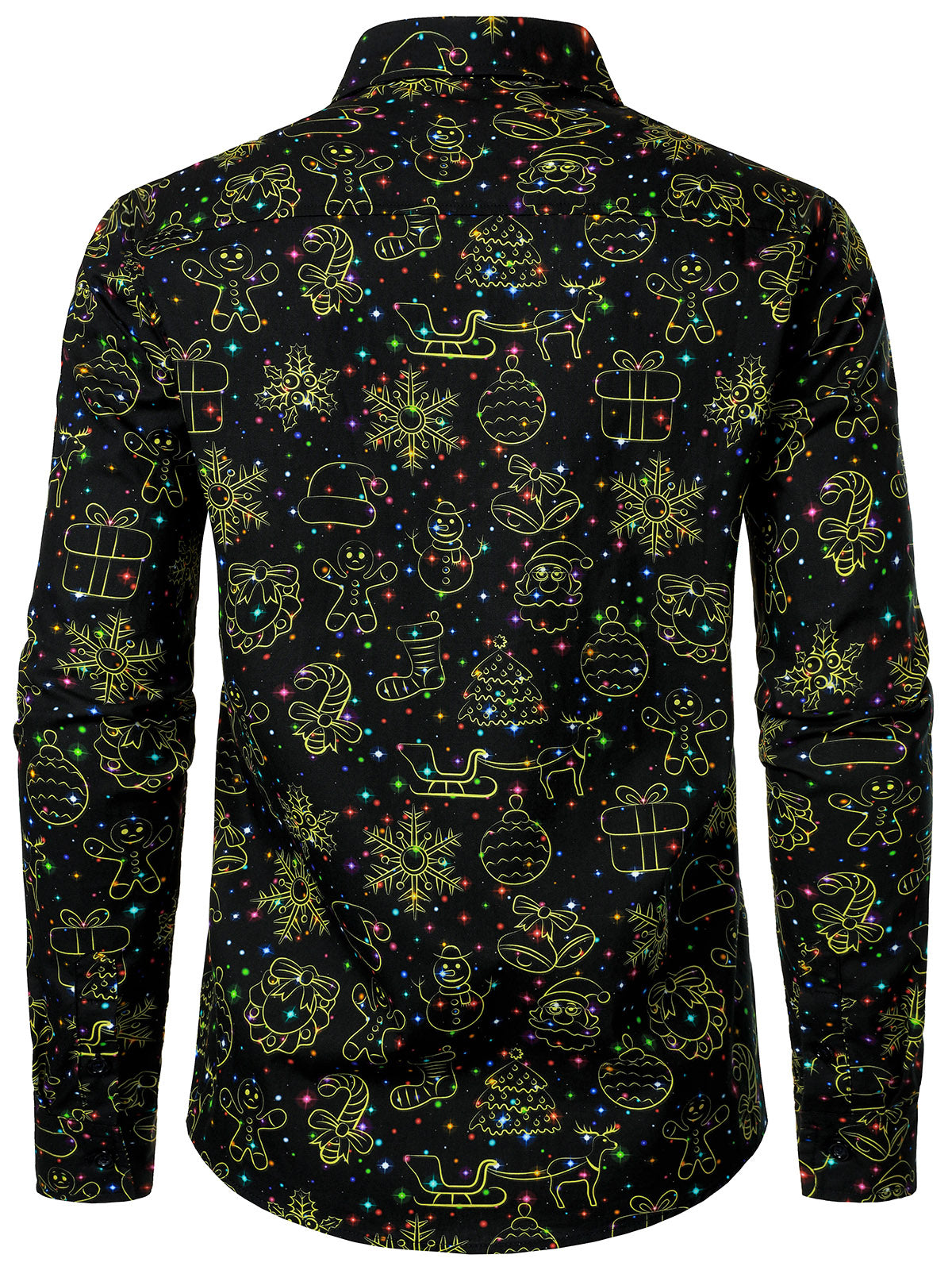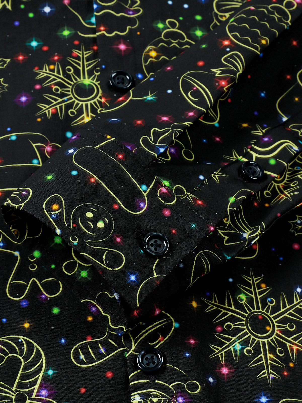 Herren Weihnachtliches Langarm-Baumwollhemd mit Neon Muster